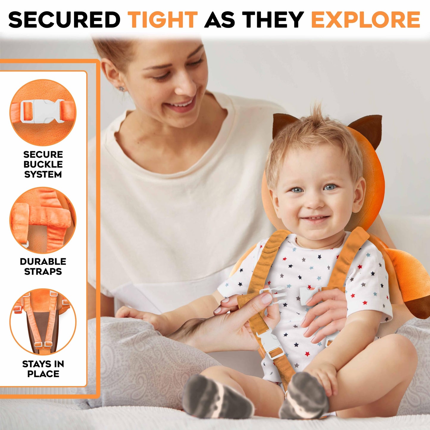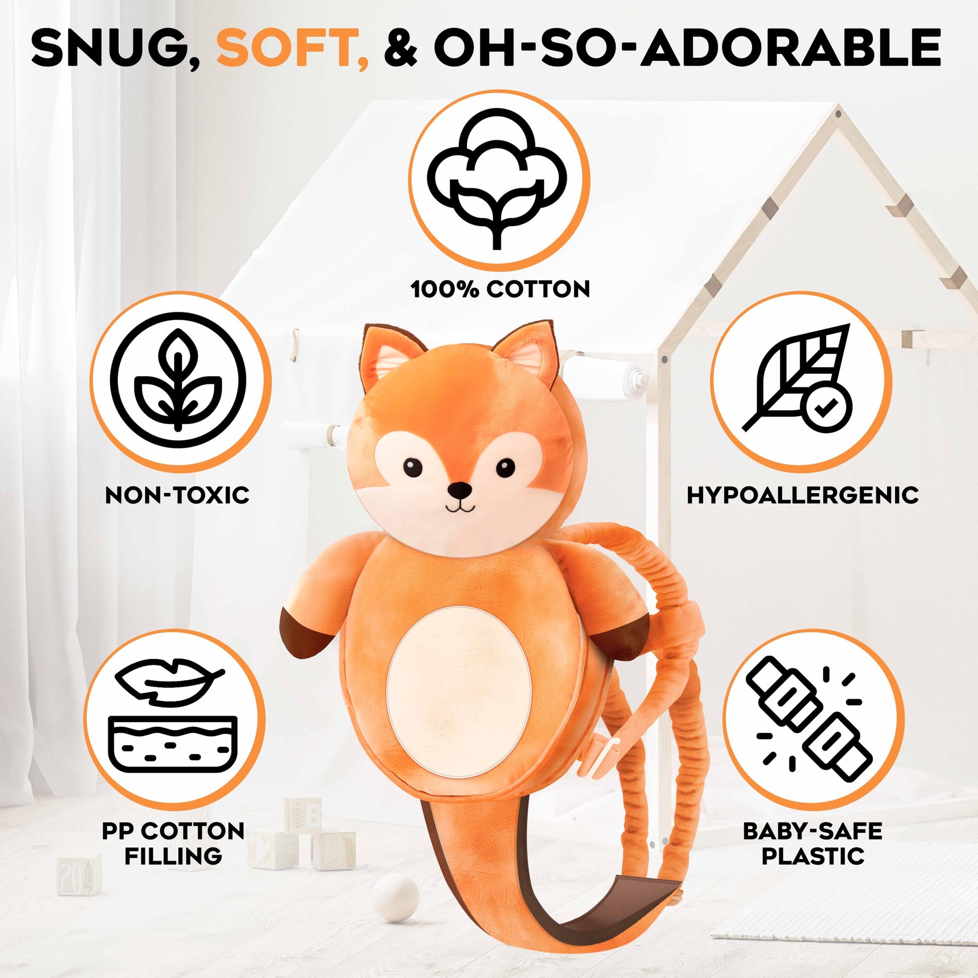 100% Cotton Non-Toxic Hypoallergenic Baby Backpack Head Protection Pillow, Full Head Coverage, Baby Head Pillow for Falling, Secure, Durable, Fox (Orange)