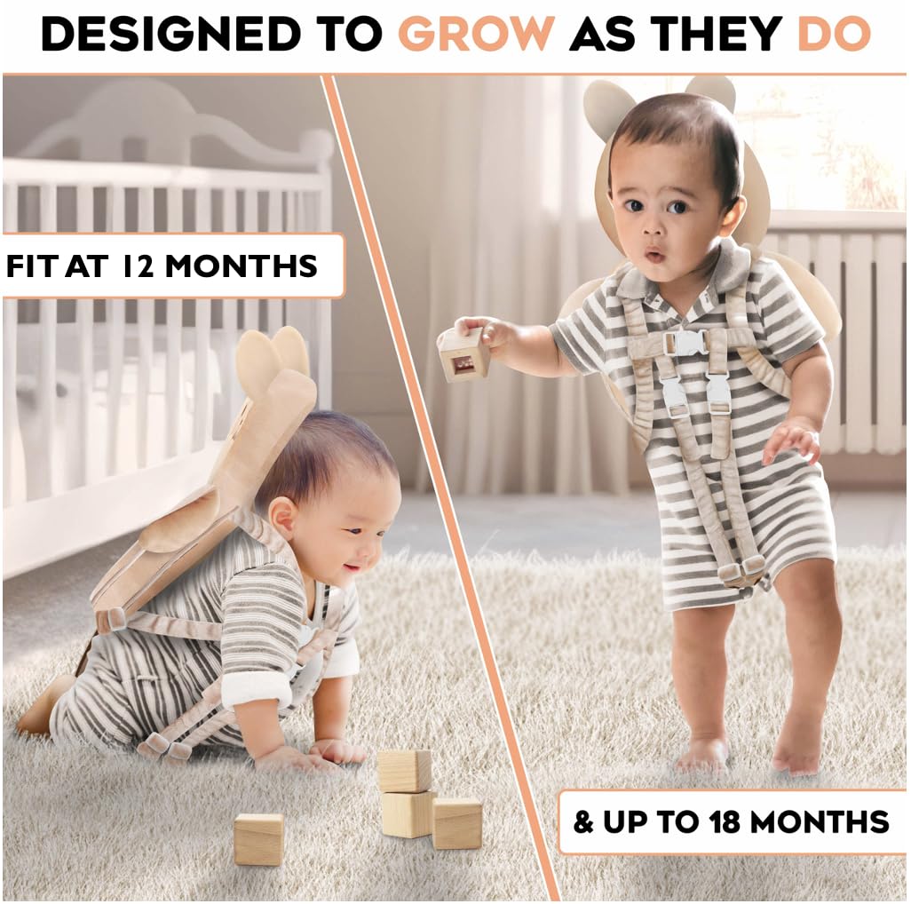 - CUSTOMIZABLE FIT WITH ELASTIC STRAPS: Featuring adjustable chest and shoulder straps with elastic, this head protector for baby crawling provides a snug and comfortable fit for your baby. As your baby grows, the straps can be easily adjusted to accommodate their changing size and shape, maintaining optimal safety and comfort.