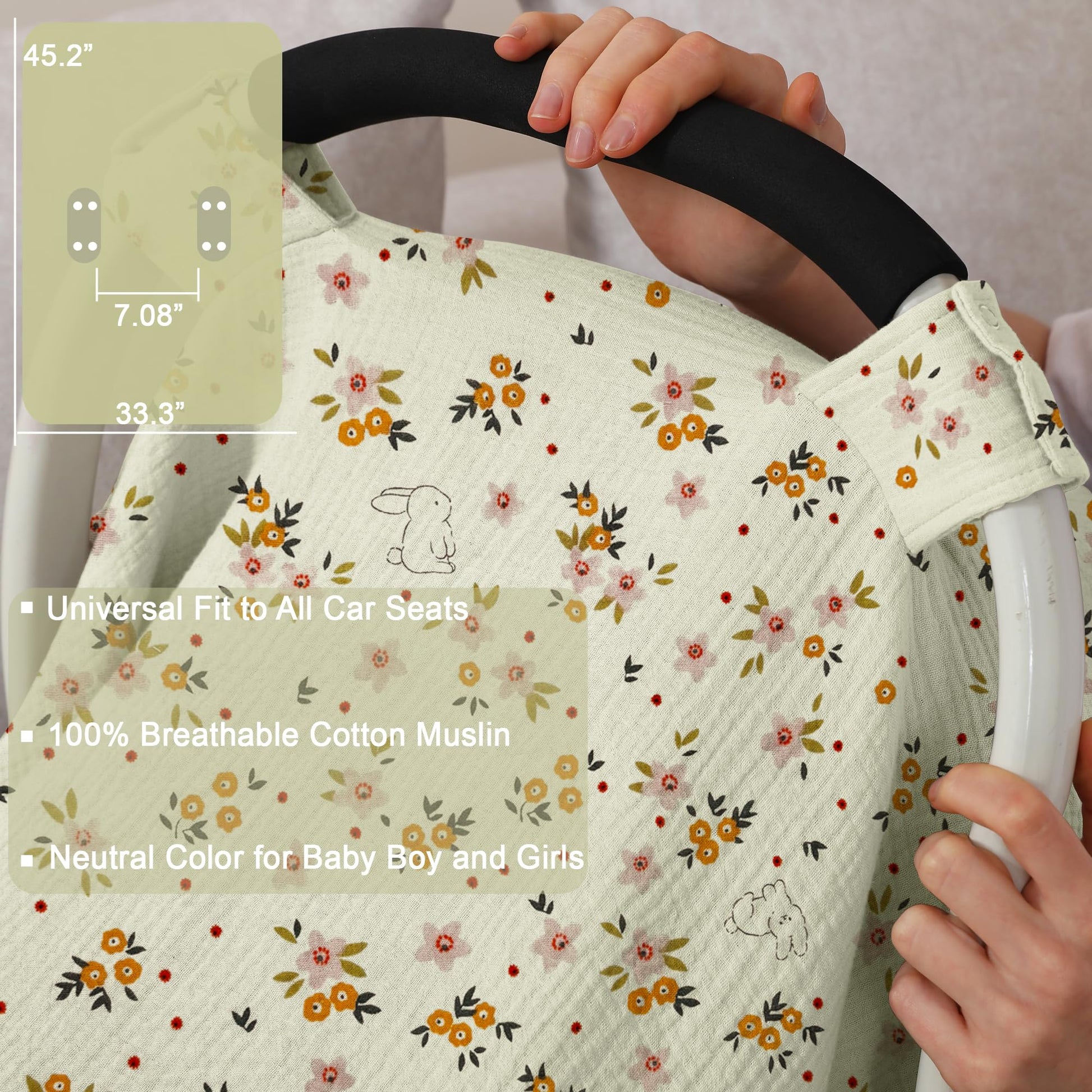 100% Muslin Cotton Car Seat Cover Baby, Carseat Canopy Cover, Universal Fit Stroller Covers for Boys and Girls: