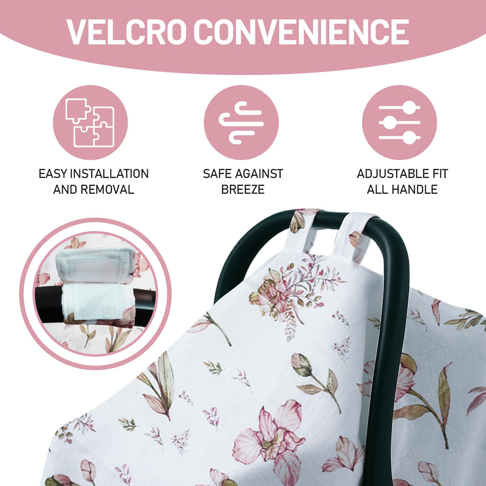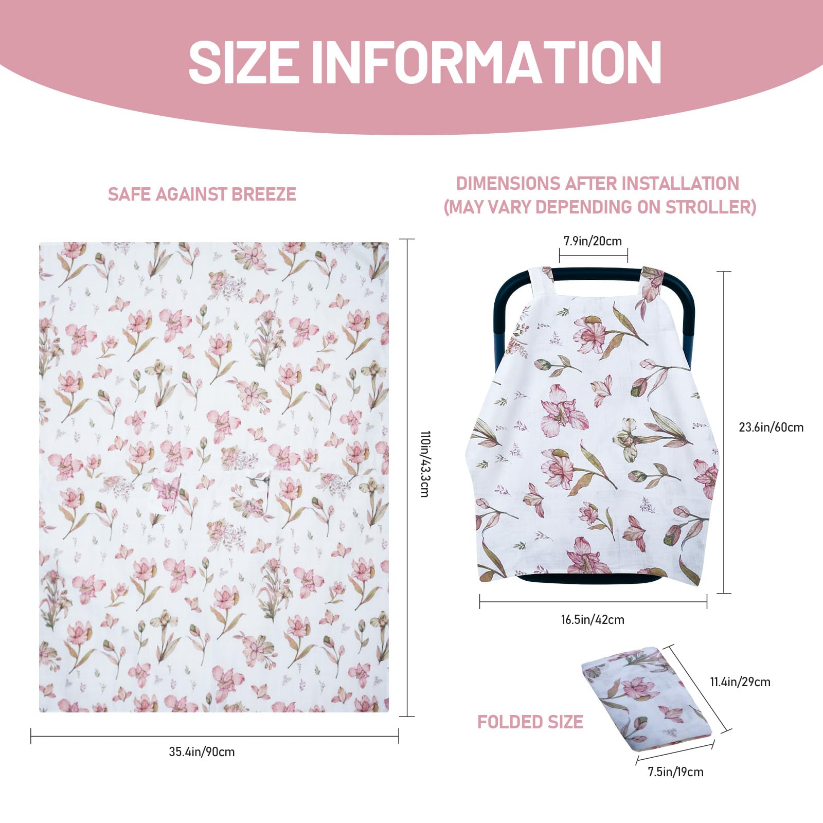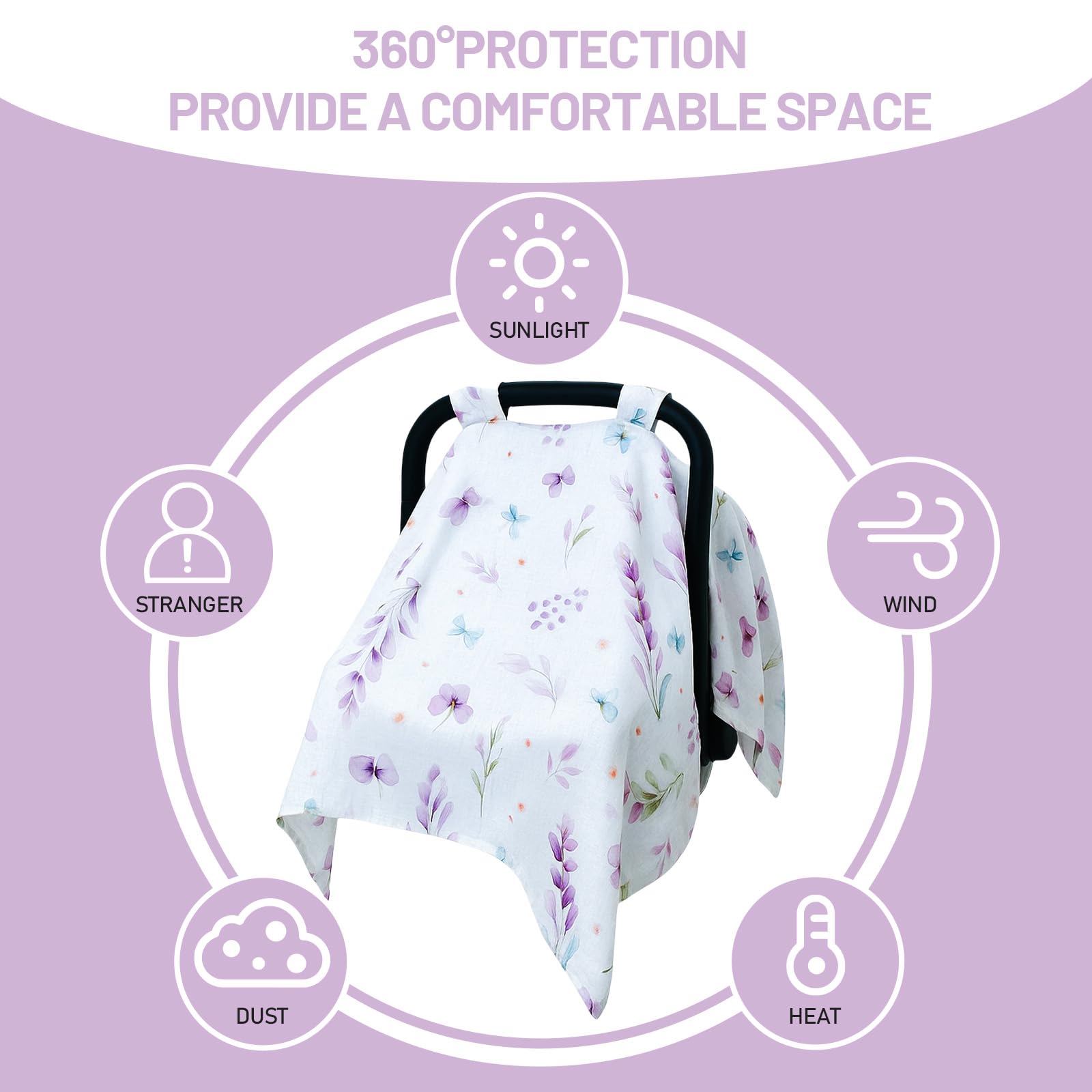 - Premium Thin-Layer Muslin Fabric: Made from high-quality muslin, this baby carseat cover offers a cool, breathable environment perfect for warm weather—providing a delicate, soft feel that’s both comfortable and durable.
