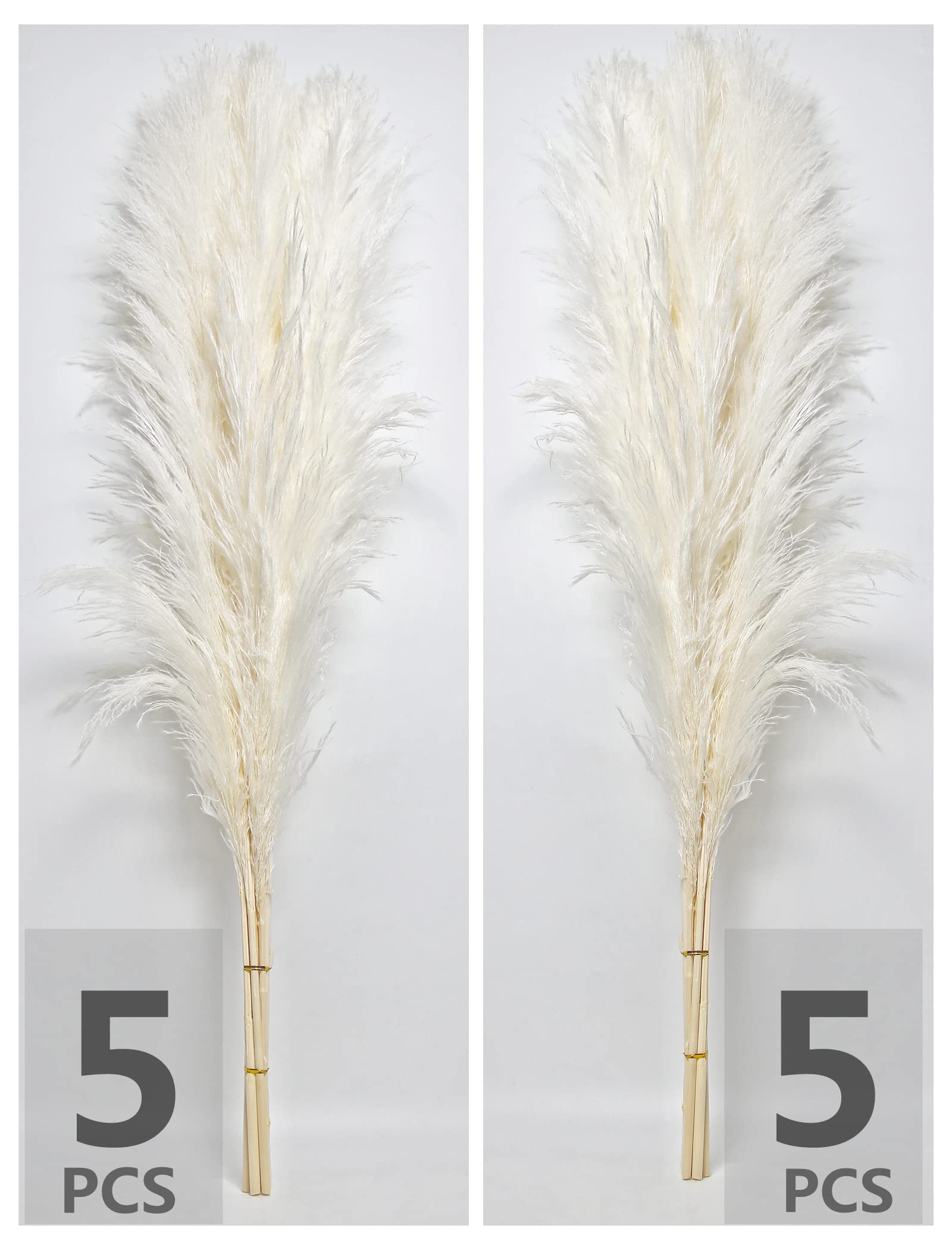 - Quantity: There are a total of 110 pieces in the pampas grass bouquet, including 50 primary color dried bunny tails, 20 primary color reed grass, 5 dried eucalyptus, 5 fluffy pompas grass, 15 white pompas, and 15 primary color pompas. These different types of grass decor can be combined to create beautiful dried floral arrangements (Vase not included).