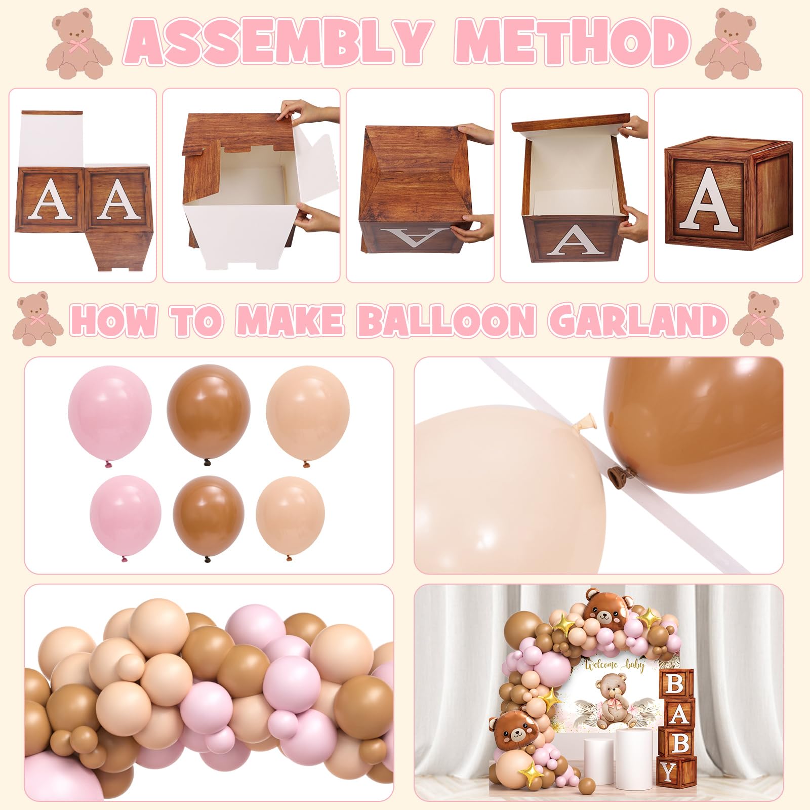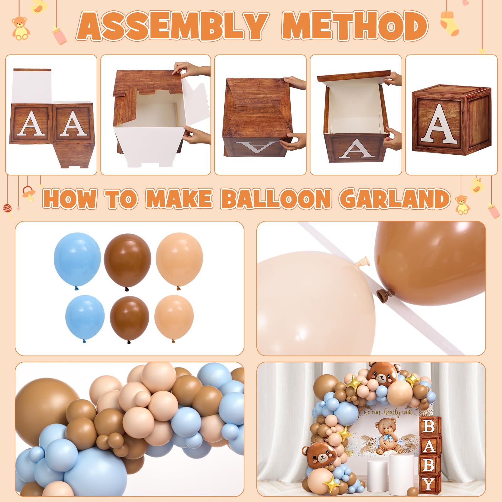 - PRACTICAL AND RUSTIC DESIGN: Our teddy bear birthday decorations kit features a balloon arch kit in blue and brown colors, complete with the popular bear head and bearly wait backdrop. And we have also prepared 4 wood grain baby boxes with letters, which are not only practical for storage and display but also add a rustic and gentle touch to the overall party