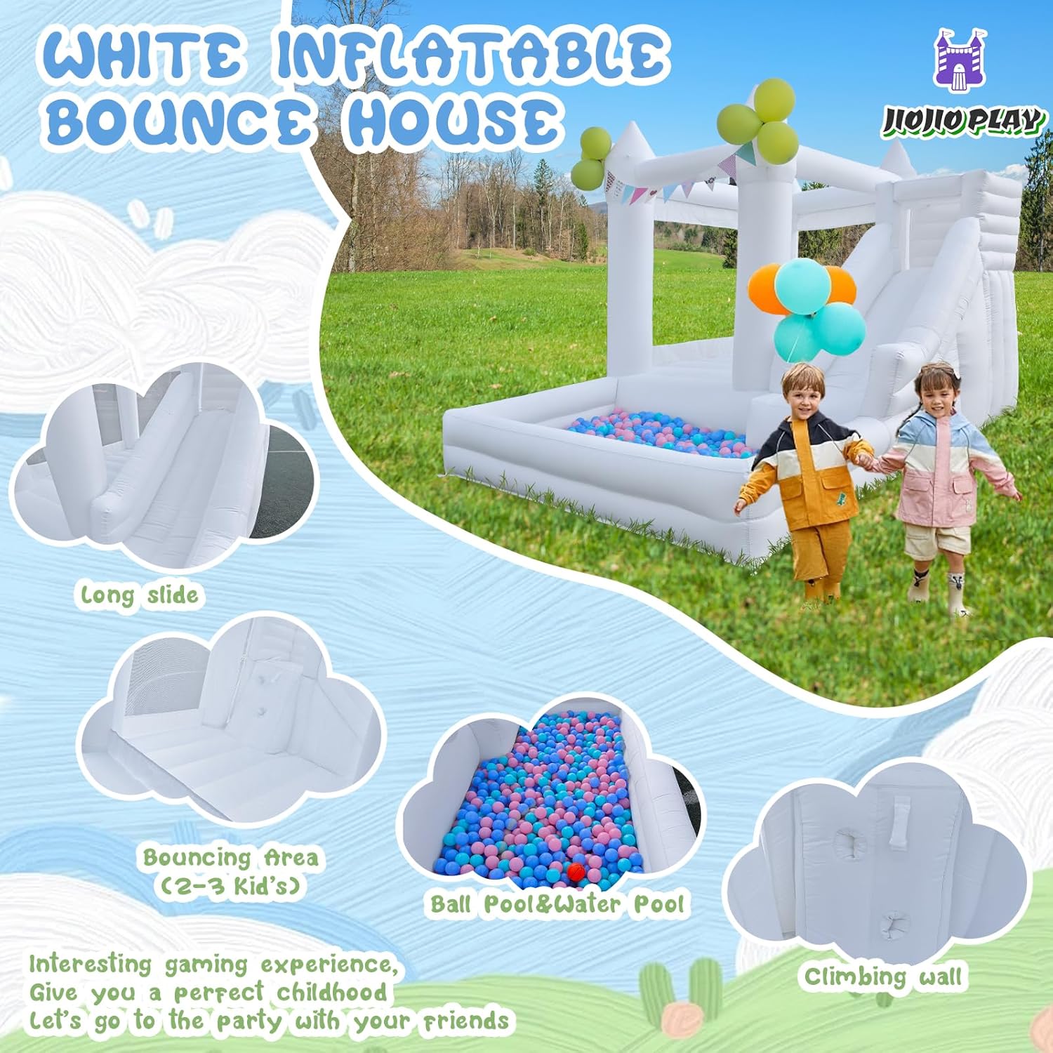 12 FT Oxford White Inflatable Bounce House, Bounce House With Ball Pit, Bounce House With Slide, Indoor And Outdoor Large Inflatable Castles Bounce House for Kids 3-12 Holiday Decoration Wedding Party