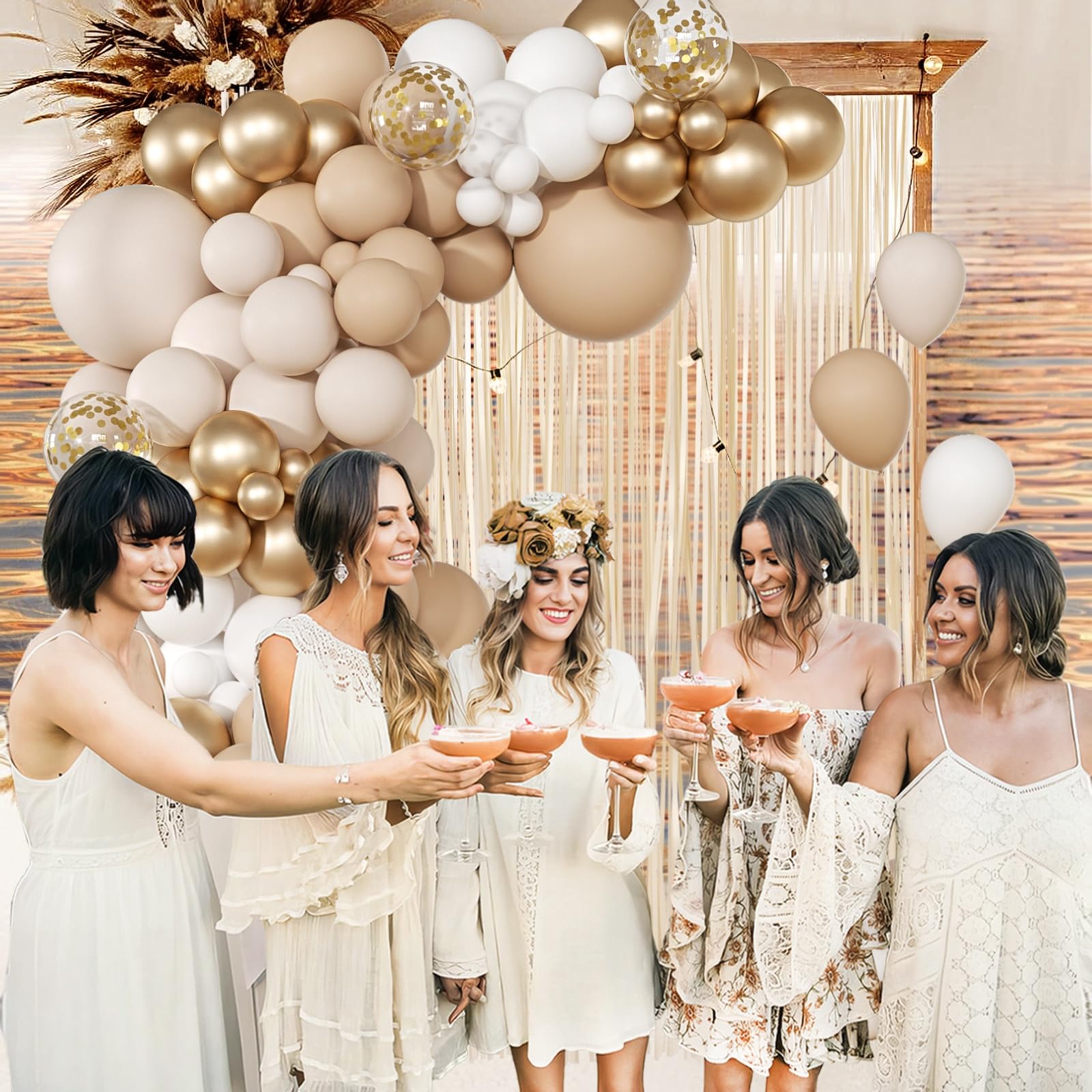 147pcs Neutral Balloon Garland Arch Kit, Different Sizes with Beige Cream Sand White Metallic Champagne Gold Balloons for Wedding Bridal Shower Birthday Boho Neutral Baby Shower Party Decorations