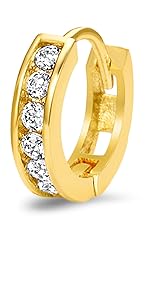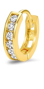 - Our huggies are crafted from 925 Sterling Silver Gold-Plated, adding a touch of luxury to any outfit. The back of the huggies features a hinge with notched post closure, providing superior security to prevent the earrings from getting lost or easily falling out, while also protecting the earlobe from potential injuries. These huggies comply with ASTM (American Society for Testing and Materials) child product safety standards and are CPC (Children's Product Certificate) approved.