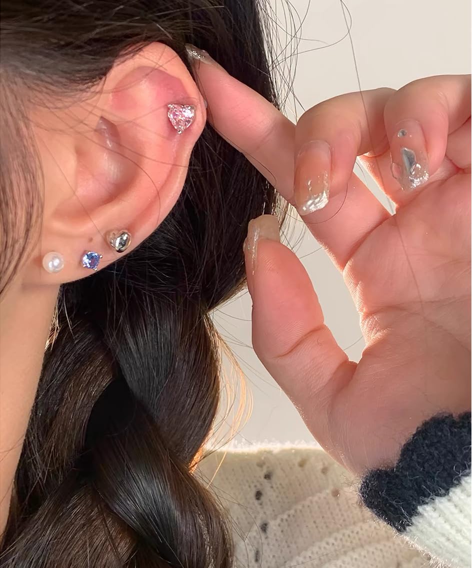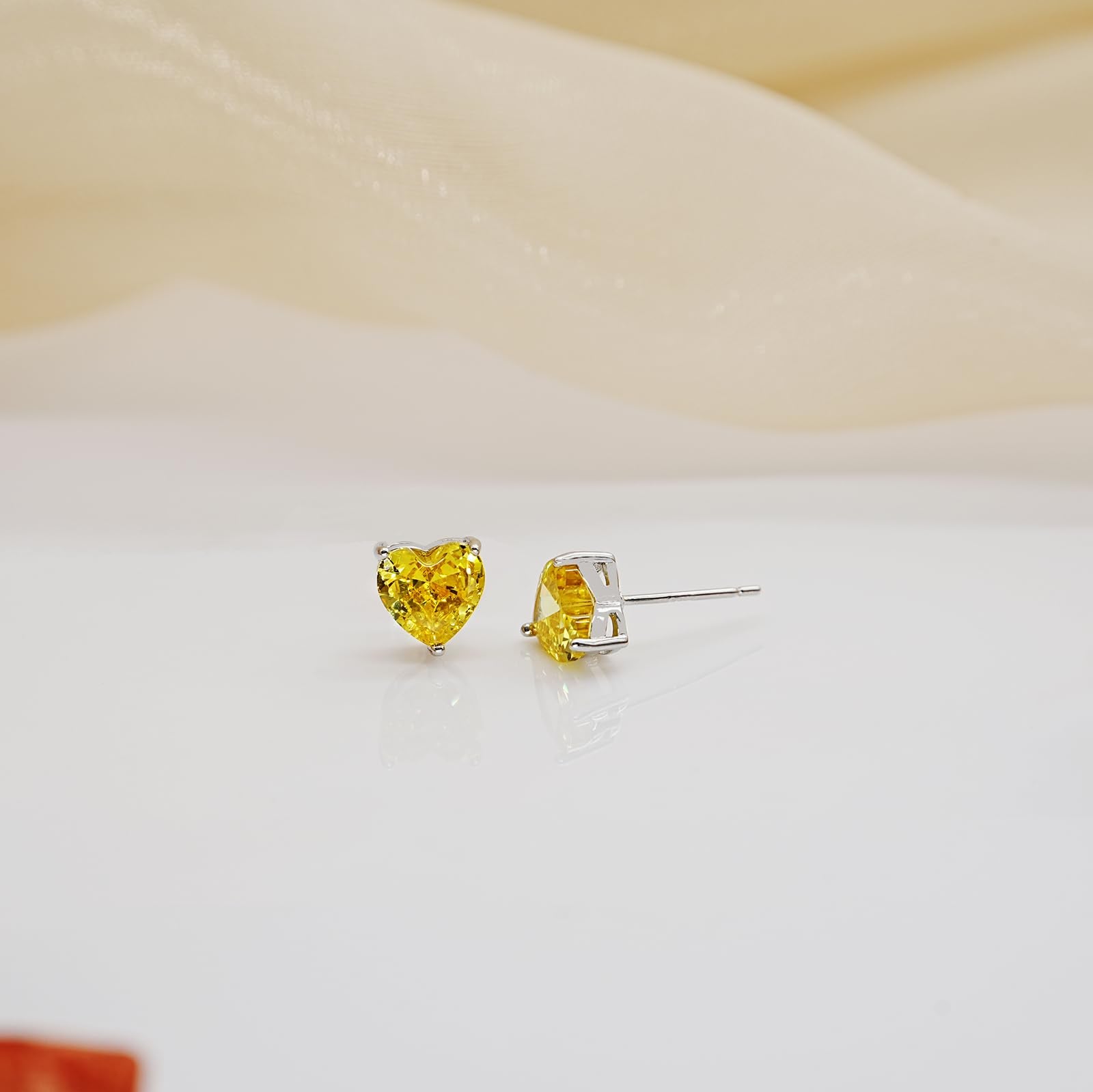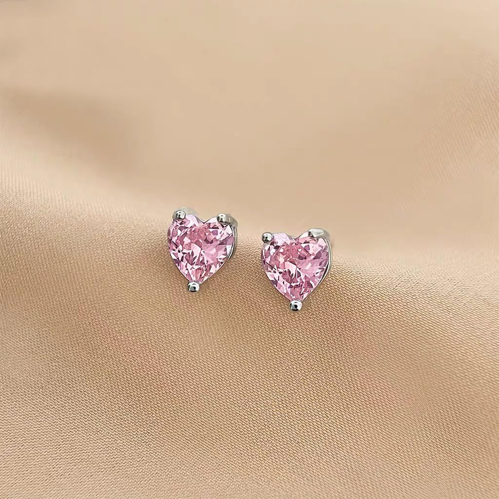 - SIZE: 7*7mm Heart-shaped cubic zirconia stones are available in pink and yellow colors. This classic design is comfortable for daily wear and perfectly complements various styles