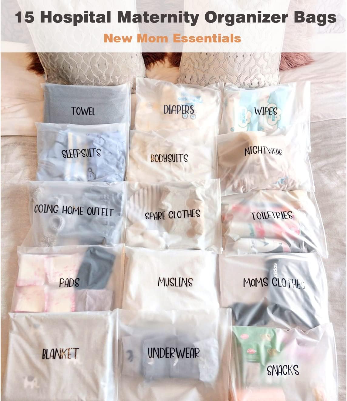 15 Pack Hospital Bags for Labor and Delivery,11 x 14 Inch Maternity Hospital Bag Essentials Organizing Pouches for First Time New Mom Newborn Baby