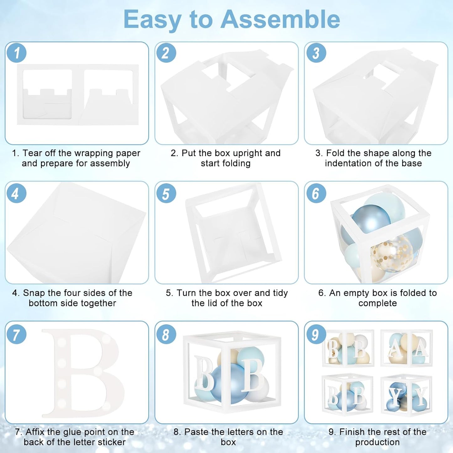 - Rich Set: Our dusty blue baby shower decorations has everything you need to create a memorable and fun party; From the one-of-a-kind baby boxes to the premium-quality dusty blue balloons, our set has it all; We've also included a balloon arch strips, tying tool, ribbon and 100 glue points to ensure that you have everything you need to create a stunning baby boy shower decorations display; let's enjoy the stylish baby shower party