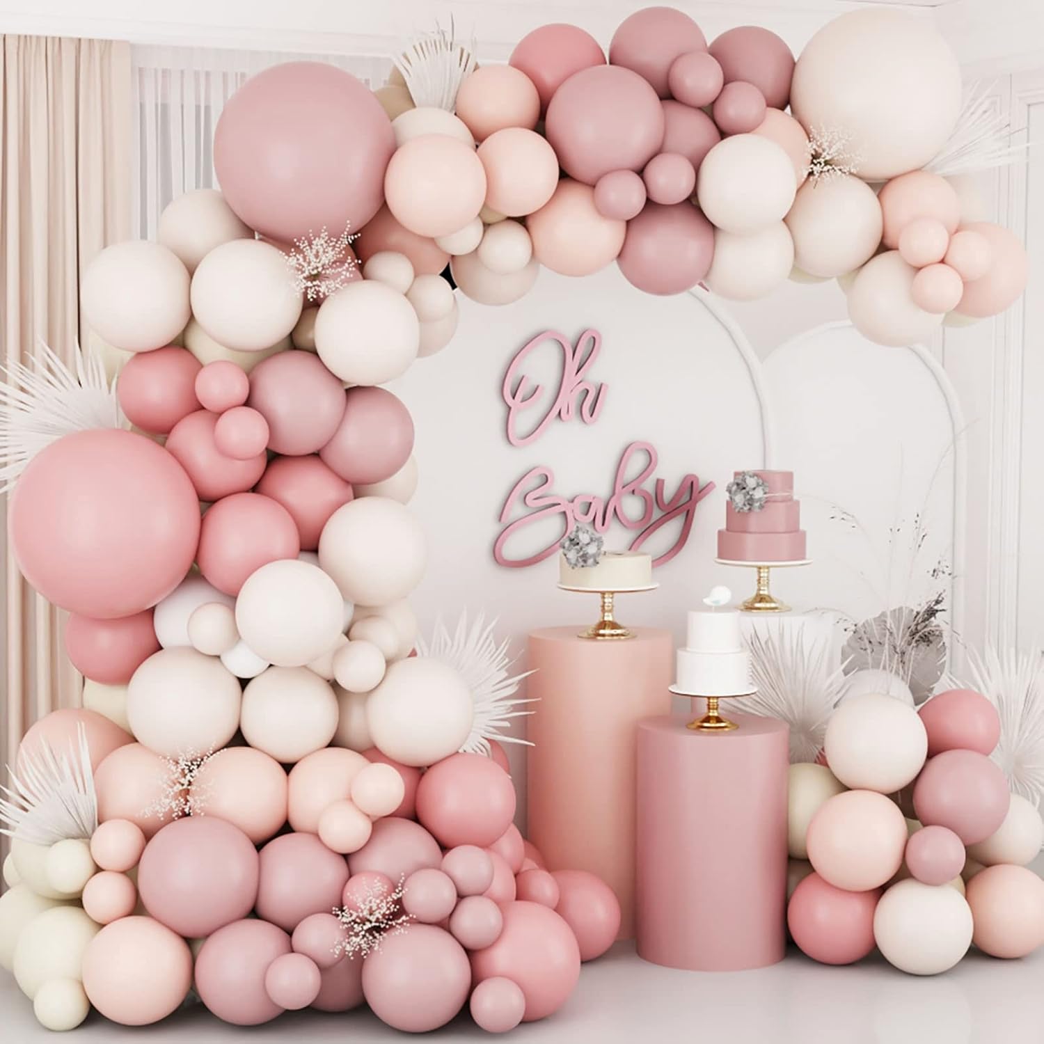 - Large Size Boho Dusty Rose Pink Nude Mauve Neutral Brown Ivory White Balloons Balloon Arch Garland Kit.