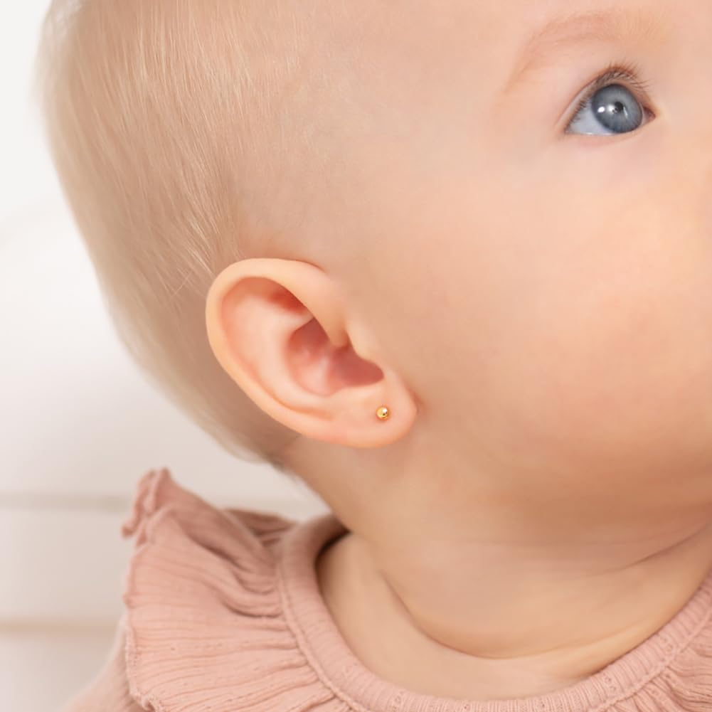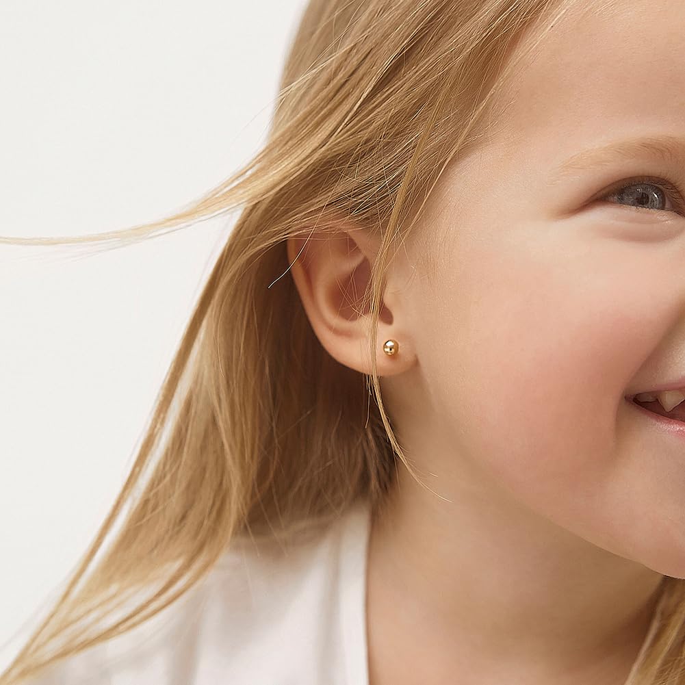 - Earring Size: 3mm diameter ball; 7mm Threaded earring post; recommended for ages 0-5 years