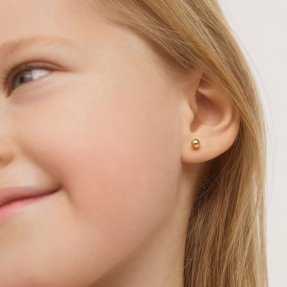 18k Yellow Gold Classic Ball Safety Screw Back Stud Earrings for Babies, Infants, Toddlers, and Little Girls 3mm-5mm - Traditional Plain Ball 18k Gold Stud Earrings for Baby Girls