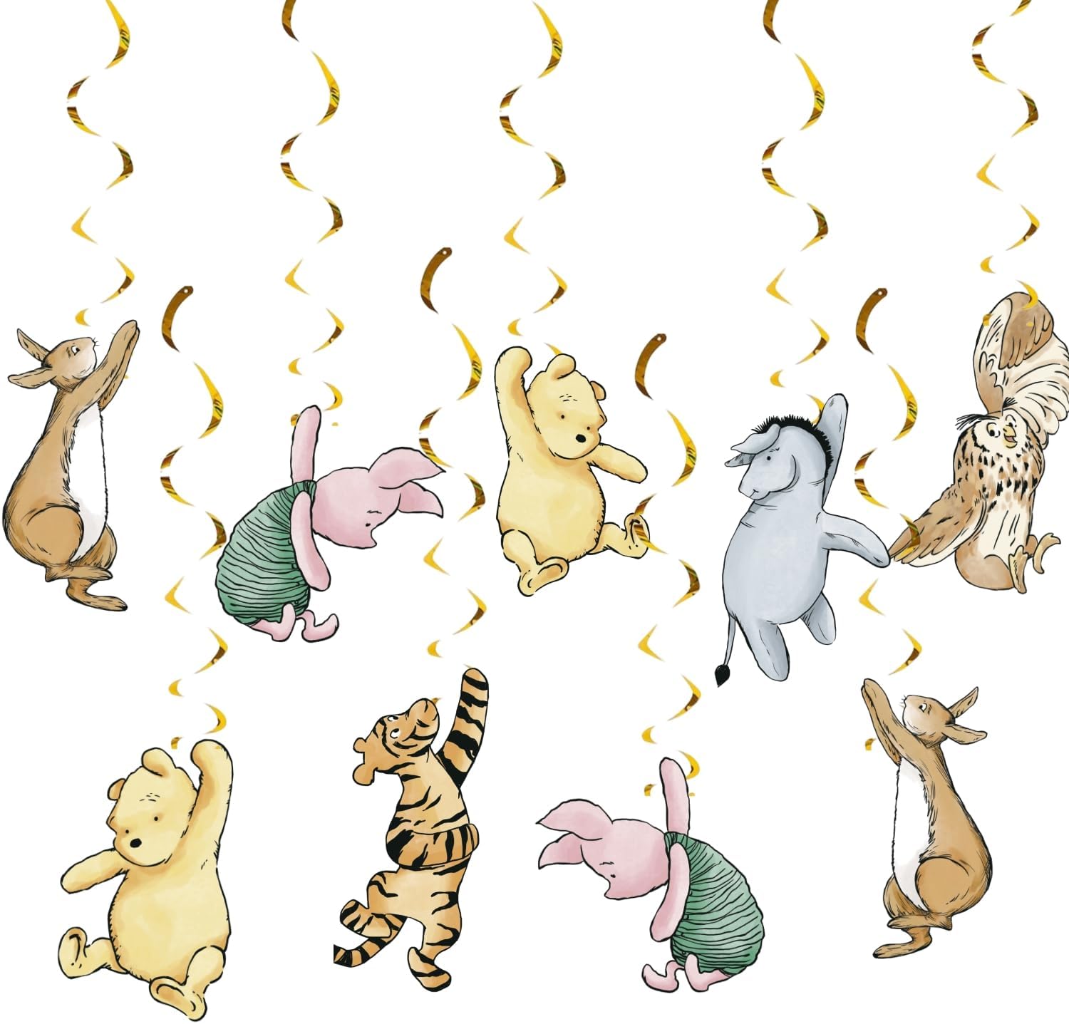 Package Included: You will get 18 PCS pooh themed cutouts and 18 PCS golden swirl streamers, very cute adding for party decor