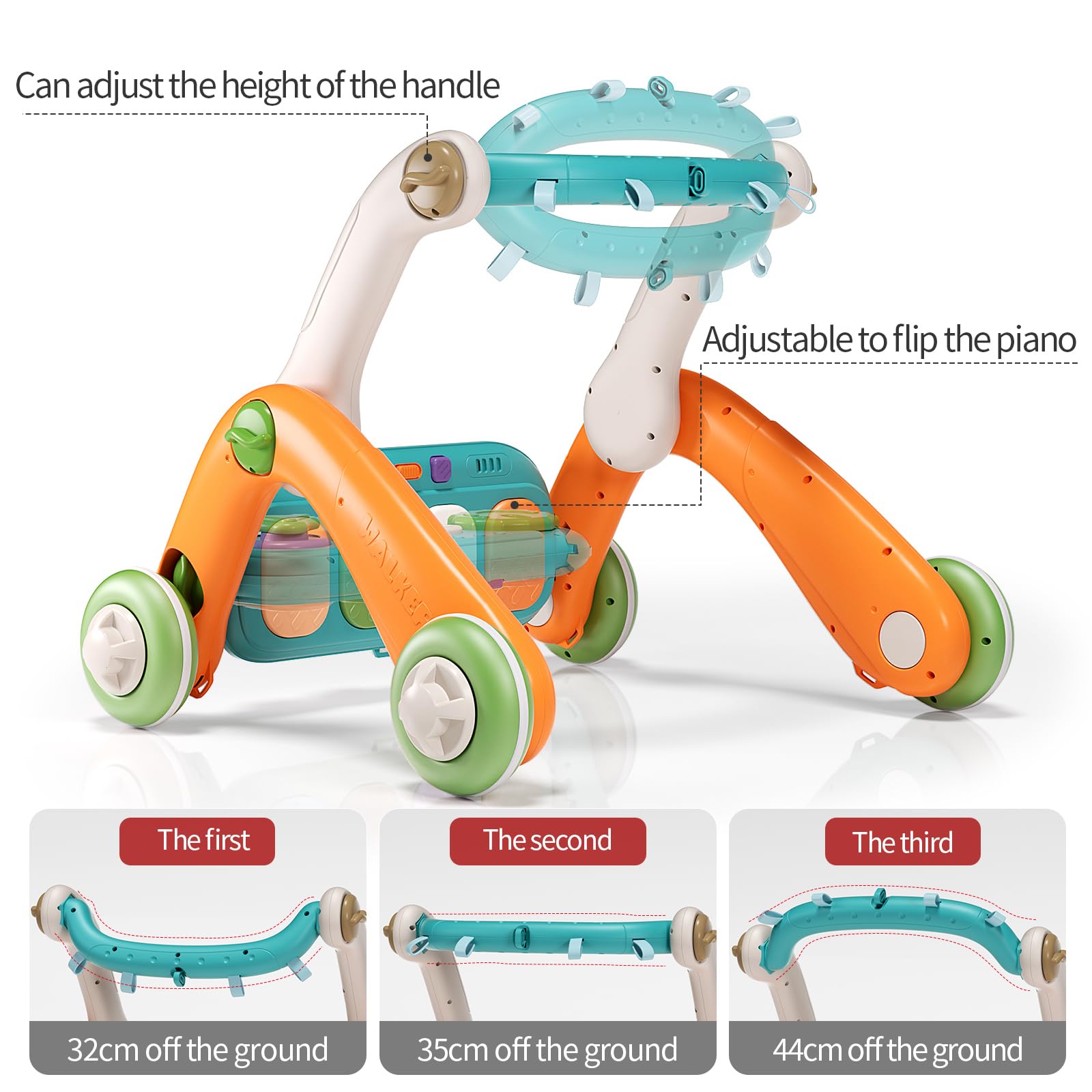 - [2 in 1 Function] It can be a fitness frame or a toddler car, suitable for babies at different stages from 0-12 months and above to play lying down, sitting, lying on their backs, kicking and also learning to walk. The unique musical piano keys make wonderful sounds, and the multifunctional panel on the back attracts babies to touch and stimulates their curiosity.