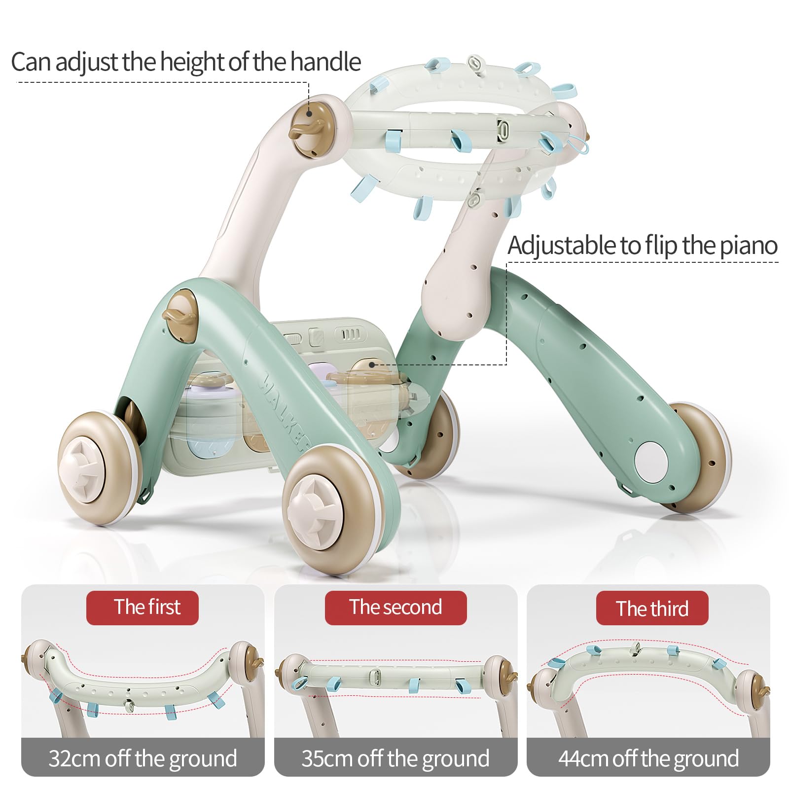 - [Safe Material for babies] 2 in 1 baby gym is made of high quality material with smooth edges. The keyboard and pads can be easily disassembled and the assembly process is very easy from the fitness frame to the walker to meet the needs of babies in different stages. It is a great choice for babies.