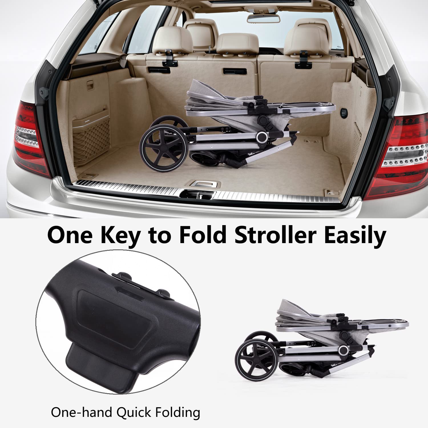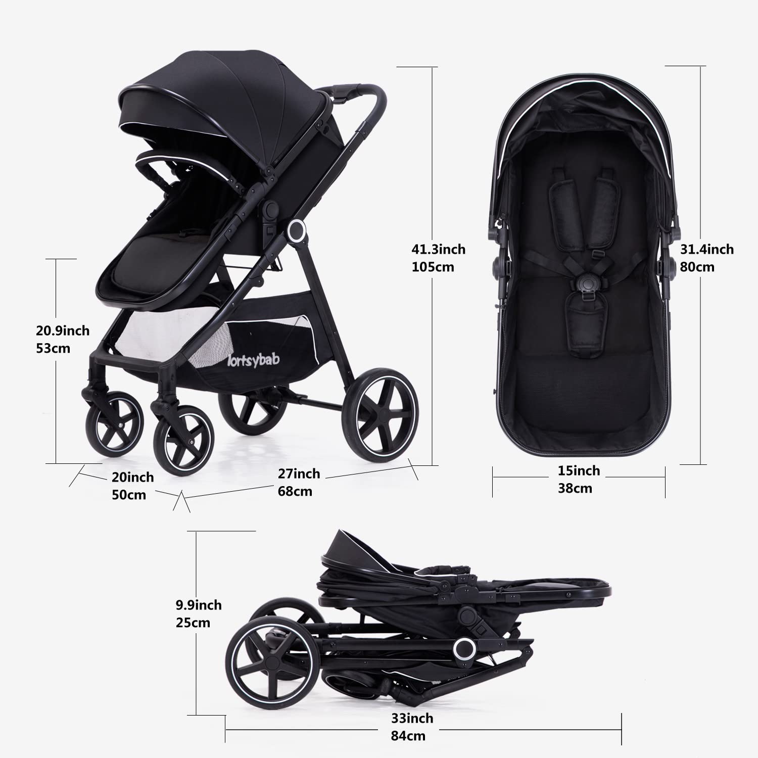 - Multifunctional & Practical Baby Stroller: Our infant stroller is ideal for an easy and active lifestyle. EVA rubber wheels are not only durable, but also have good grip, suitable for all kinds of roads. Eco-friendly fabrics are not easily torn or punctured. Roomy storage basket under the seat holds all baby’s essentials.
