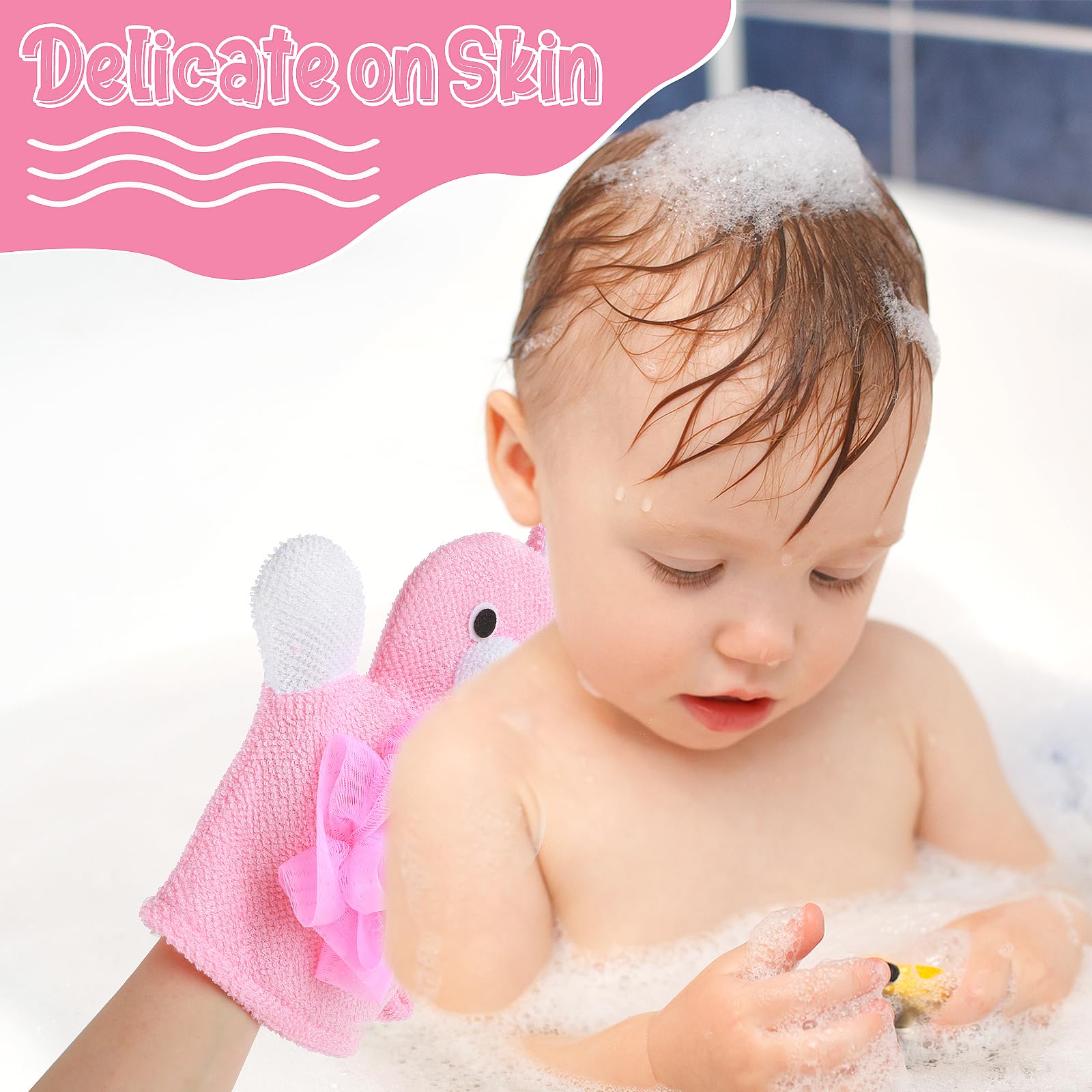 - Cute and Engaging Designs: Each bath mitt features adorable animal designs like pink rabbit and yellow duck, making bath time fun and playful for children. The visually appealing characters can help encourage kids to bathe independently and enjoyably.
