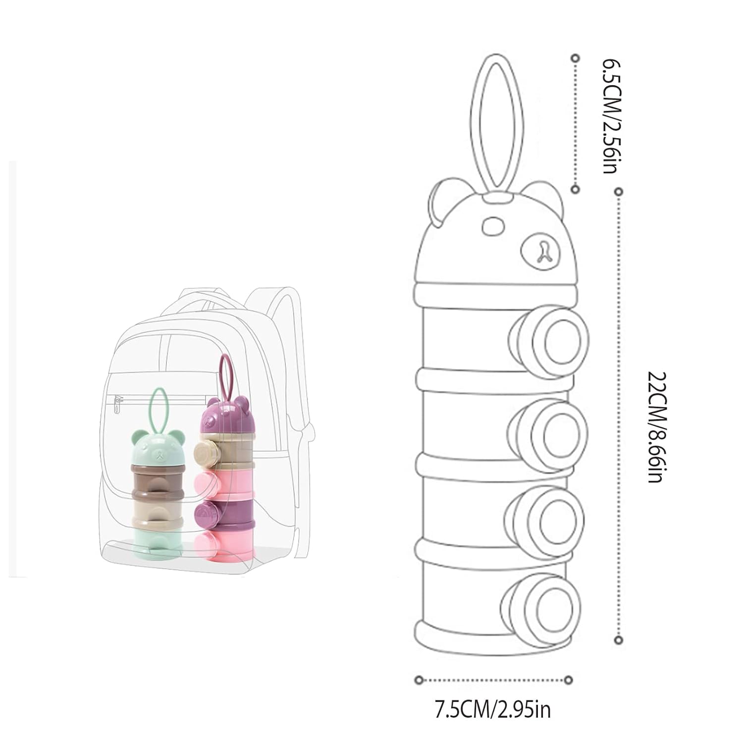 - This Baby Milk Powder Box Measures 7.5cm x 22cm.(2.95 x 8.85inch),Compact And Portable, Ideal For Babysitting,Day Care,At Home And On The Go.Premium Quality BPA Free PP Material, Dishwasher Safe.Suitable For:0-6 Years.