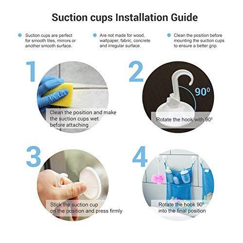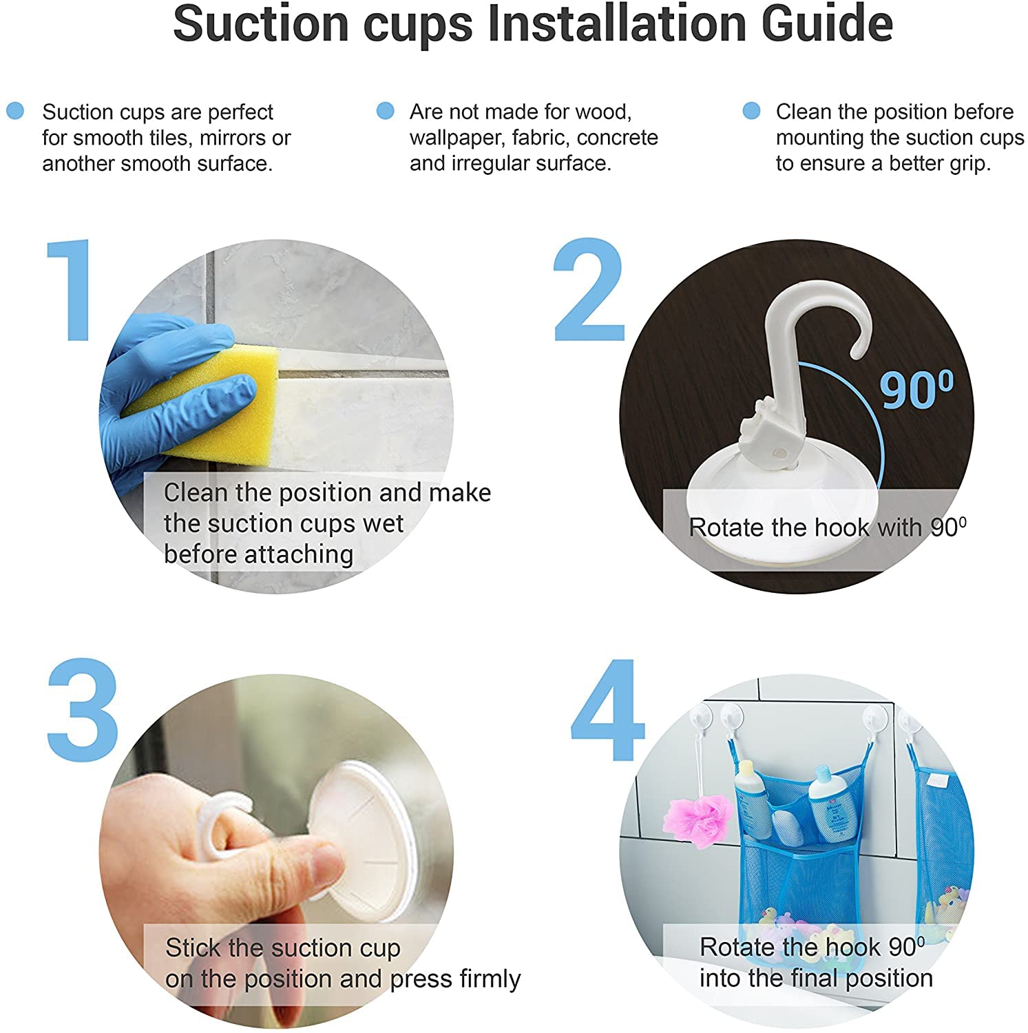 - CONCRETE SUCTION CUPS: Unlike some of the other bathroom organizer nets, we include 6 super strong suction cups instead of just 4. Our suction cups 'lock" once you move the hook down which means your bath storage net will stay stuck to the wall without constantly falling off!To ensure the BEST SUCTION possible, please just make sure the surface is FLAT and EVEN