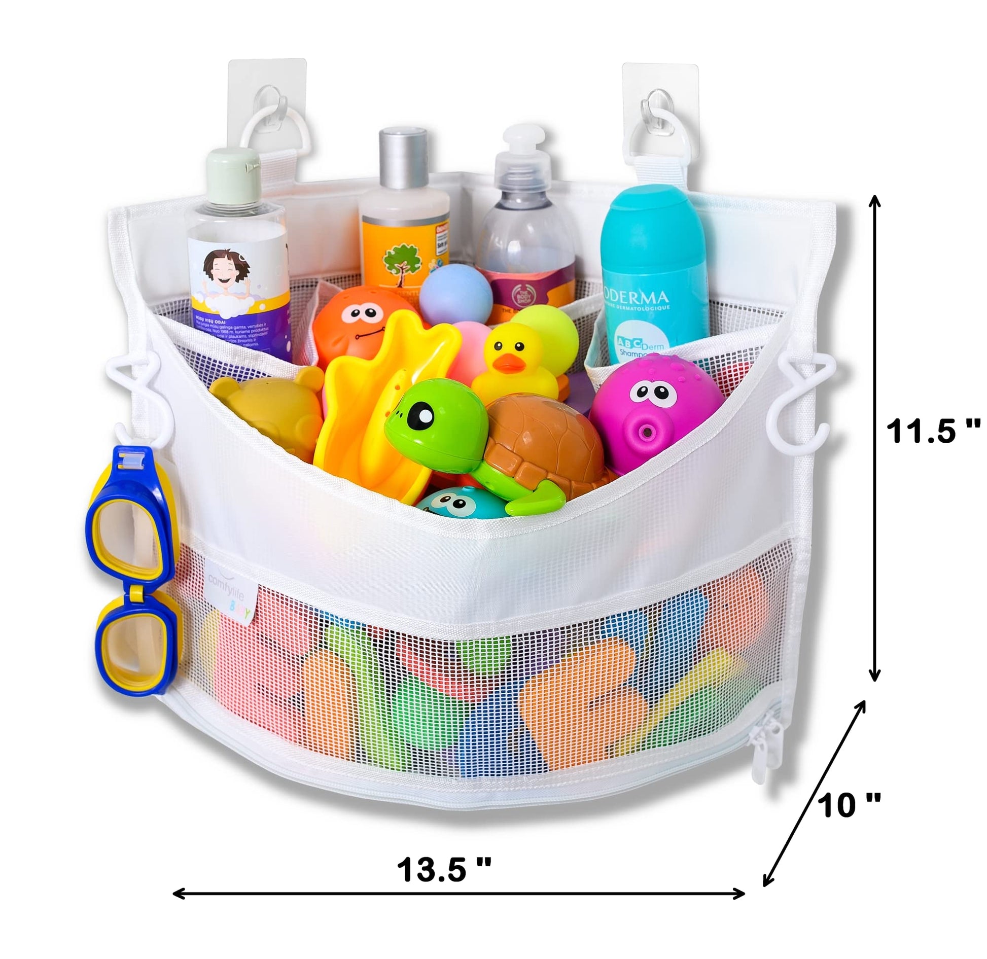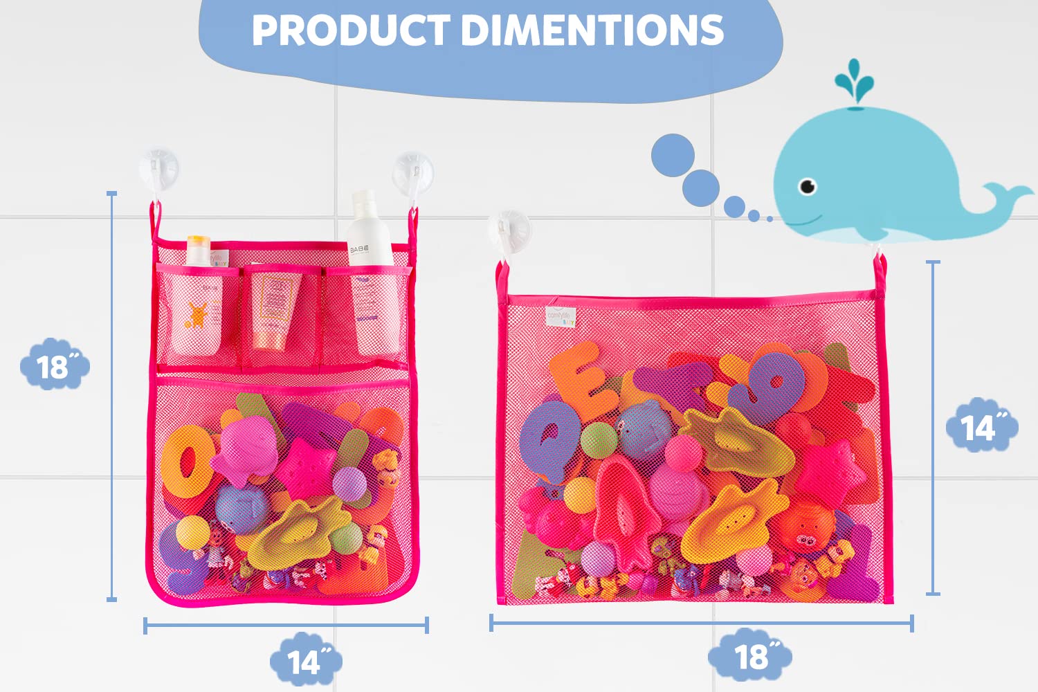 - NO MORE MOLDY TOYS! Our super strong mesh net makes for the ideal bath toys organizer because the netting is specially spaced so that plenty of air can circulate while all the water drains out. Your kids’ toys will stay dry and clean – not all slimy and wet!