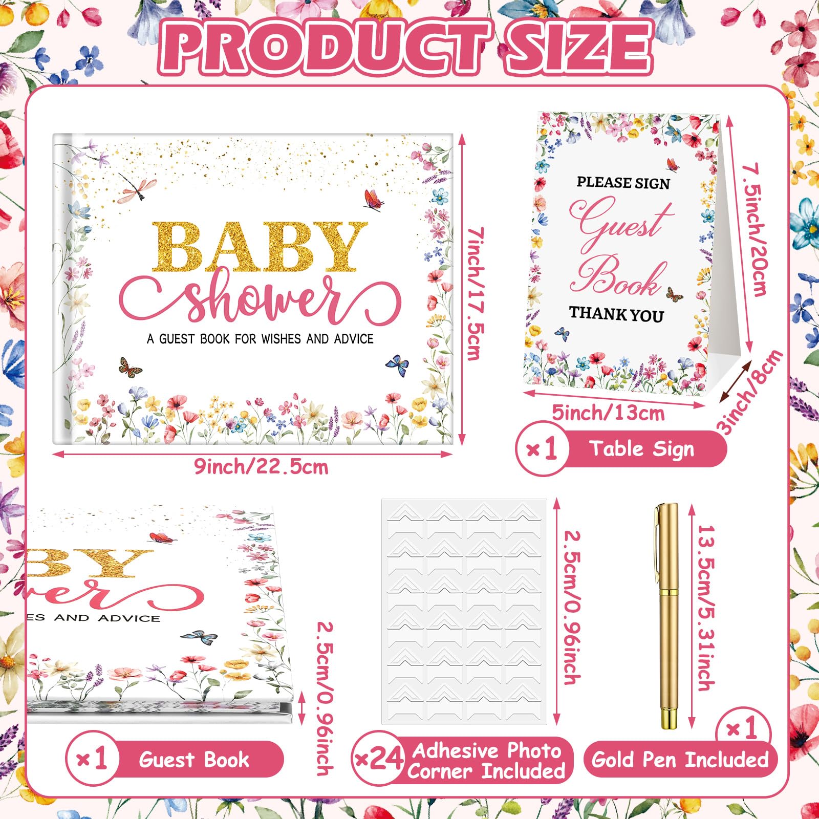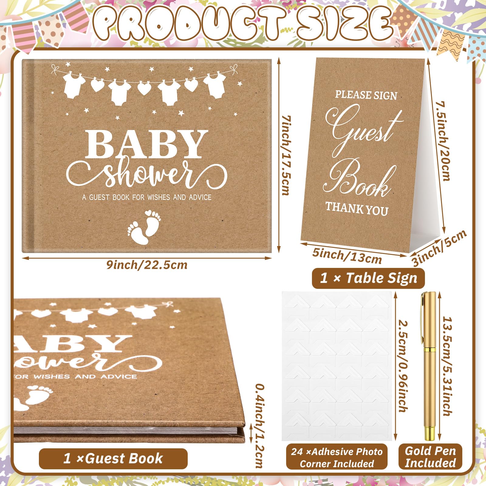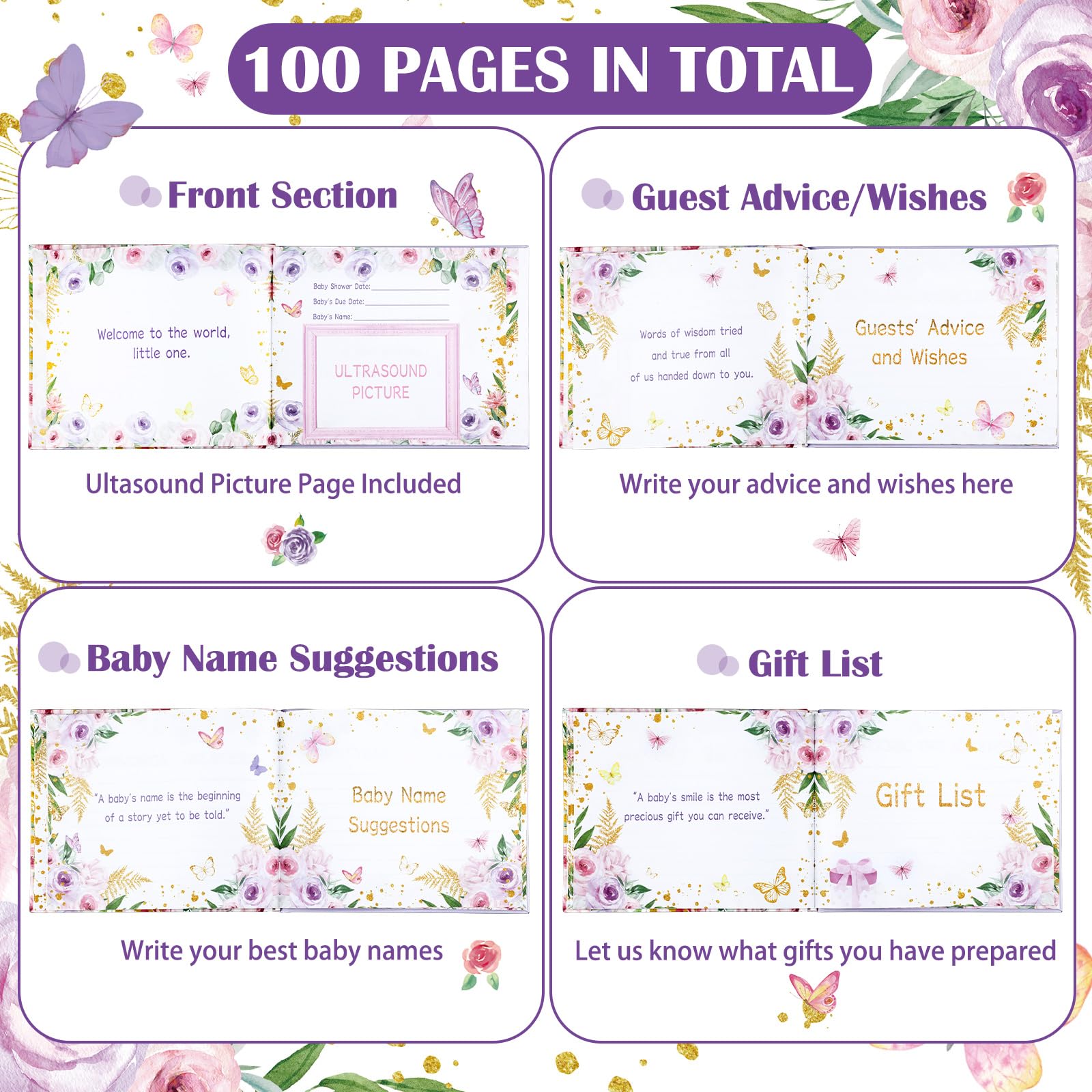 - Reliable Quality: each one of our baby shower books is 9 x 7 inches and has 100 pages, making it the most optimal sign in book; the floral baby shower sign in guest book has an elegant hard cover that's composed of quality materials to make the baby shower as amazing as can be; And the baby ultrasound picture page fits for most size pictures with 24 pieces adhesive photo corner