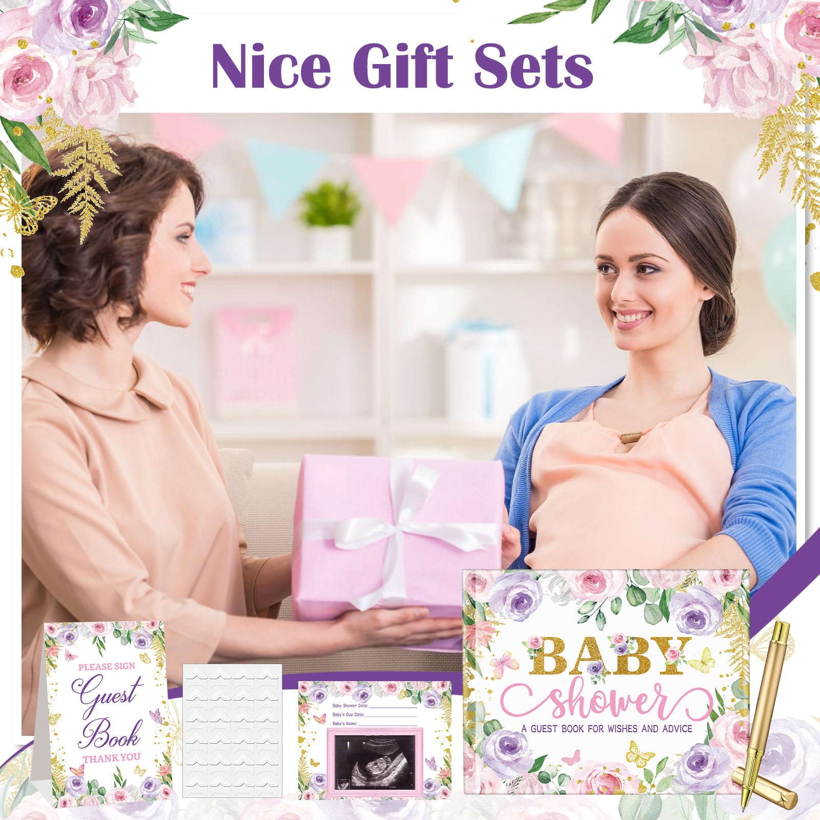 - Delicate Floral Theme: the floral baby shower guest book features adorable floral themed designs, which can easily match well with different party decorations, designed with floral design, there are delicate butterflies, and stunning flower patterns printed on them, mainly come in pink, purple, gold and other tender and charming colors, easy to catch people's attention and bring you a nice visual experience