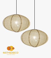 Selecting soft and translucent linen bamboo-patterned fabric enhances the versatility of this lampshade.