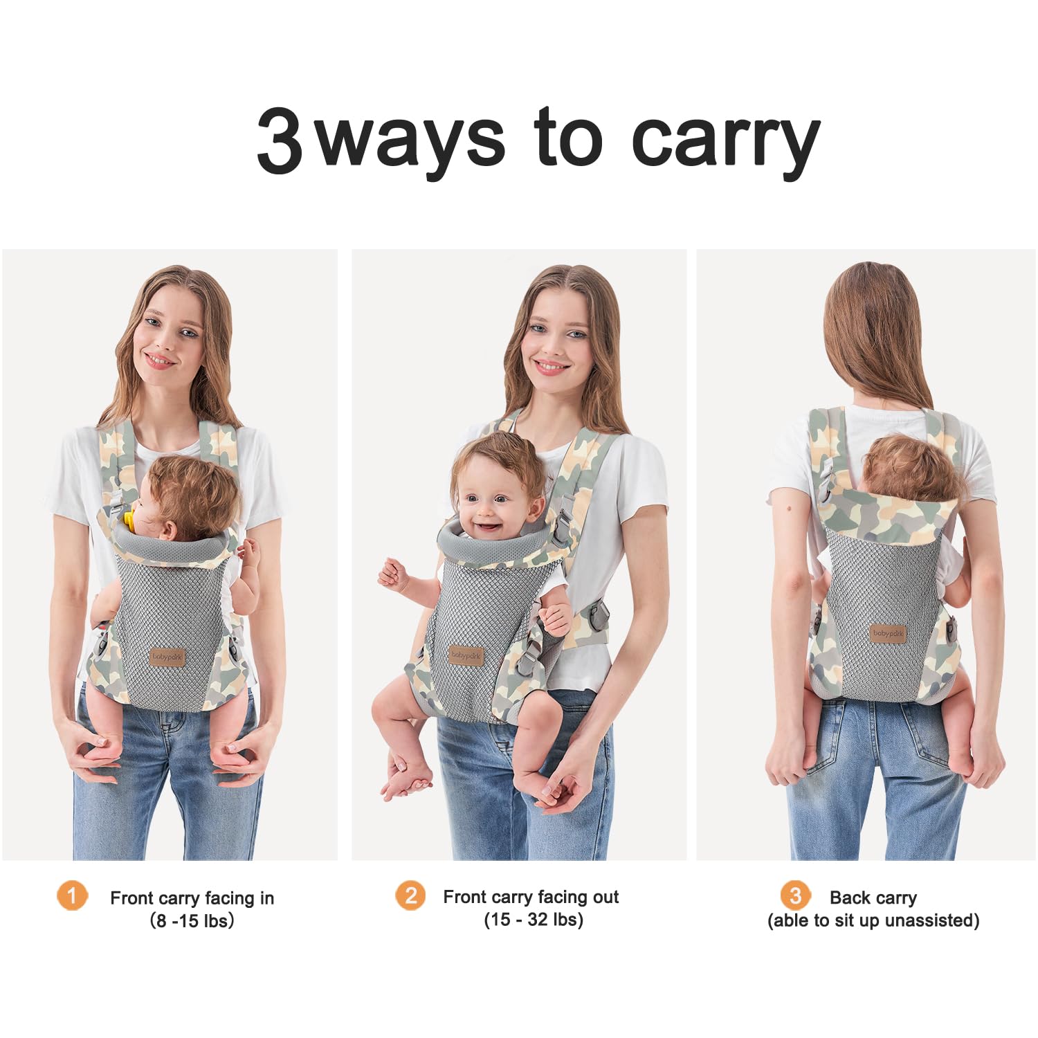3-in-1 Baby Carrier Newborn to Toddler - Ergonomic(7.5-45lbs),Cozy Baby Carrier,Enhanced Lumbar Support,Easily AdjustableLightweight & Breathable Child Carrier(Camouflage)