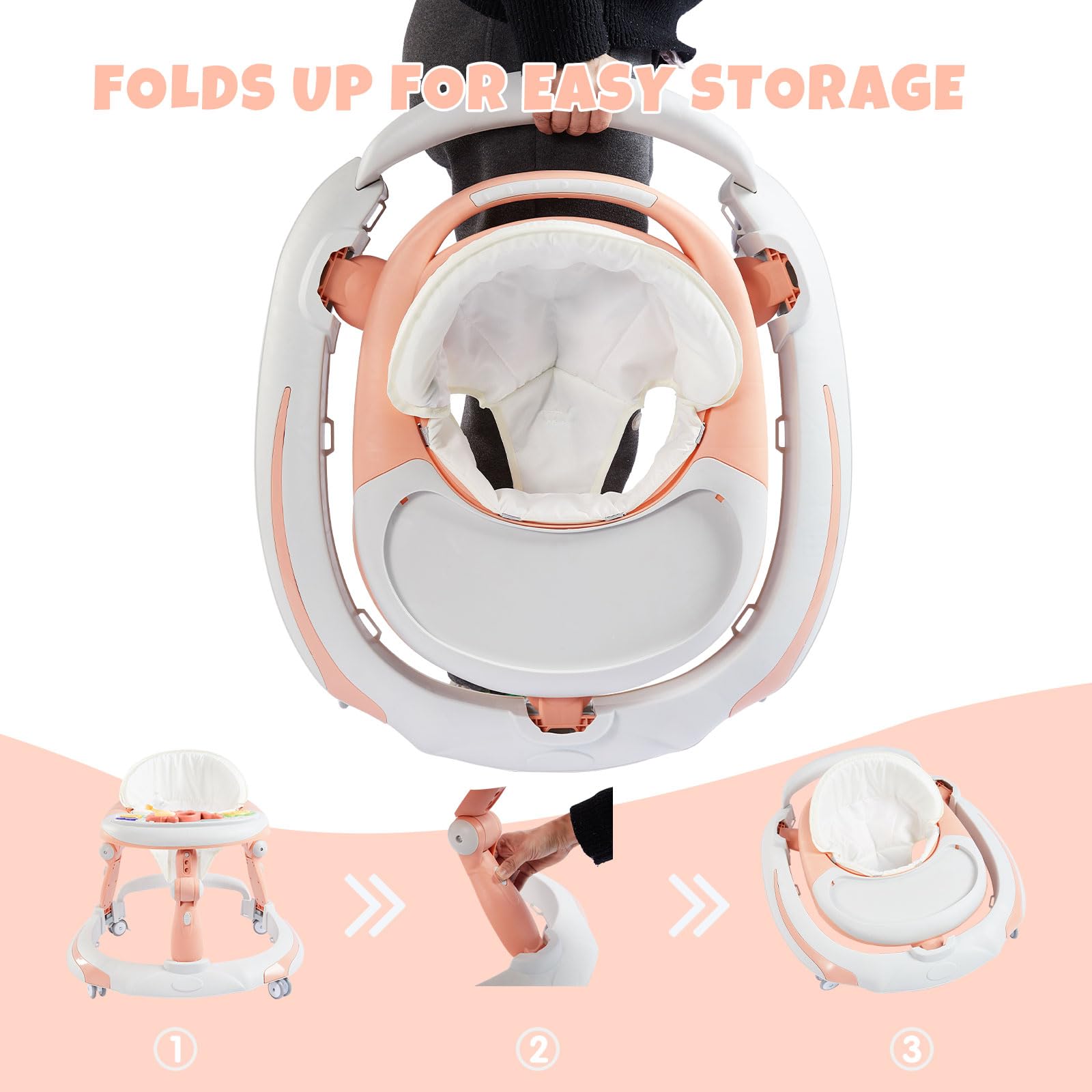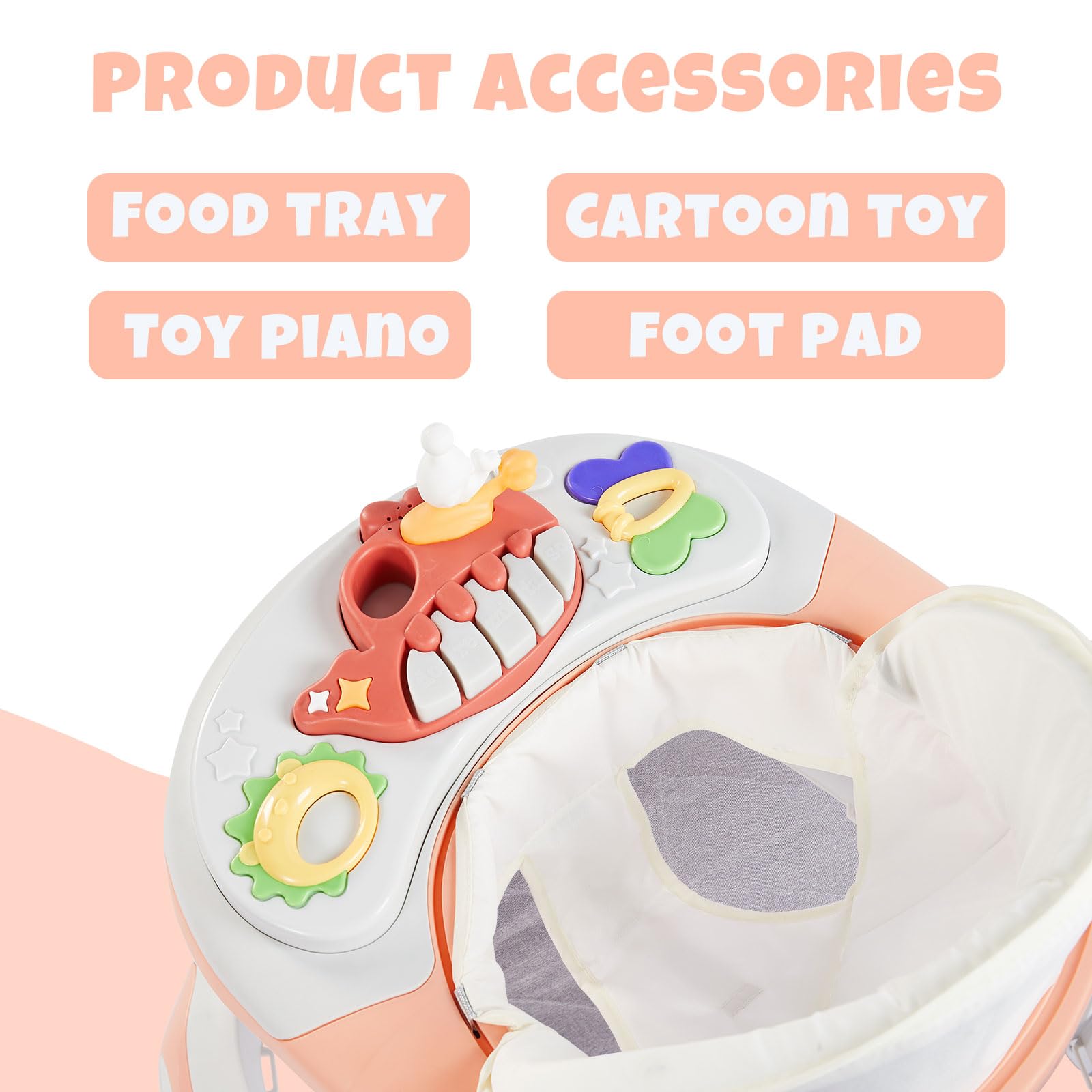 - 【Fun Music Box】The music box(without battery) on the baby walkers for girls with fun lights and music can satisfy baby's curiosity, and the small toys on the music box can add fun while babies learn to walk
