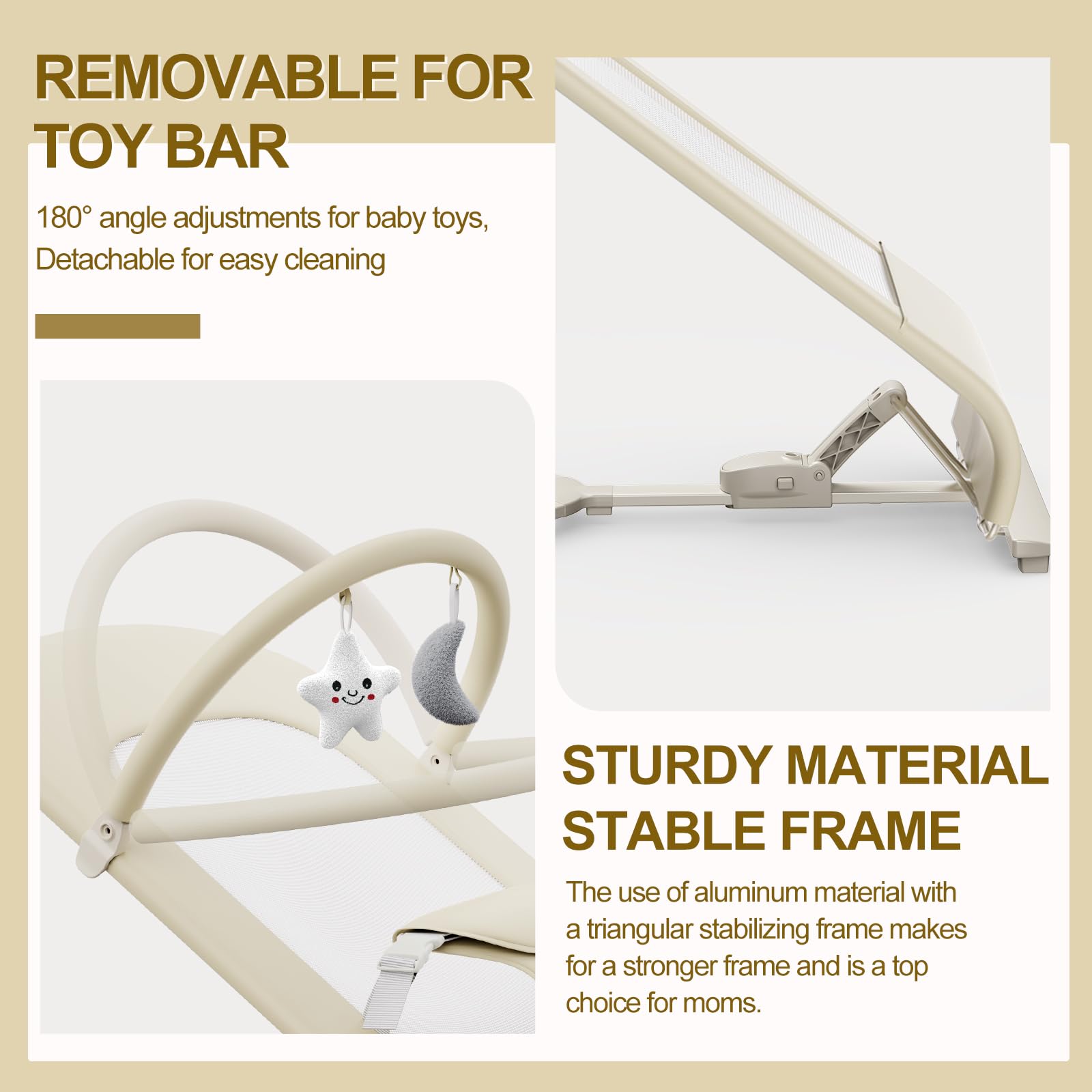 3-in-1 Portable Baby Bouncer & Rocker Chair for Newborn to Toddler - 4 Adjustable Recline Positions, Breathable Cotton Fabric, Natural Vibration, Supports Up to 33 lbs (Oatmeal Khaki)
