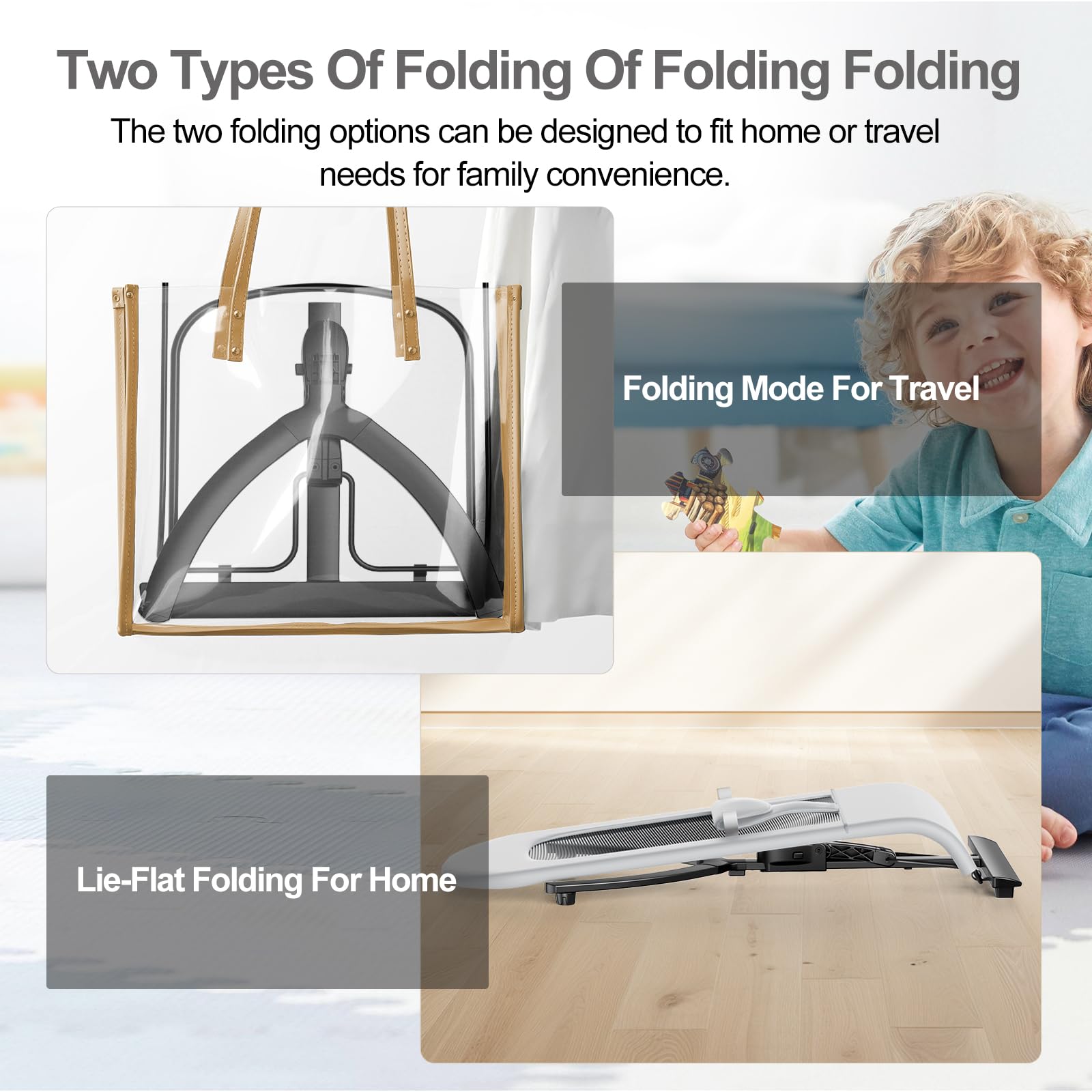 - 【Portable & Convenient】 The Portable baby bouncer can be effortlessly folded flat and conveniently stored in a carrying bag or suitcase, making it perfect for use at home or on the go. Wherever you are, this baby bouncer seat is an ideal choice
