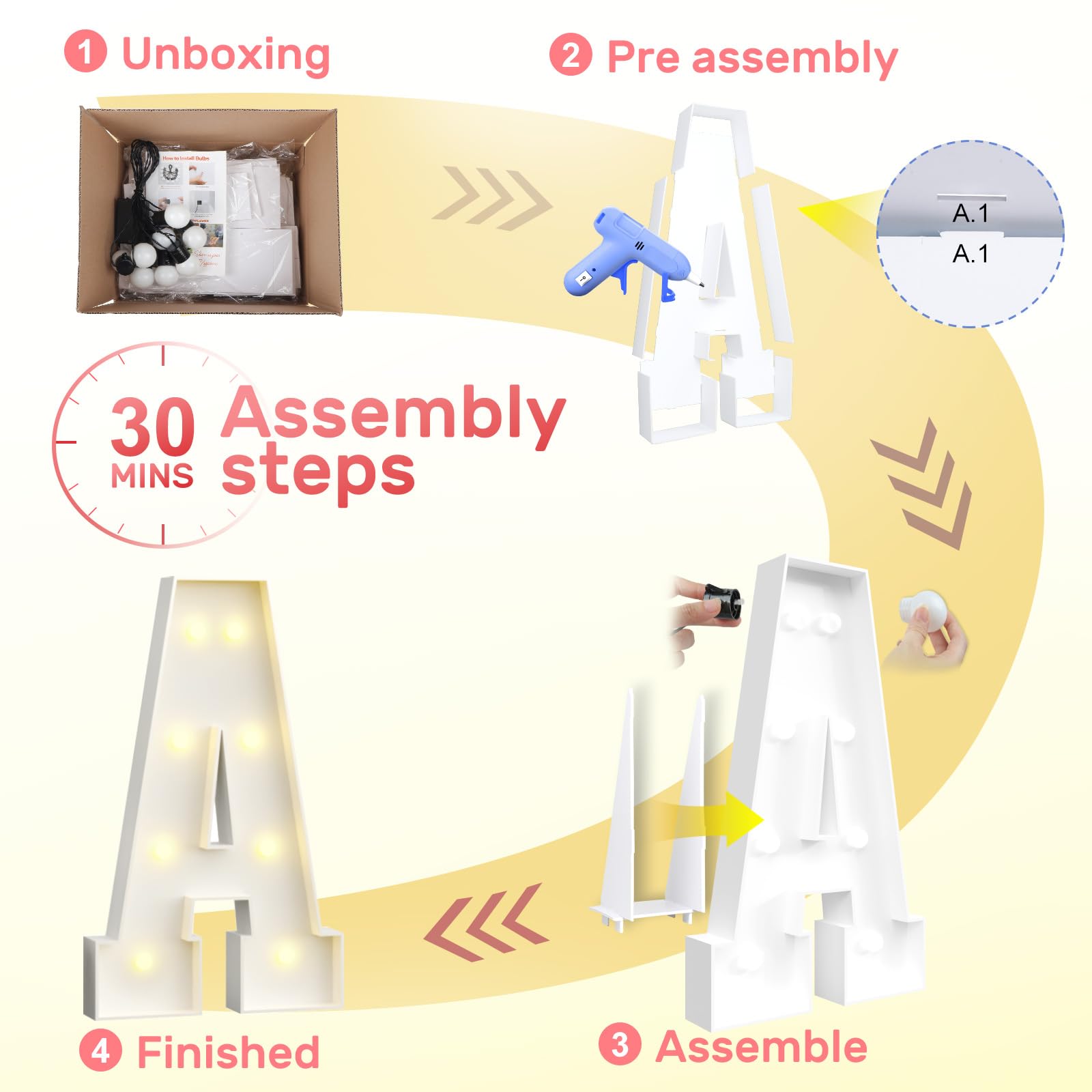 - Funny DIY Product: Each 3 ft baby shower letters have corresponding slot designs: 1. Find the corresponding bayonet to splice and fix them with a hot glue gun. 2. Take out the light bulb screw it, and install the battery