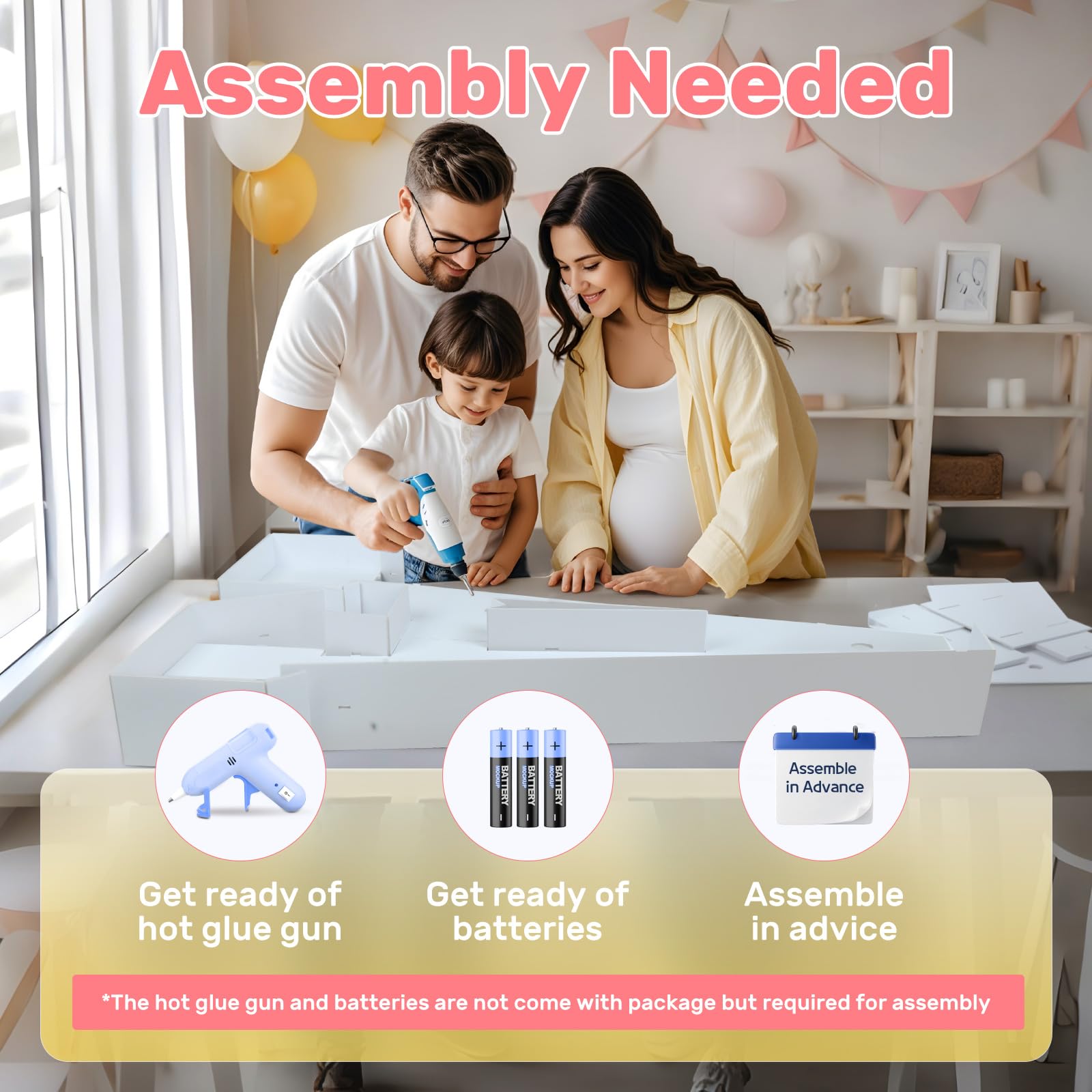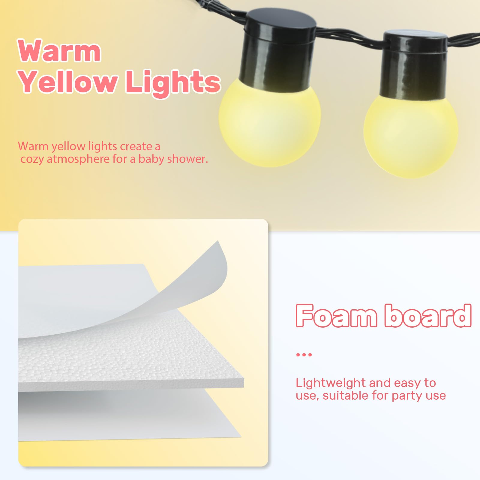 - Package Includes: Each large baby letters kit for gender reveal party containing the pre-cut letter foam boards, 2 string of 8 bulbs and installation instructions. (The package does not include batteries and glue gun, please prepare in advance