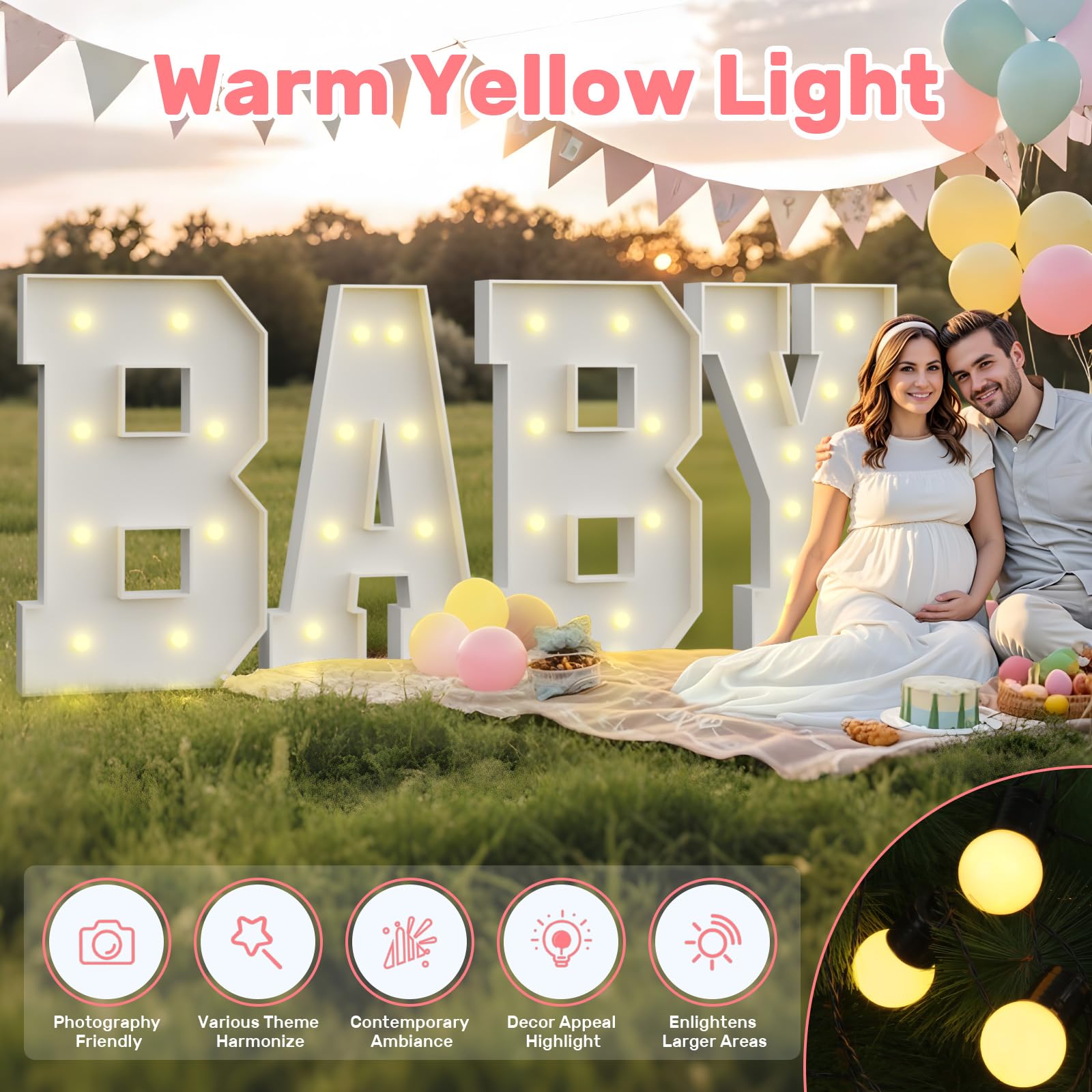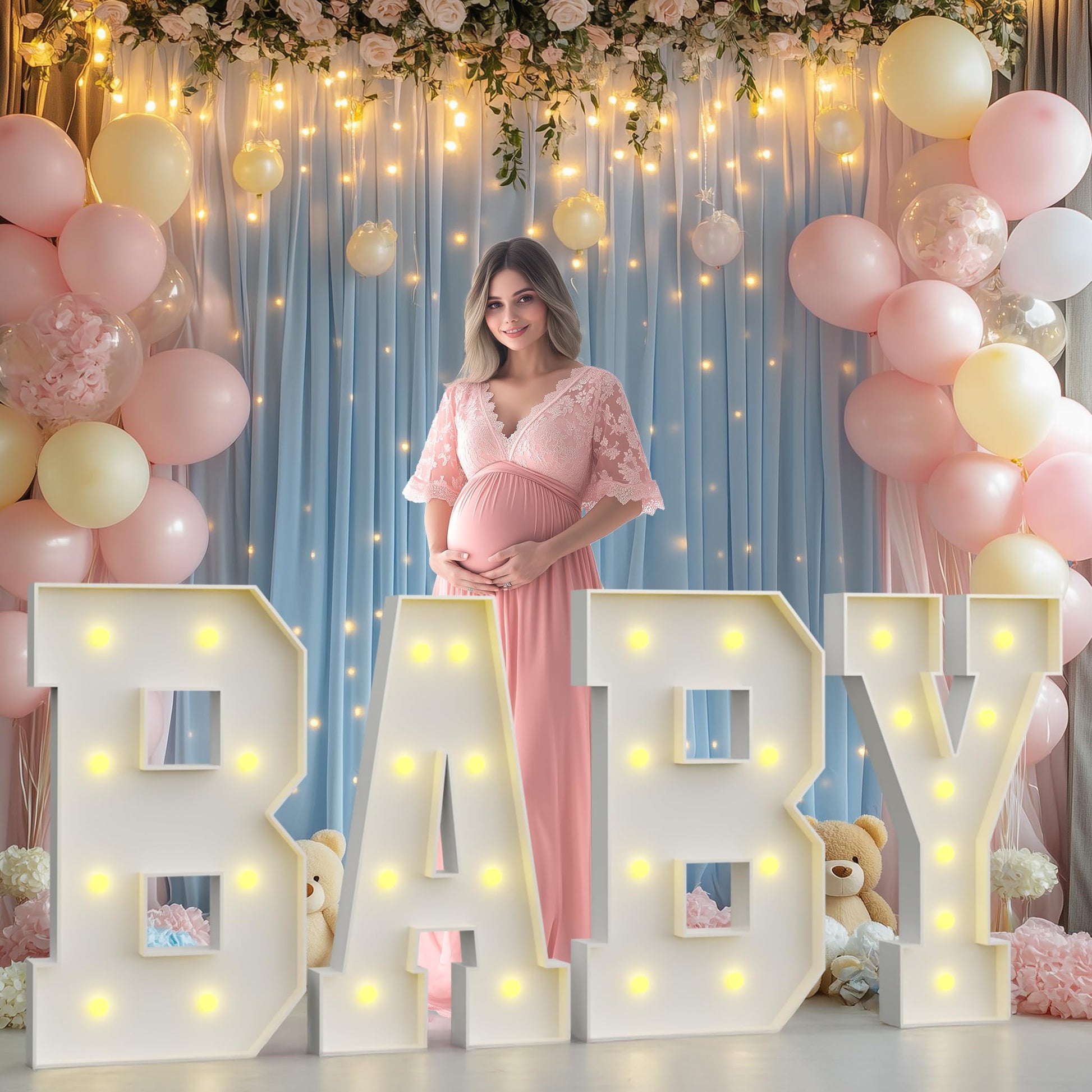 - Charming Baby Shower Decoration: Elevate your baby shower with our 3ft marquee light up letters "BABY." These eye-catching letters create a delightful focal point, perfect for welcoming guests and celebrating the upcoming arrival.