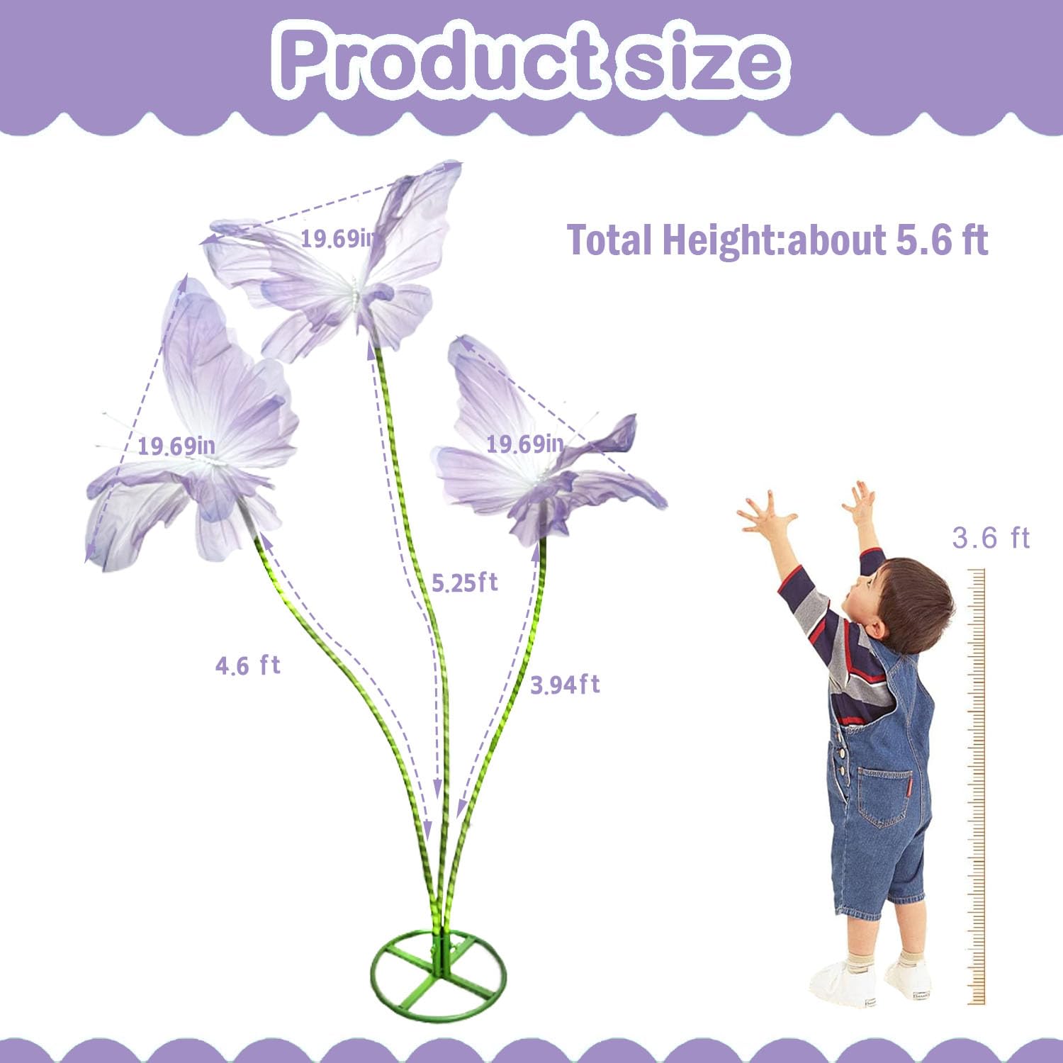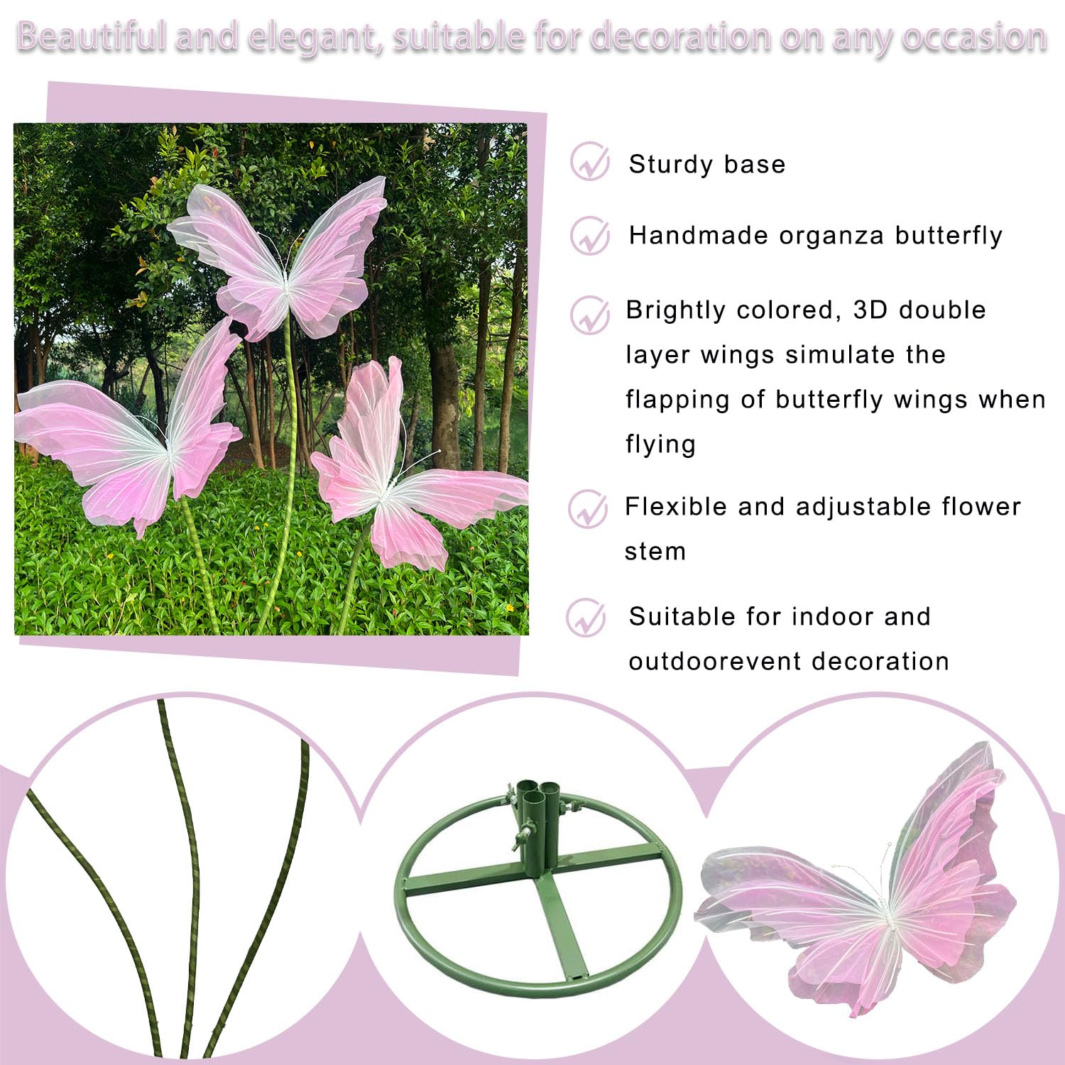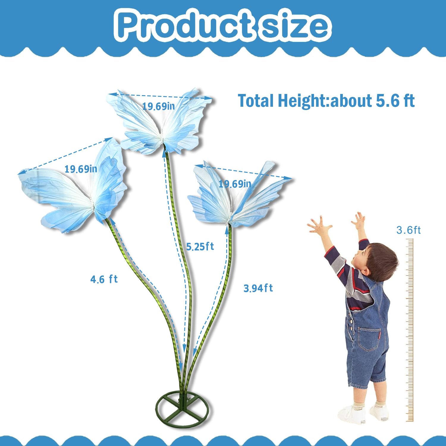 - Giant Butterfly Set Includes - Metal base*1, Stem*3 (47/55/63 inches), Butterfly*3 (19.6 inches in diameter).