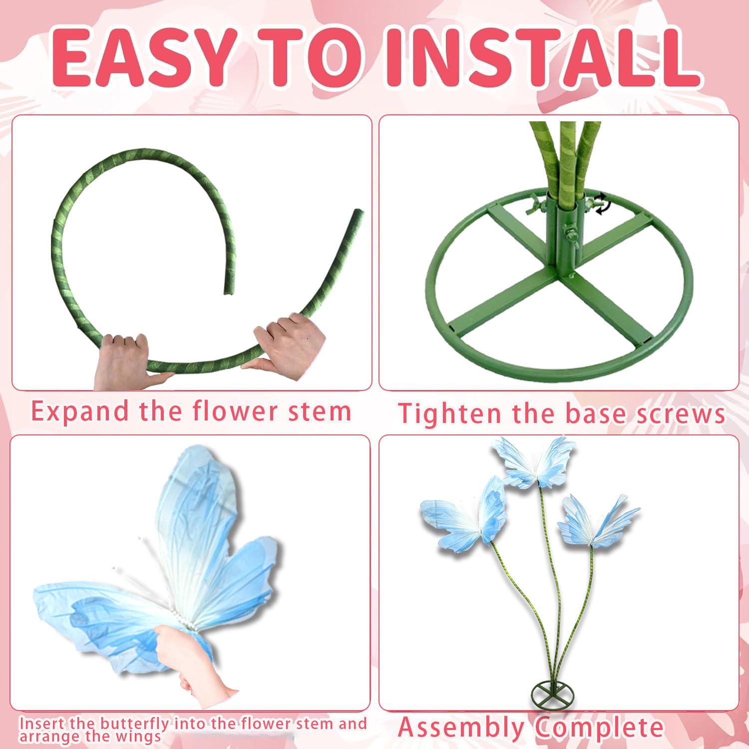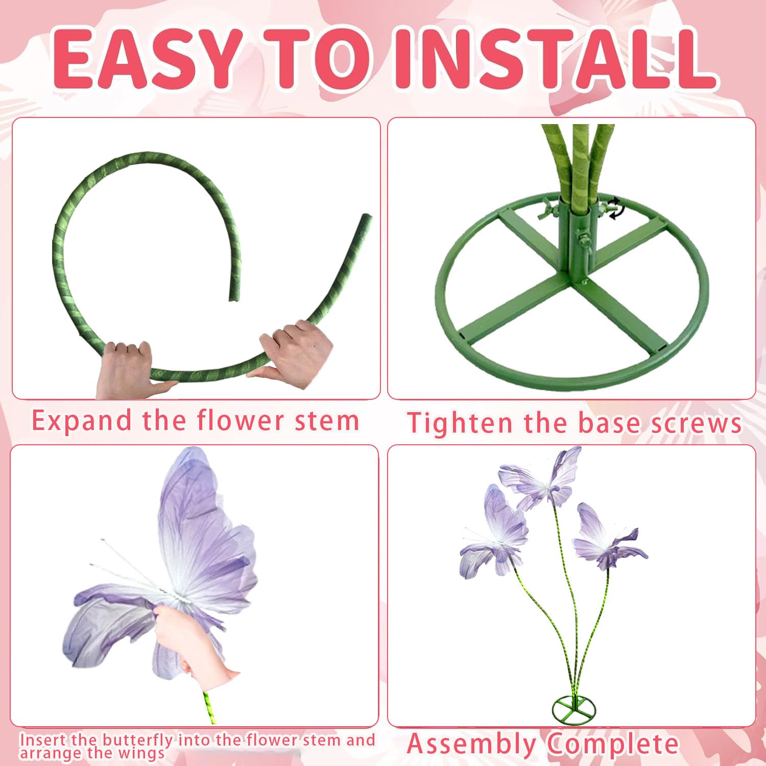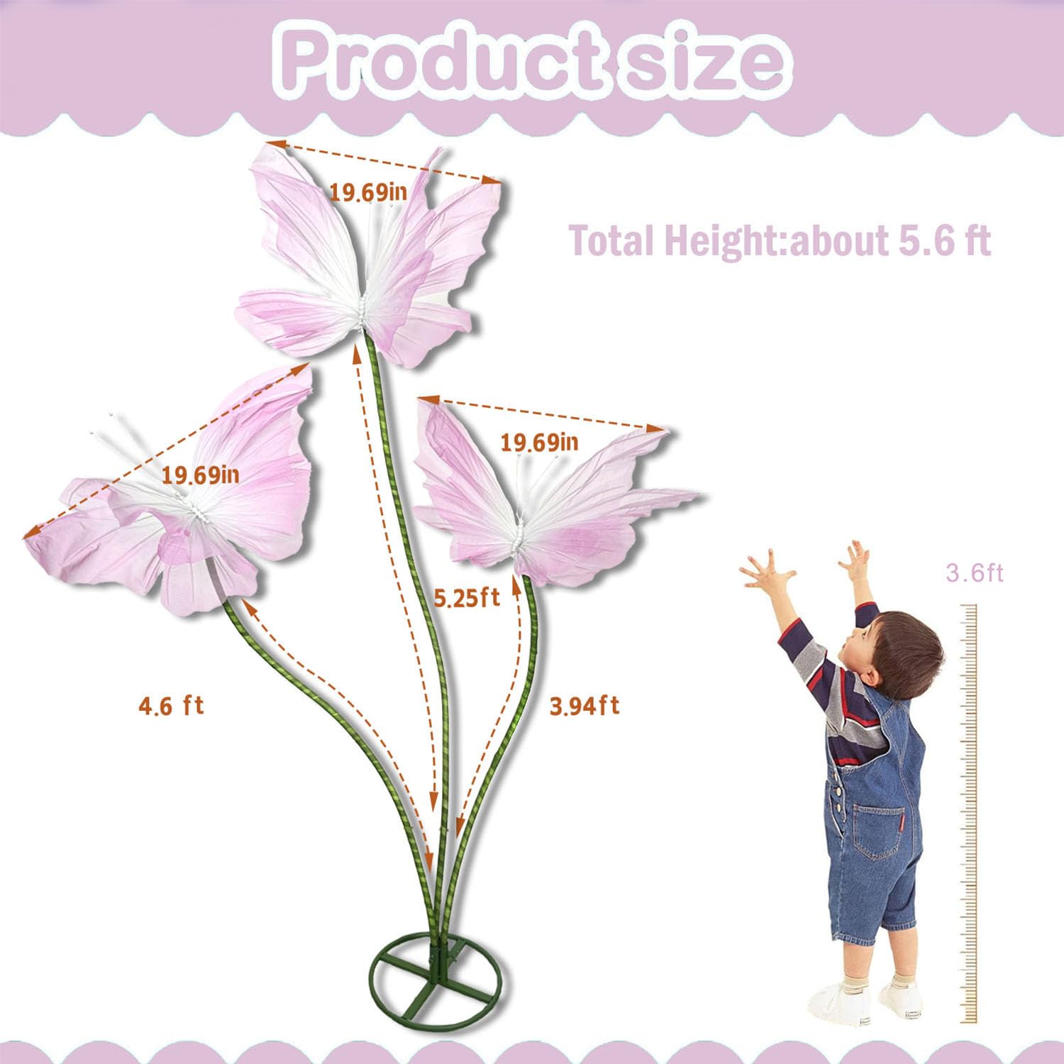- Giant Butterfly Set Includes - Metal base*1, Stem*3 (47/55/63 inches), Butterfly*3 (19.6 inches in diameter).