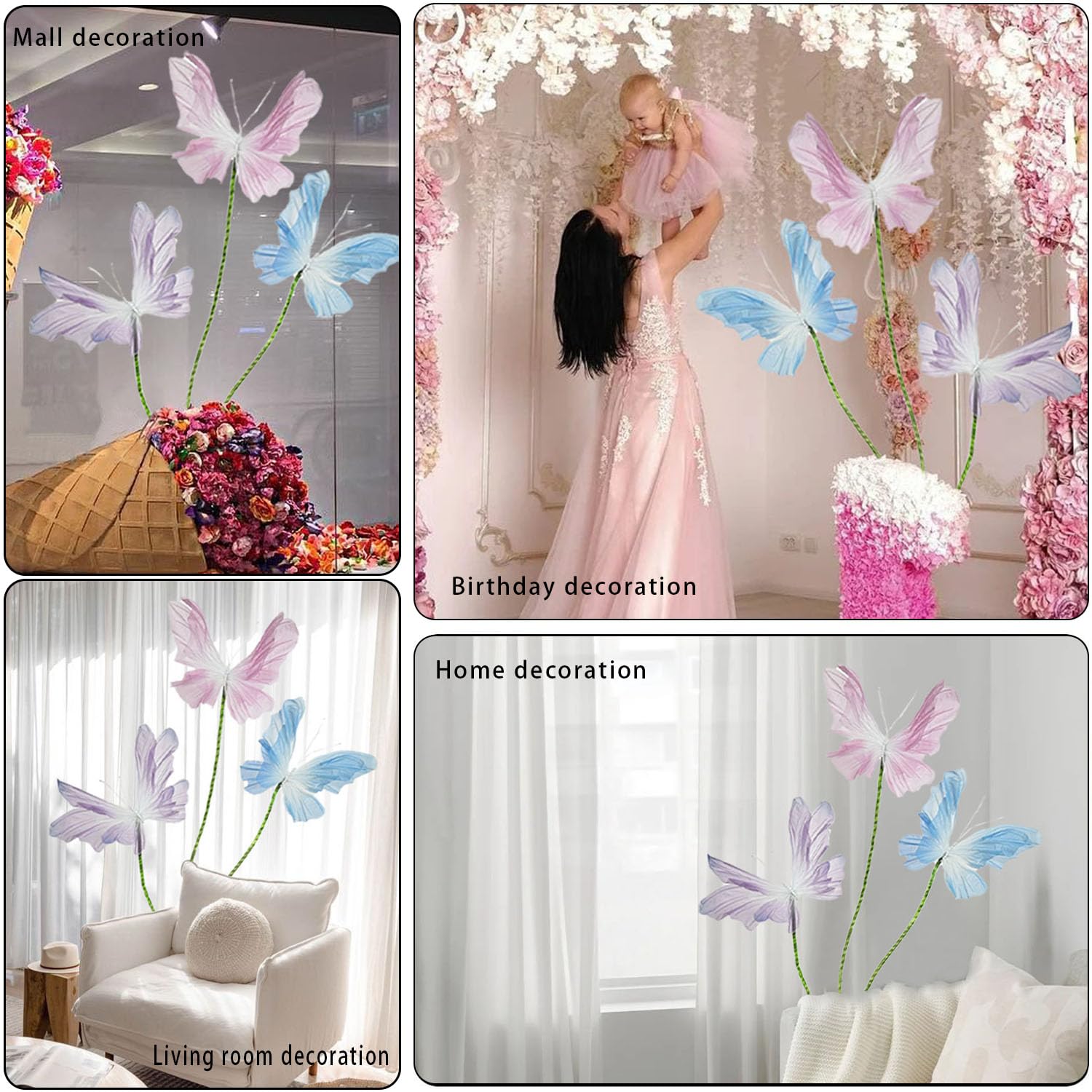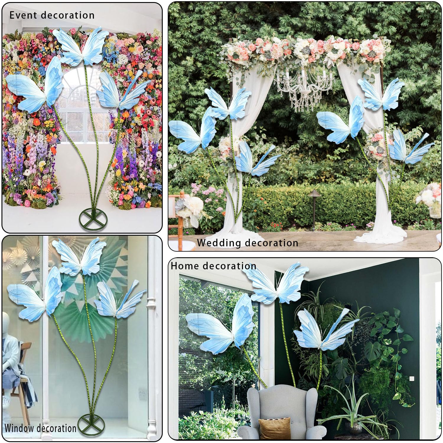- Large Butterfly Decorations - These large butterfly decorations come with a sturdy metal base to ensure stability. Equipped with an adjustable stand to create different shapes. The butterflies are made of high-quality silk and wire, perfect for eye-catching event decorations or home displays.