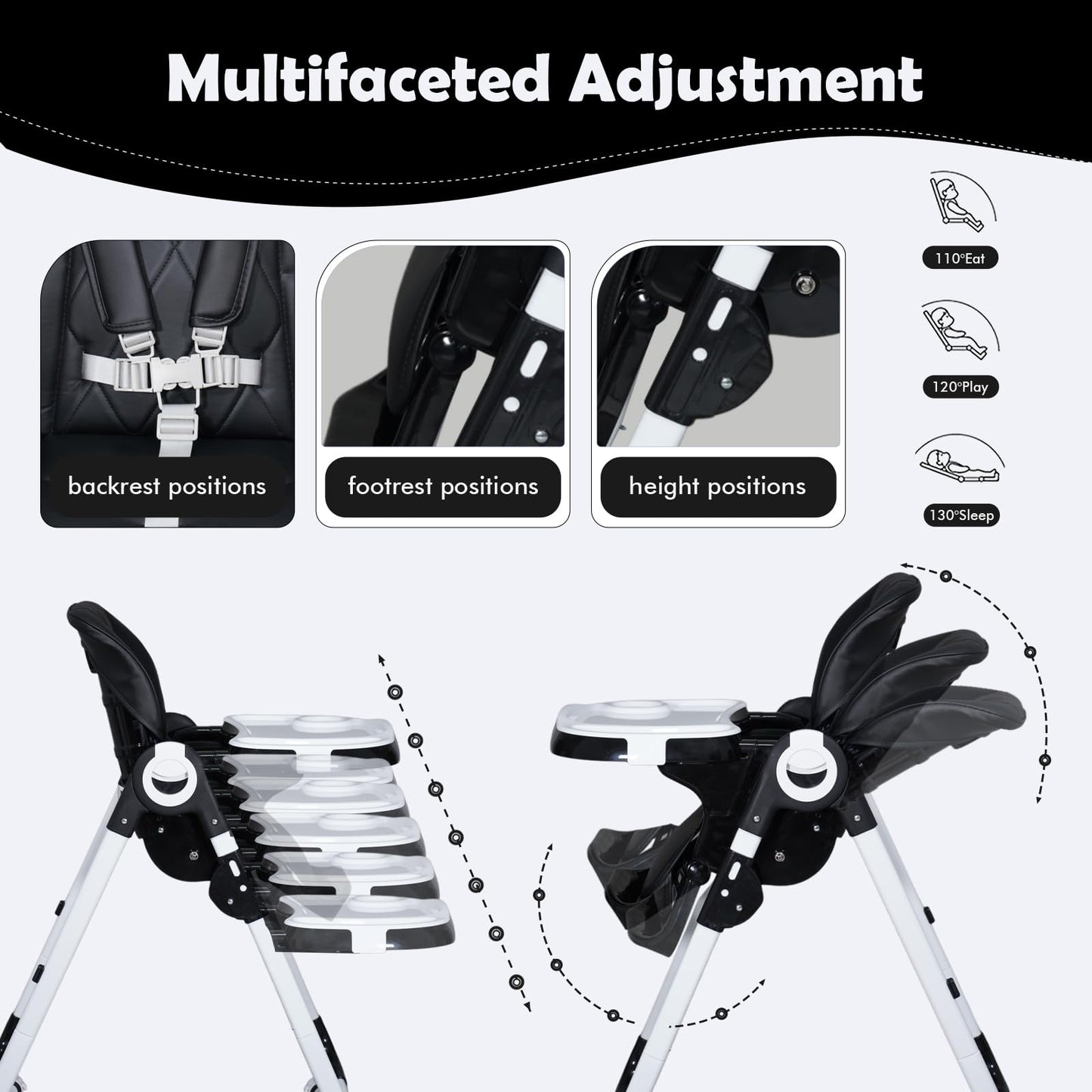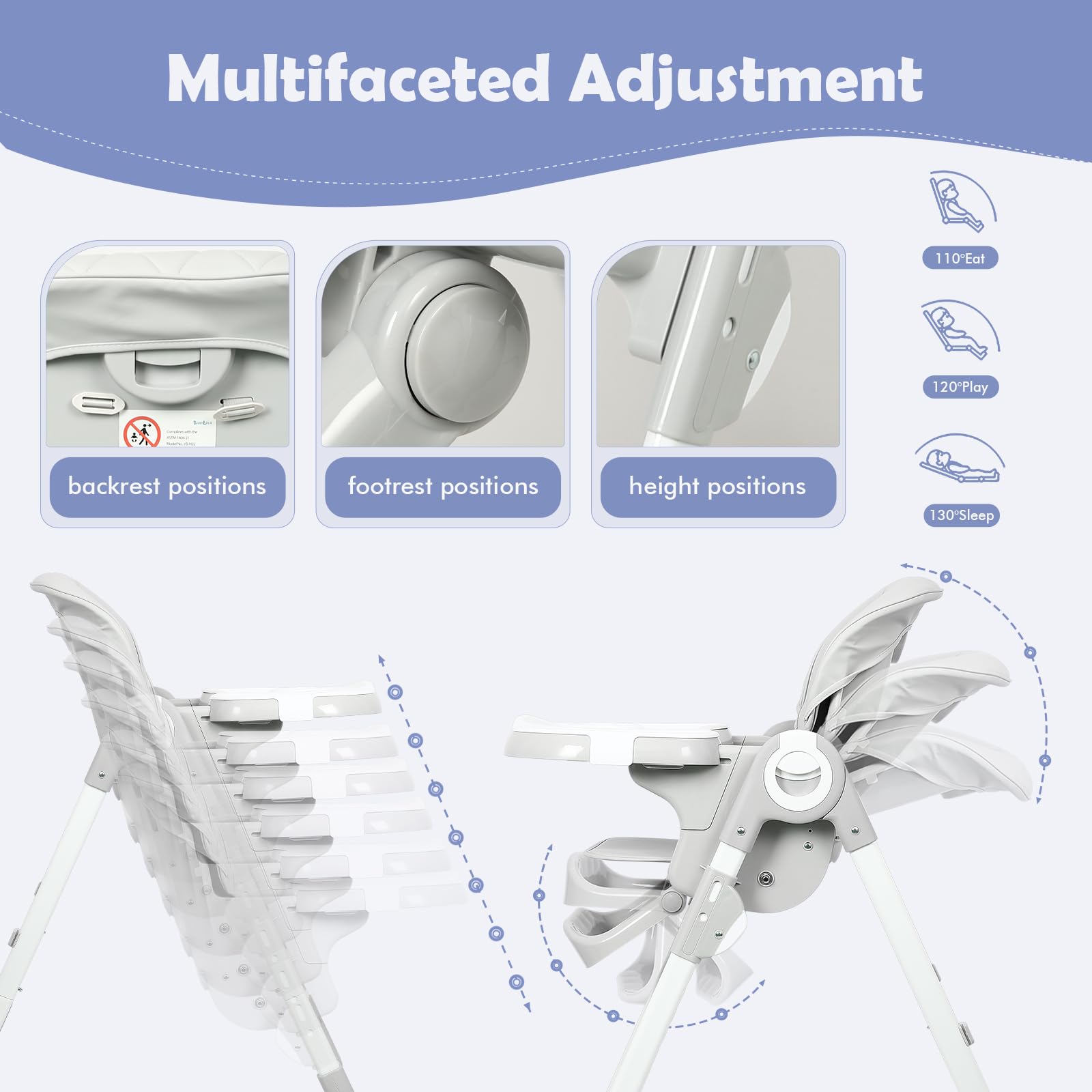 - Versatile Design: Our highchairs for babies and toddlers with 7 height positions, 4 recline positions, 3 footrest positions adjustable system and 3 telescopic positions for removable tray we use can adapt to different scene. Our adjustable high chair are perfectly to your baby's developmental needs.