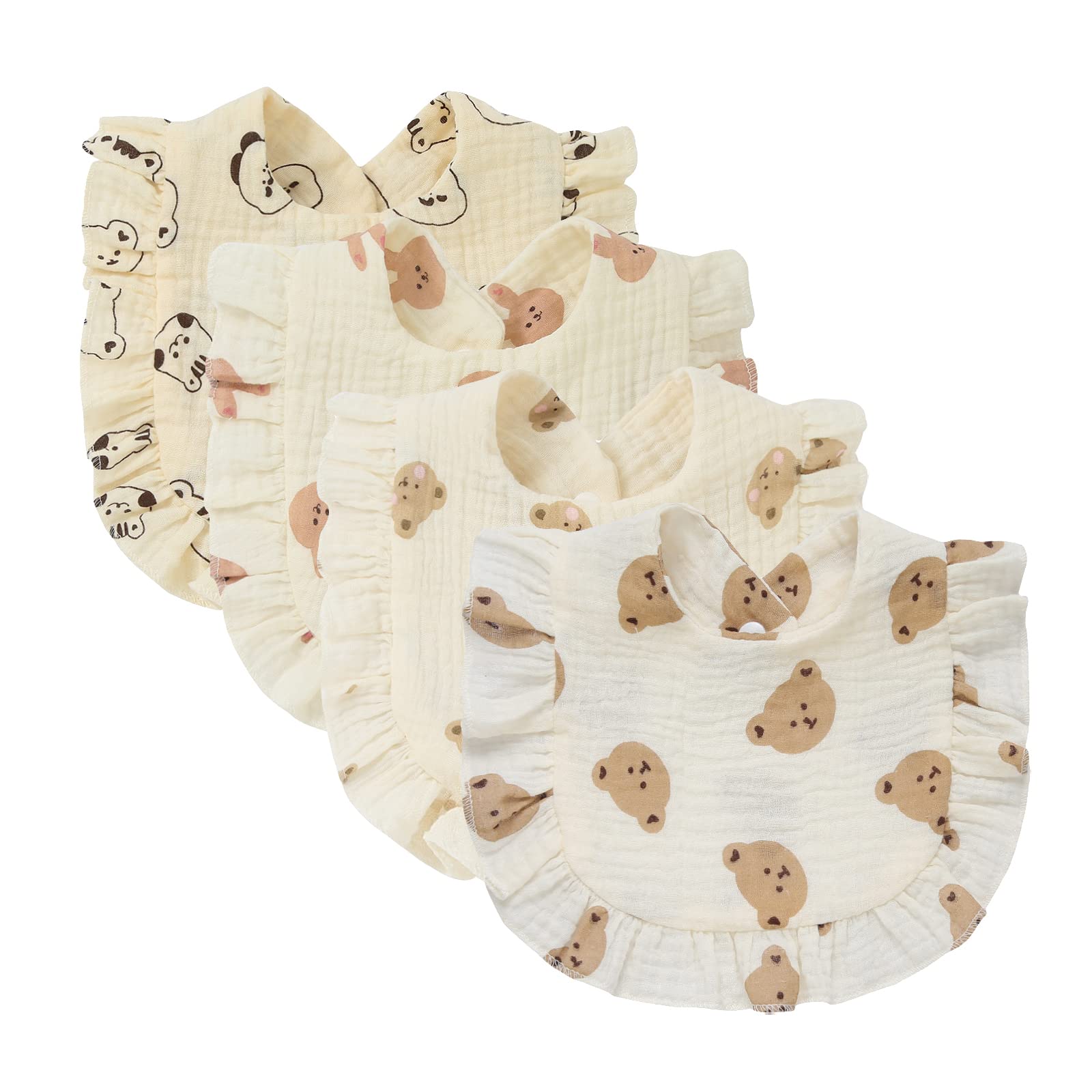 4 PACK Solid Muslin Baby Drool Bibs Set for Unisex Boys Girls Cotton Adjustable Teething Feeding Drooling Bibs