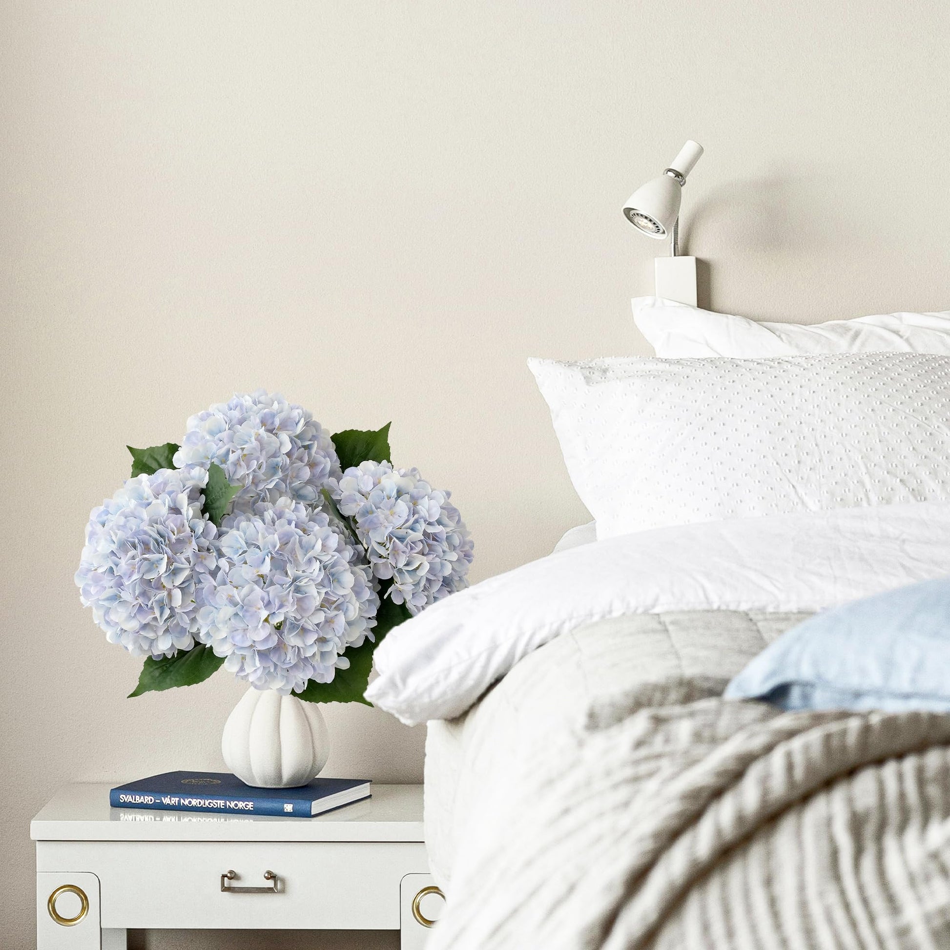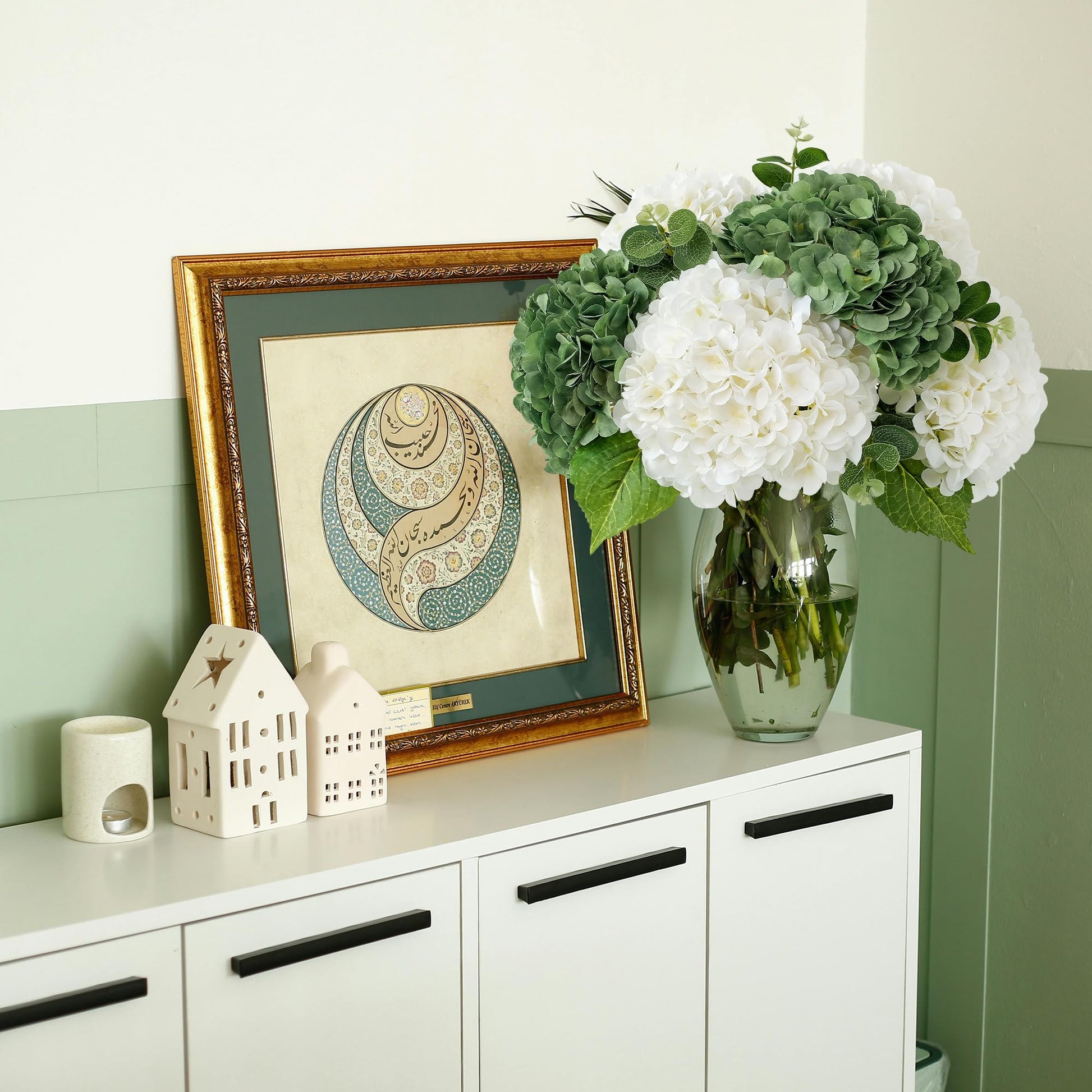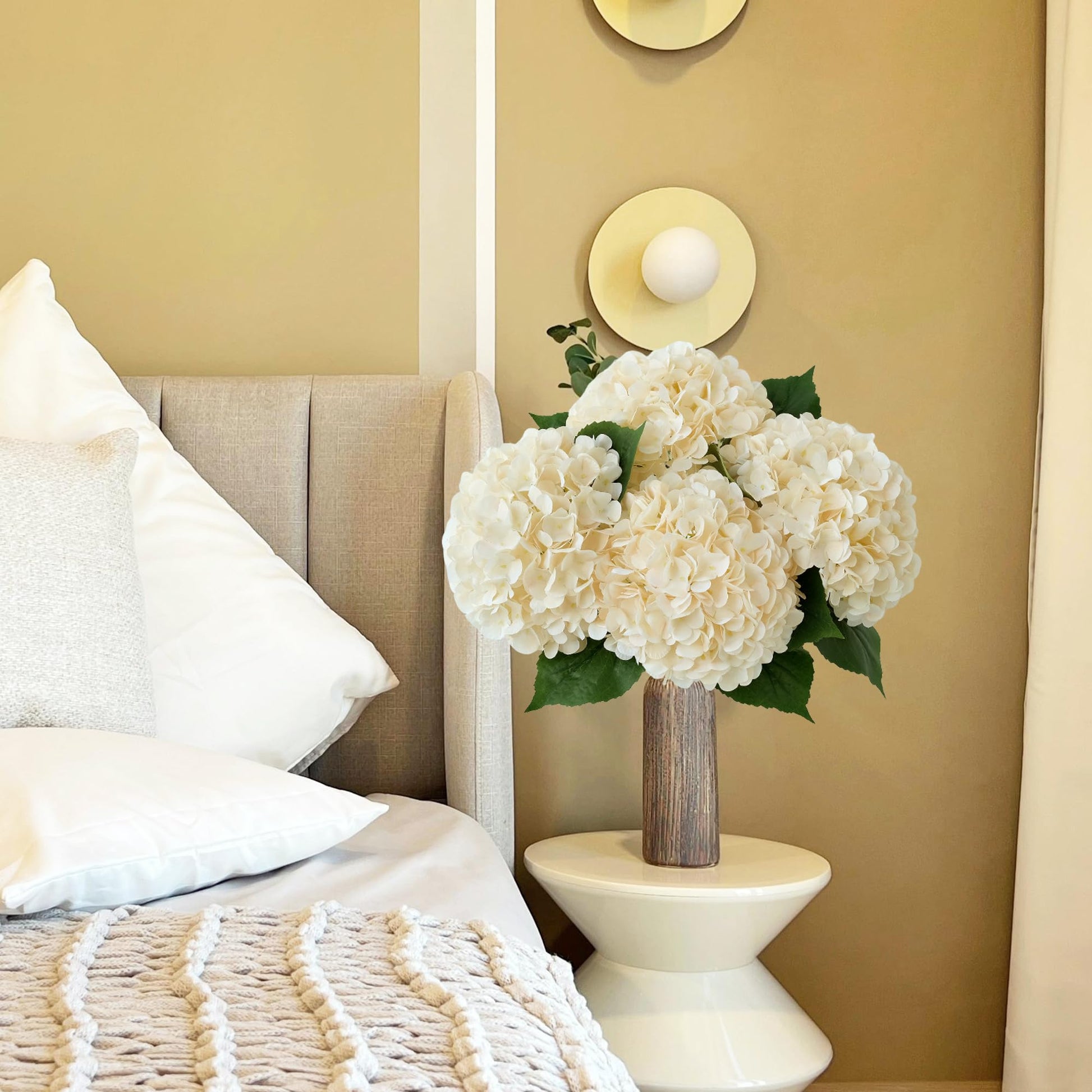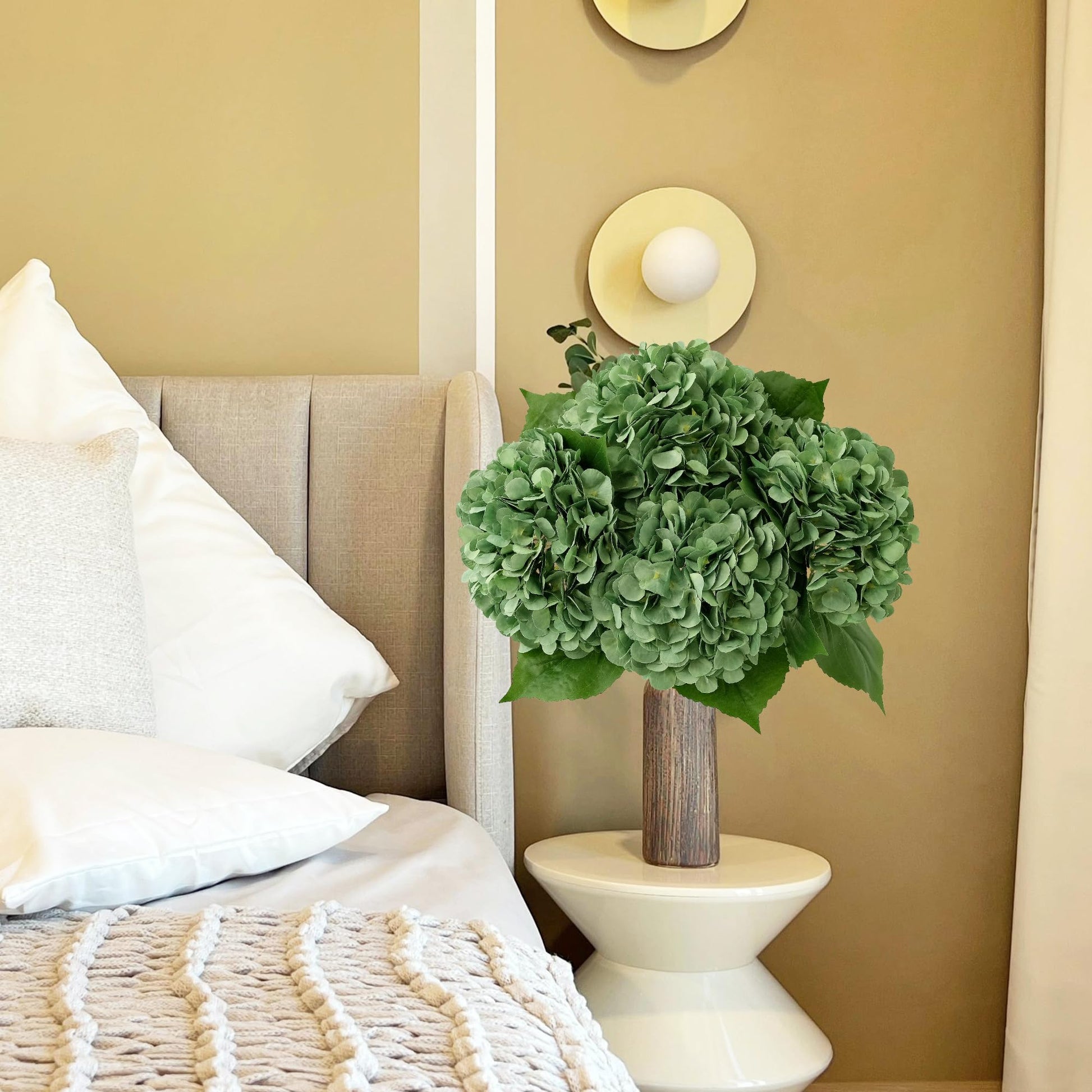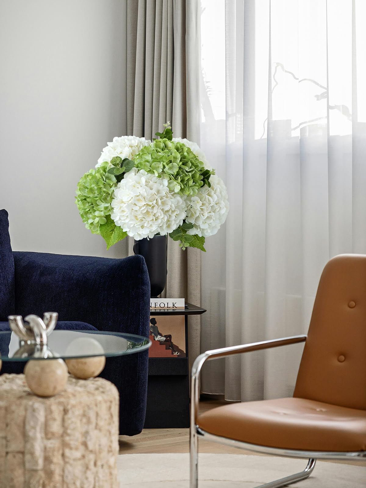 - High Quality Materials : A large, plump hydrangea head with a total of 216 petals , Large hydrangea made of high quality silk and plastic , the long stems are made of plastic with iron wire inside , Each flower has three leaves and plastic stem .