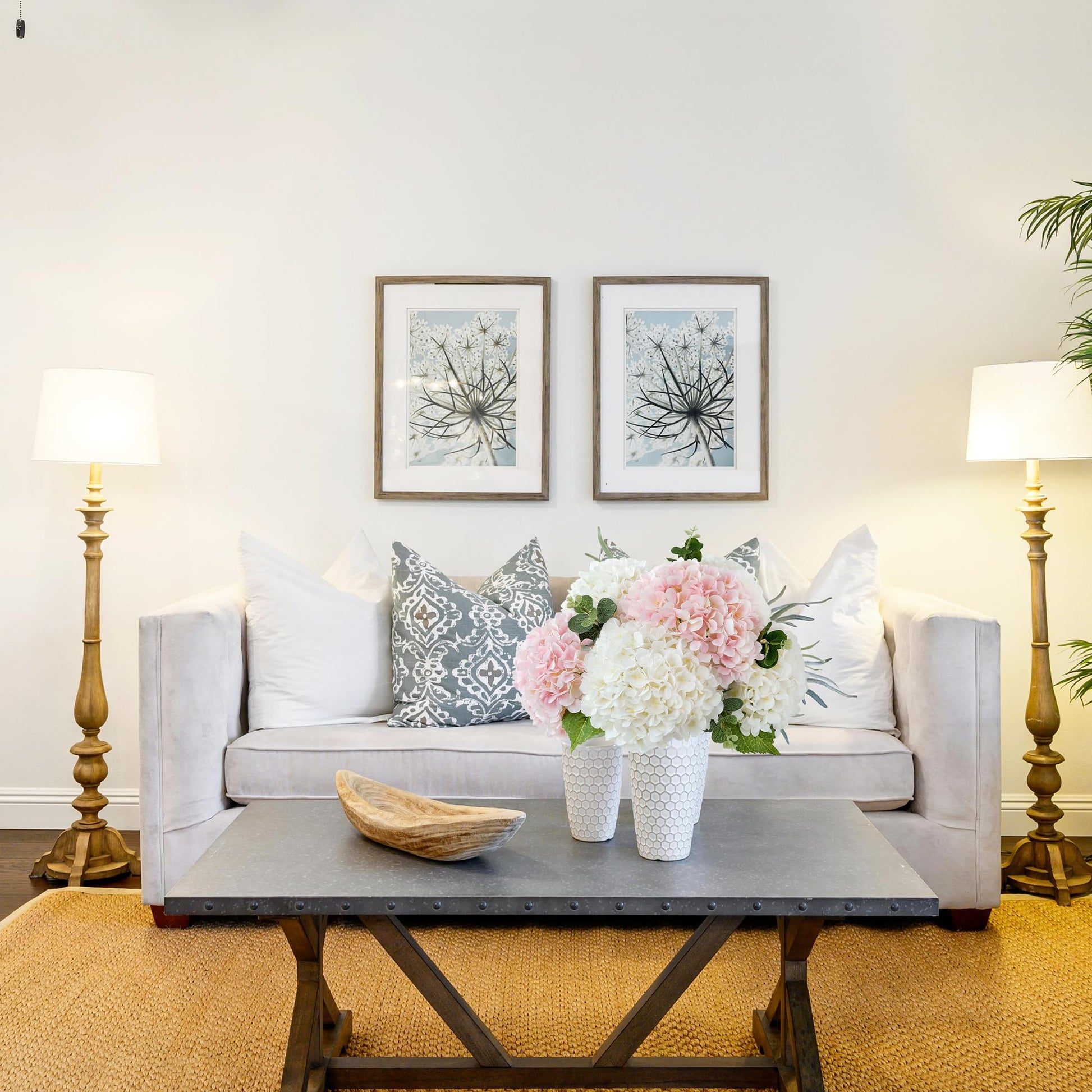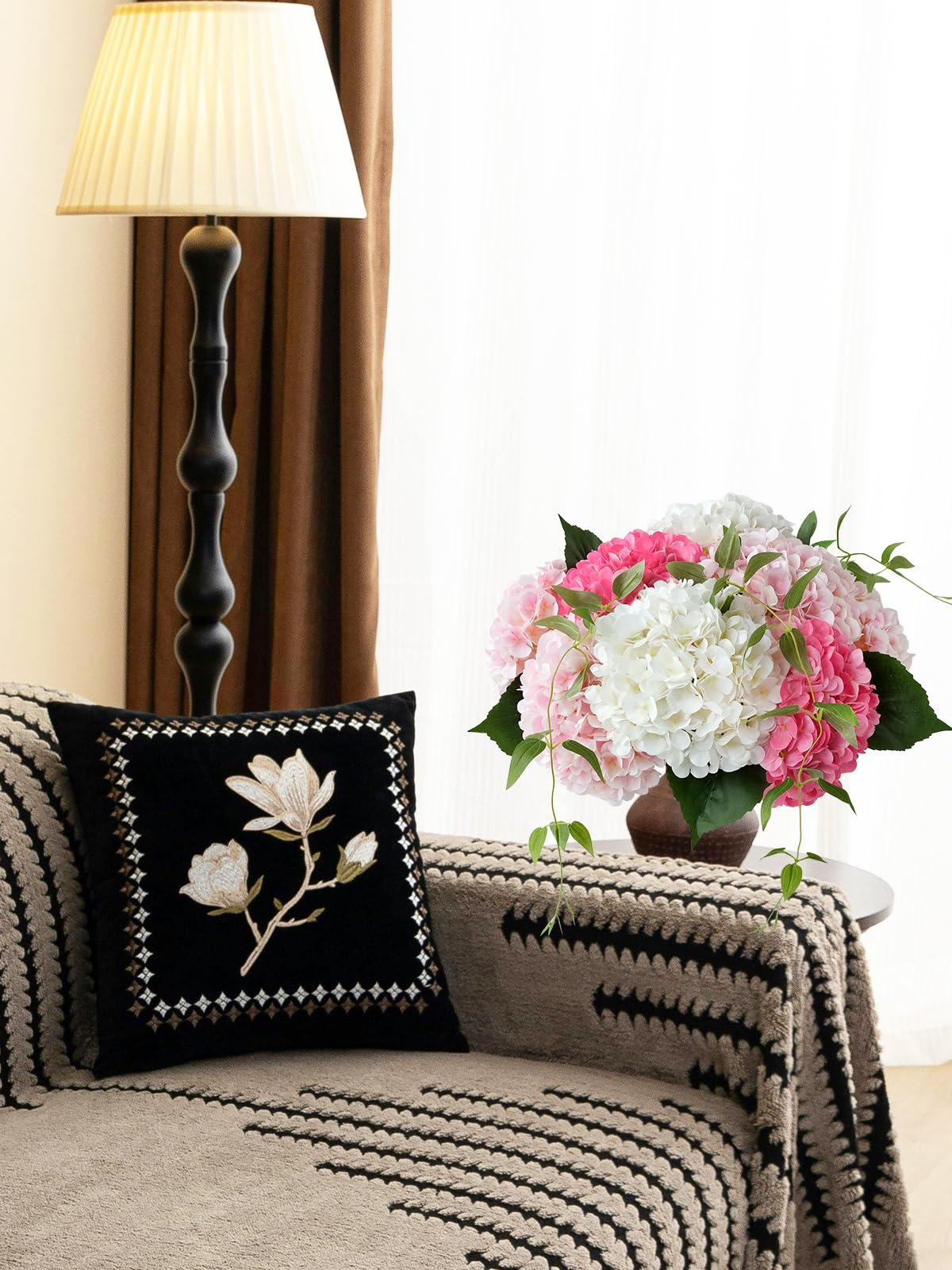 - Features : Our SUMTIPHUN Artificial Hydrangeas flowers as home decor , Unlike natural flowers that wither and fade , faux flowers maintain their vibrant appearance indefinitely , providing a lasting and consistent aesthetic appeal .