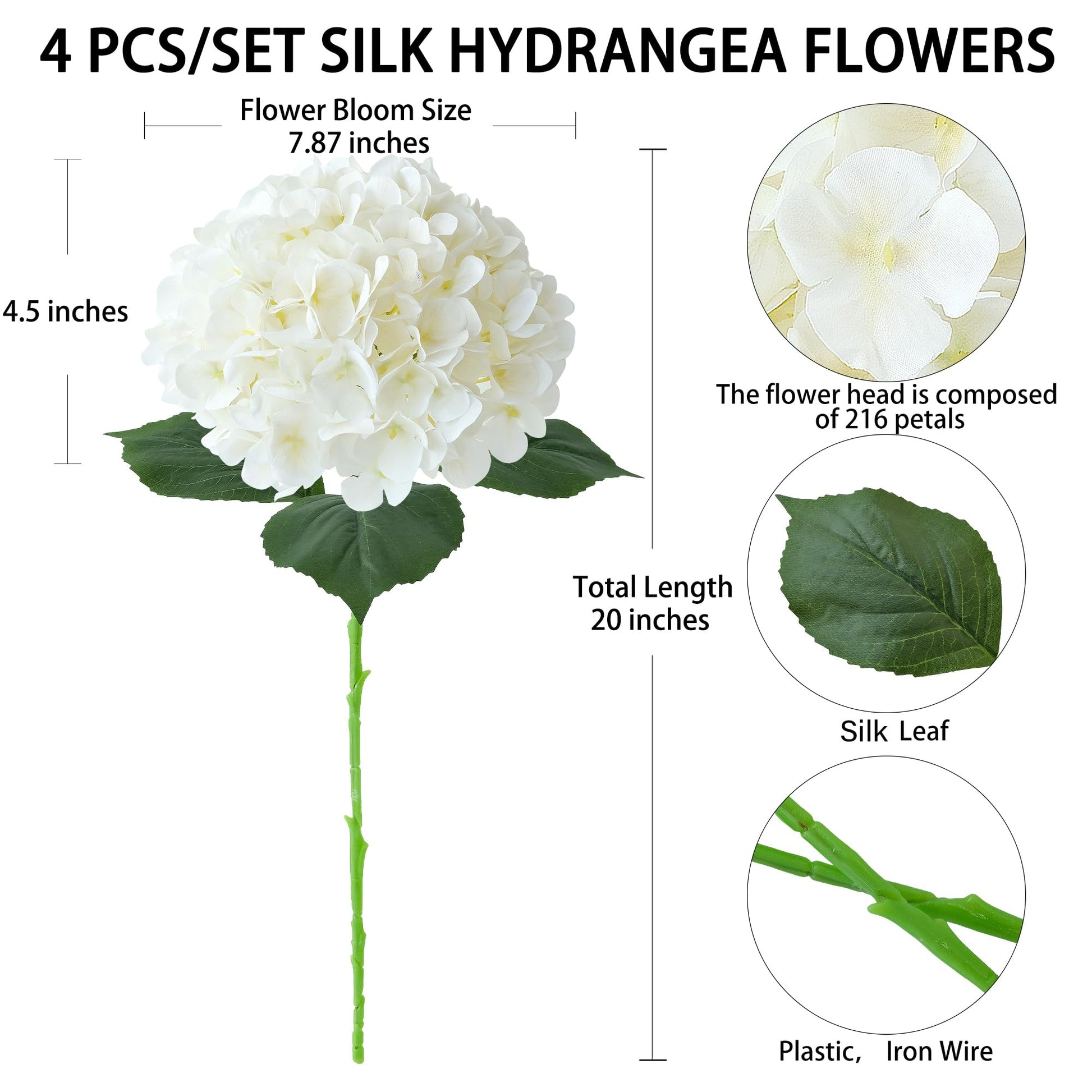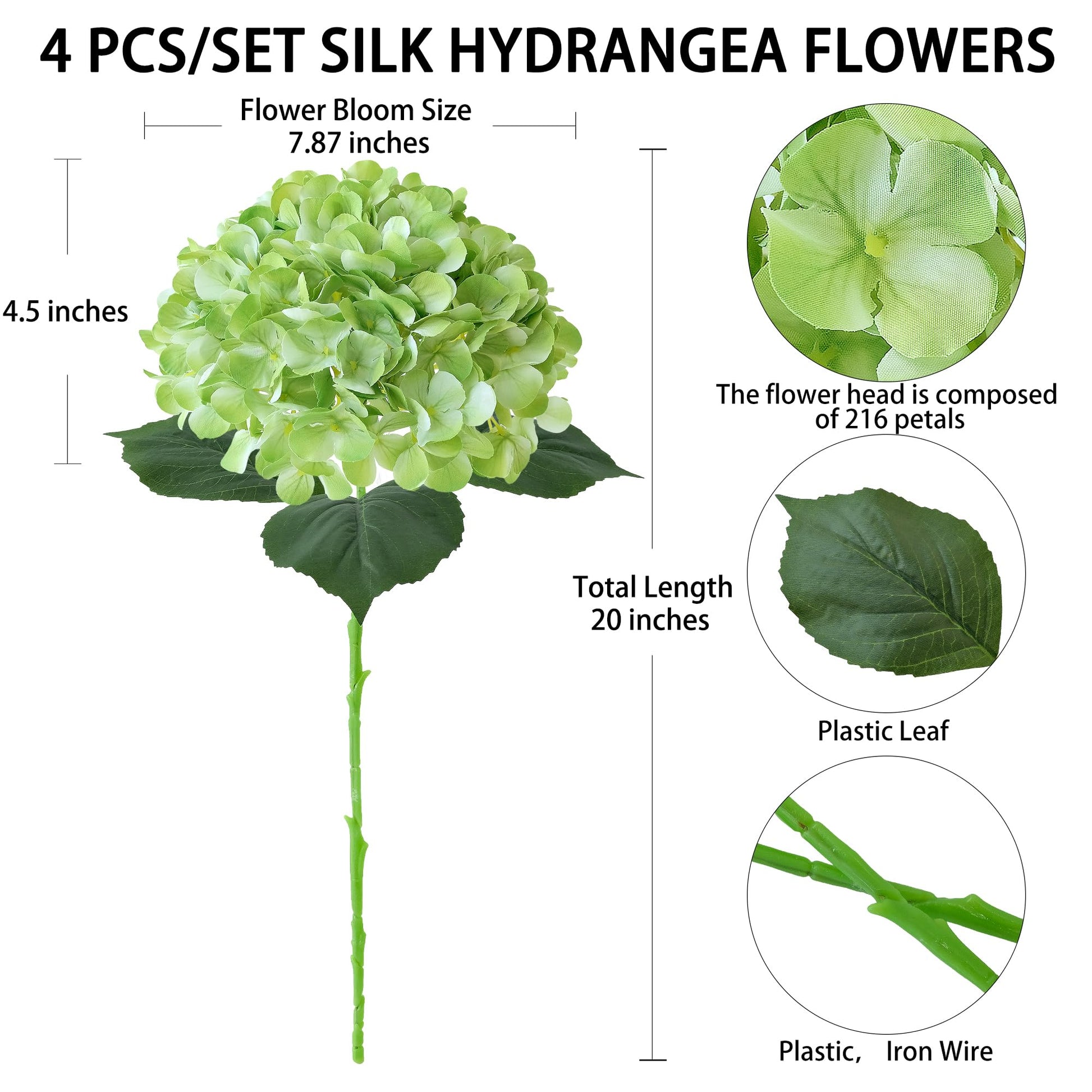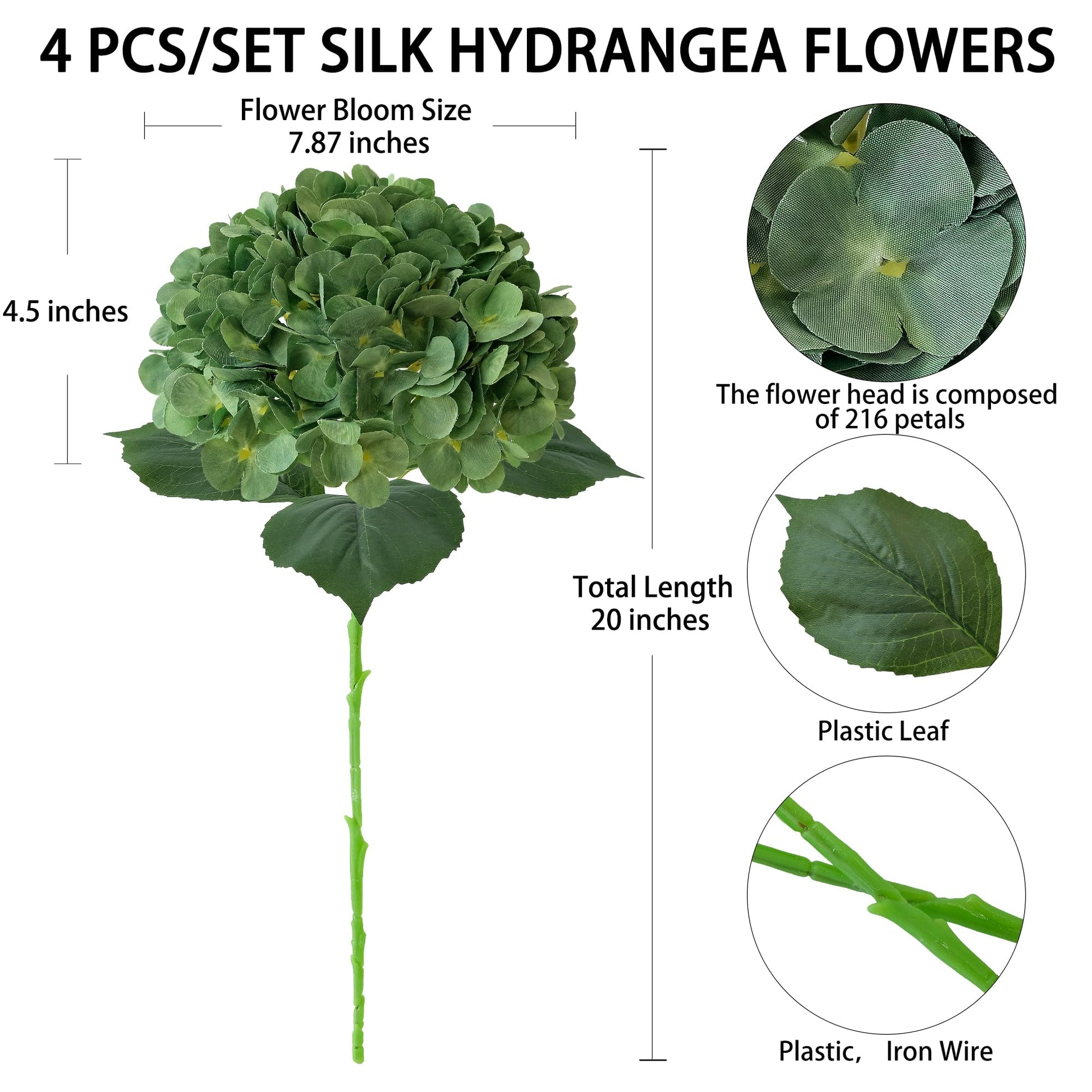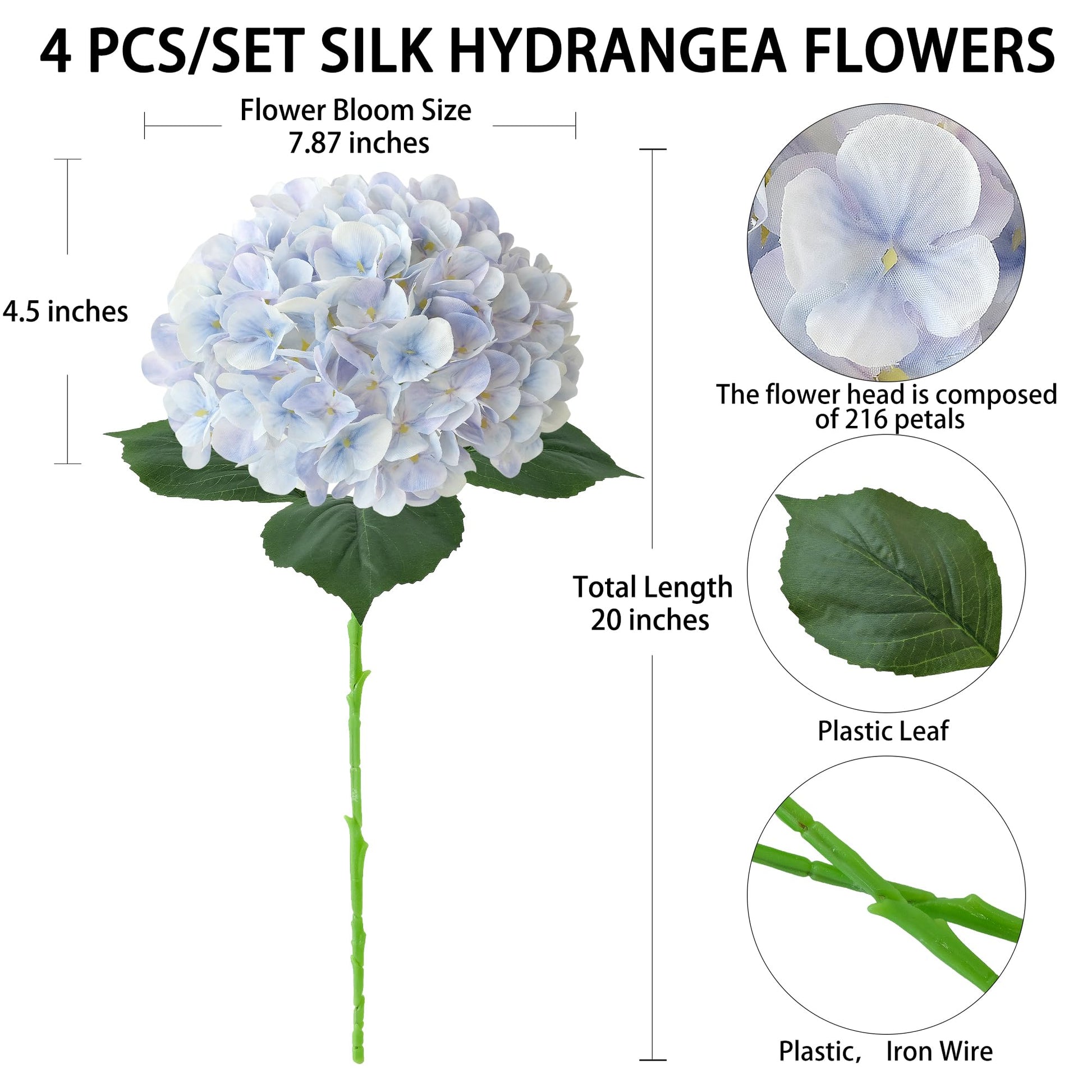 - Dimension & Package : Total length: 20" , the diameter of flower head: 7.87'', the height of flower head: 4.5" ; Package : 4 Pcs Pink Hydrangeas ( Vase not included)