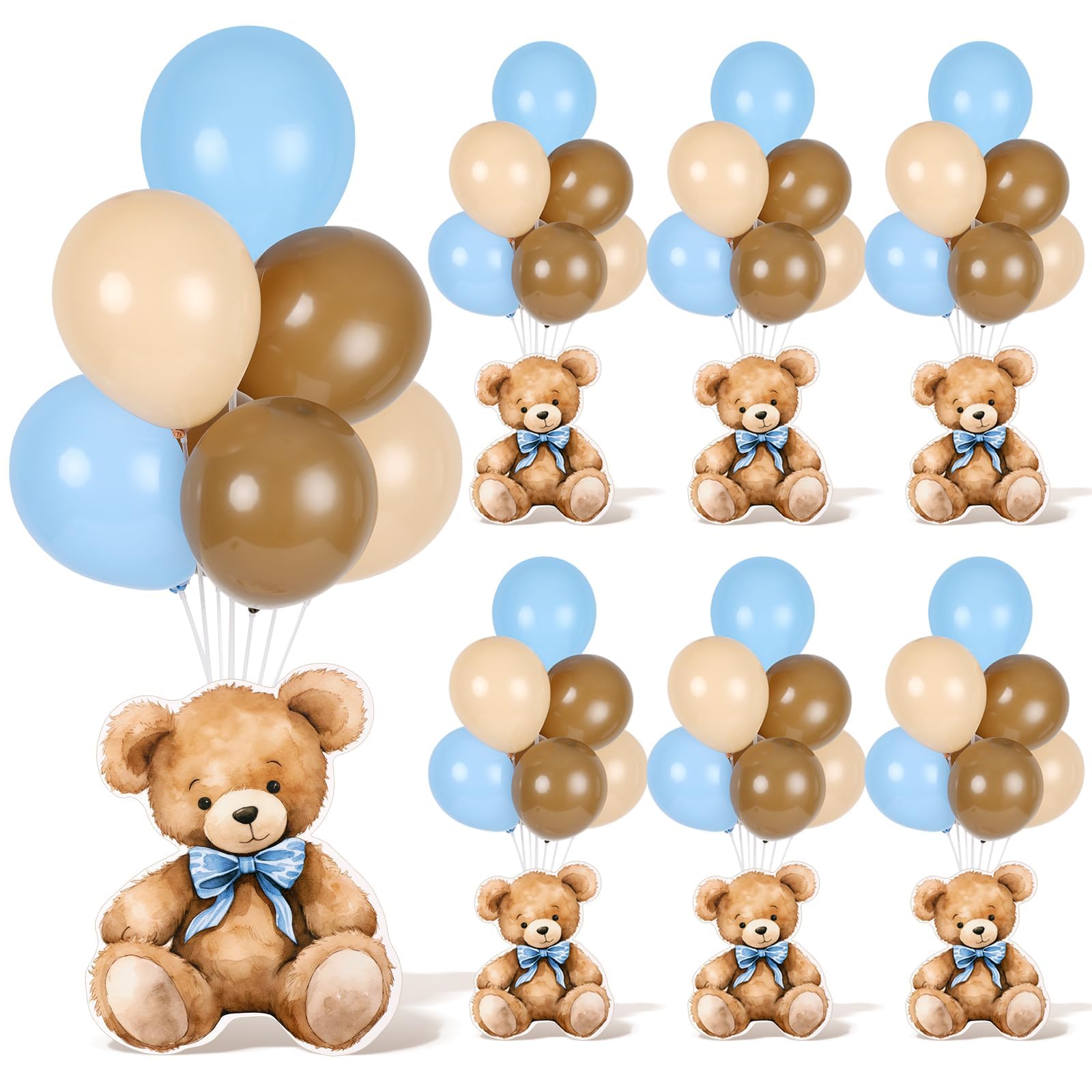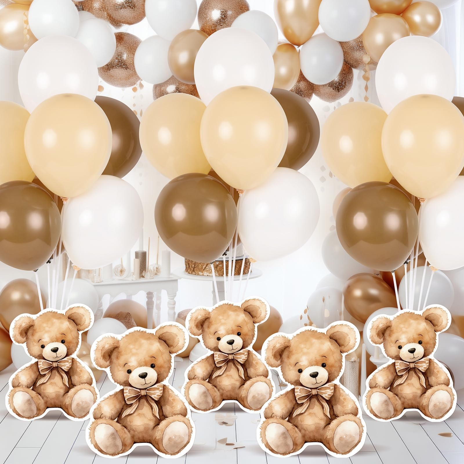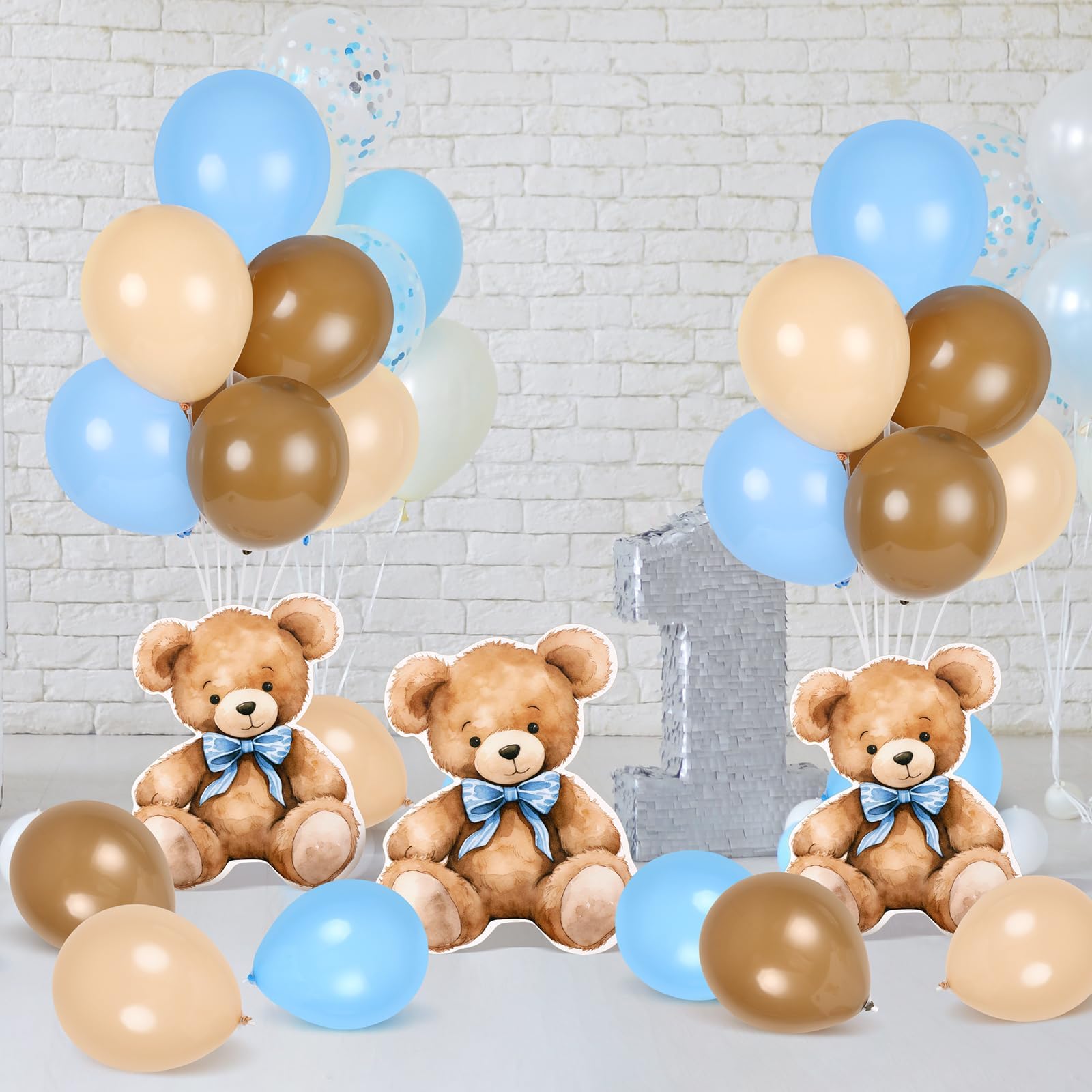 4 Sets Balloon Stand Kit for Table Bear Baby Shower Tables Centerpieces with Balloon Boy Baby Shower Decorations for Bear Theme Gender Reveal Birthday Party Table Decorations Supplies (Brown Bear, 4)