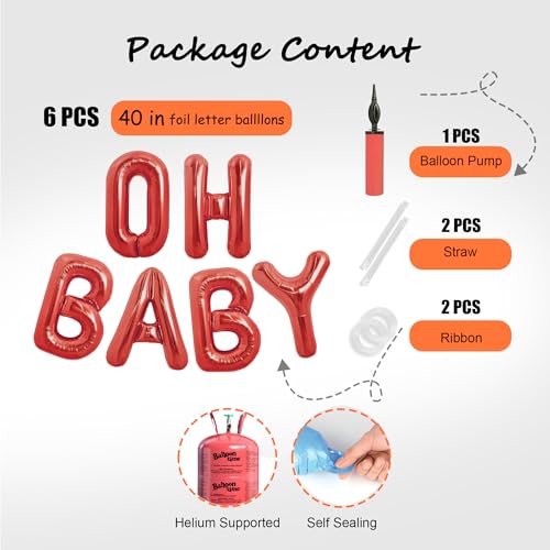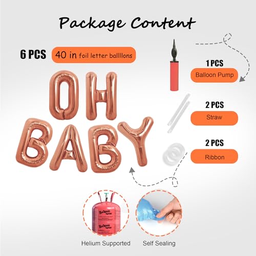 - You will receive: 40 inch gold O+H+B+A+B+Y letter balloons, 2 hanging ribbons, 1 inflation pump, 2 straws, perfect for girls, boys, baby showers, gender revealing party decorations