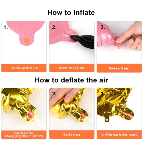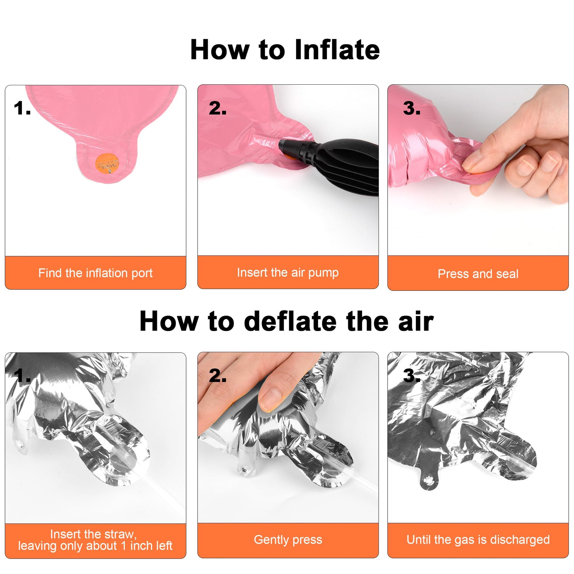 - Easy to inflate: This product is equipped with an air pump, which makes inflation easier than a straw. It can be inflated with air or helium gas. After filling, press the valve of the balloon to seal it