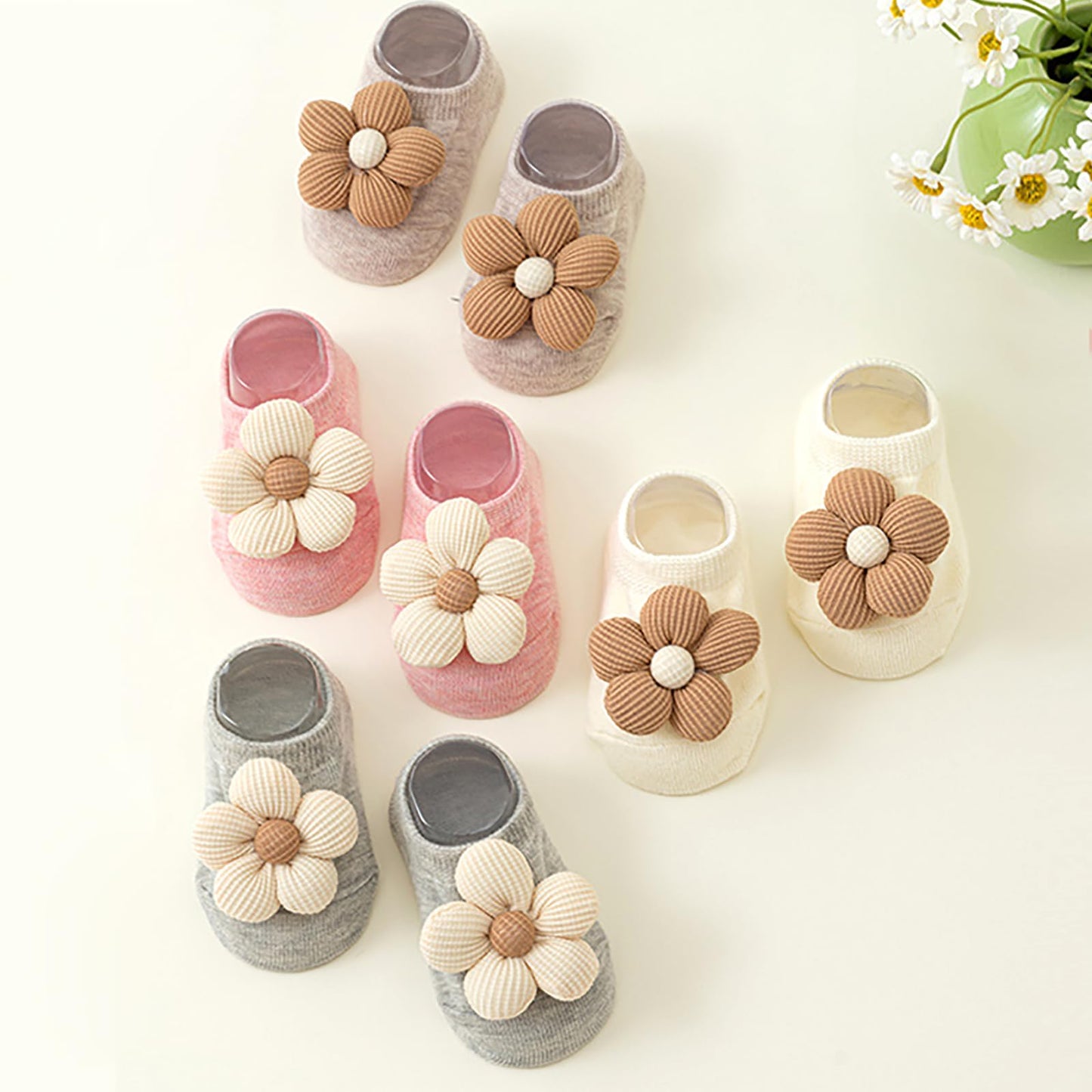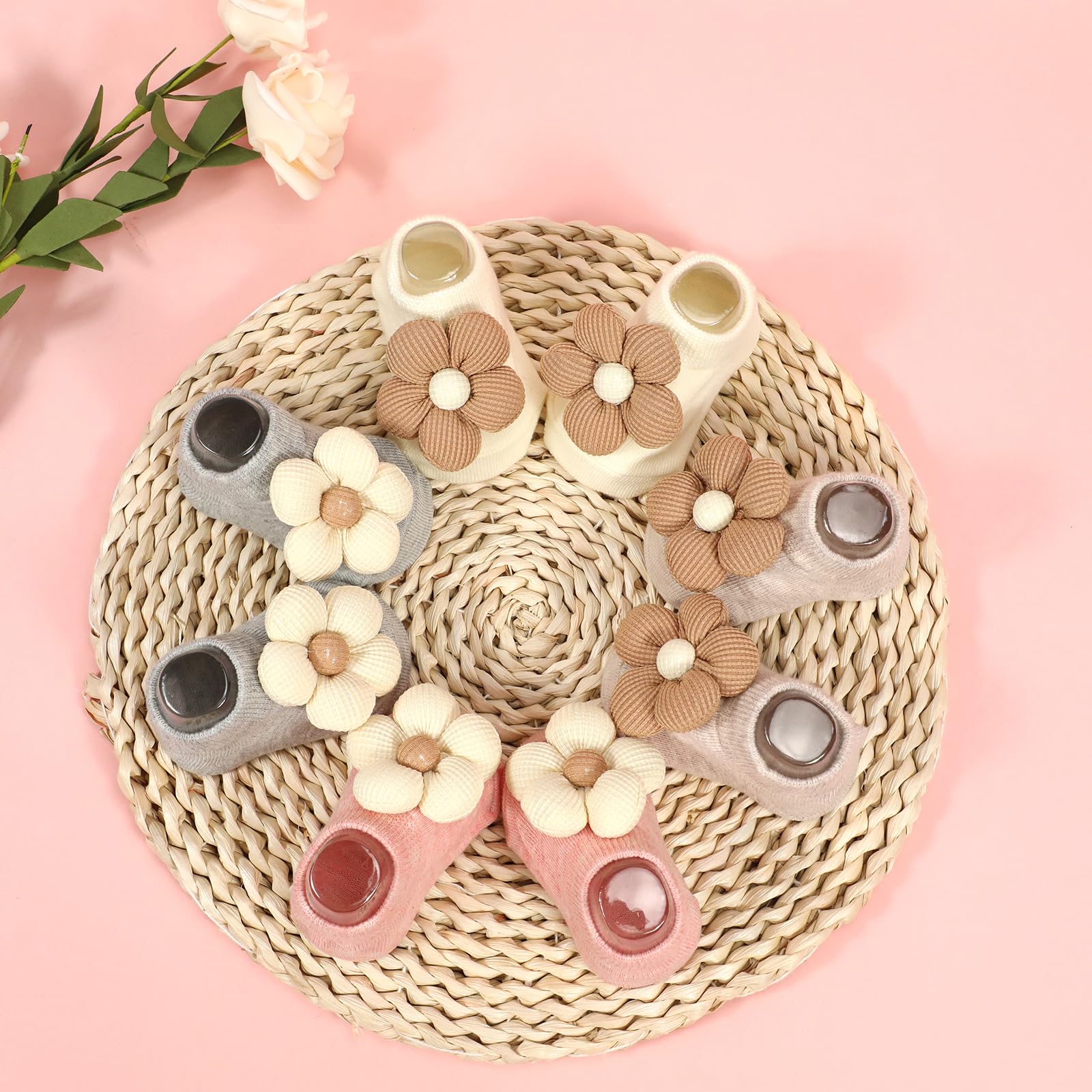 4Packs Baby Girls Socks,Flower Non-Slip Grips for Babies Toddler Princess Low Cut Ankle Socks for Girls