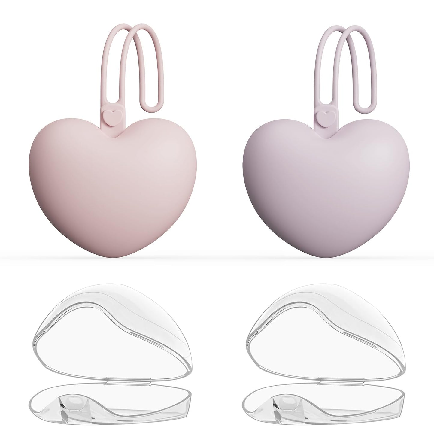 4pcs Pacifier Holder Case Set, 2pcs Silicone Portable Pacifier Pouch and 2pcs Transparent Pacifier Storage Container, Cute Heart Shape Pacifier Storage Case for Newborn Baby(Pink+Purple)