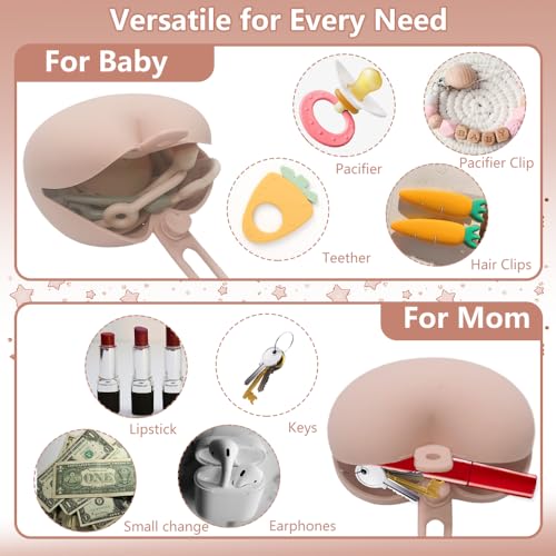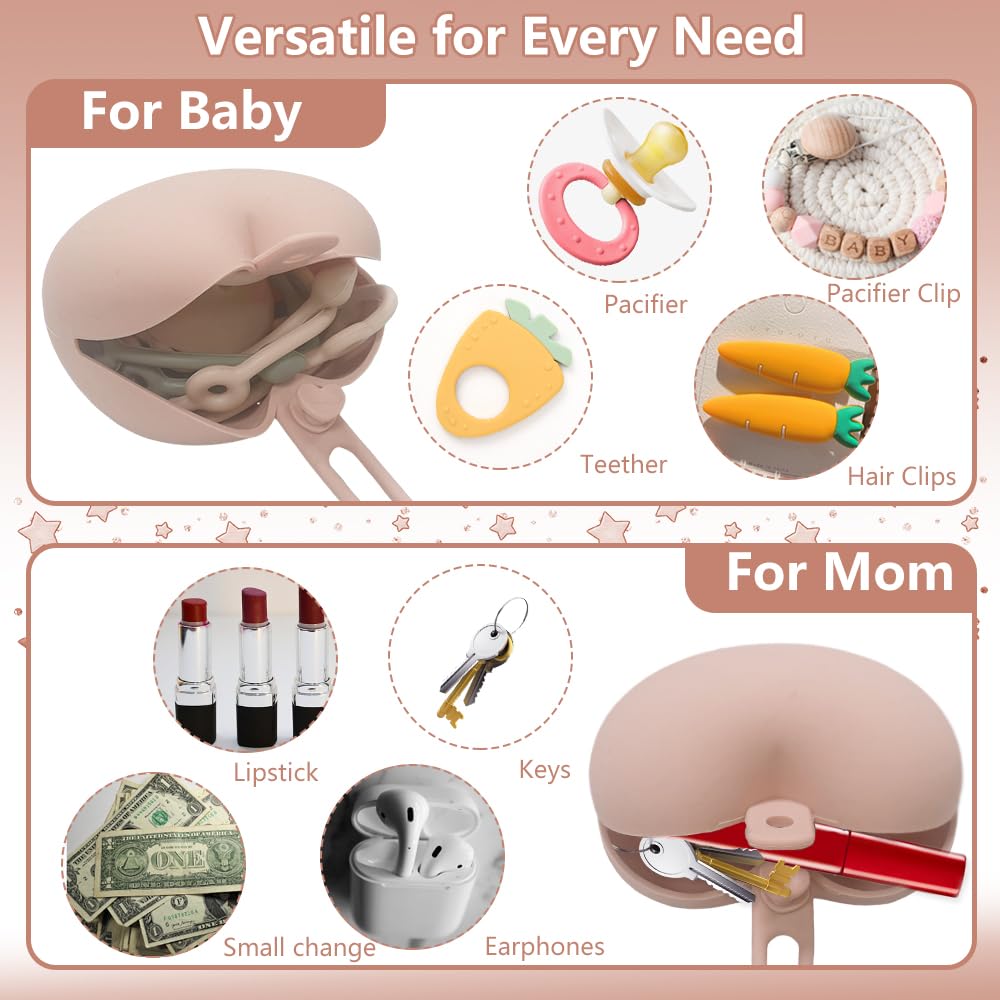 - 【Large Opening with Button Clasp】:The pouch features a large upper opening for quick access to pacifiers. The cute heart-shape button clasp ensures the holder stays securely closed, even when not snapped shut. Unlike stainless steel zipper holders, our all-silicone design material is gentle on baby's skin with no risk of harm to the baby,but also offers long-lasting durability.