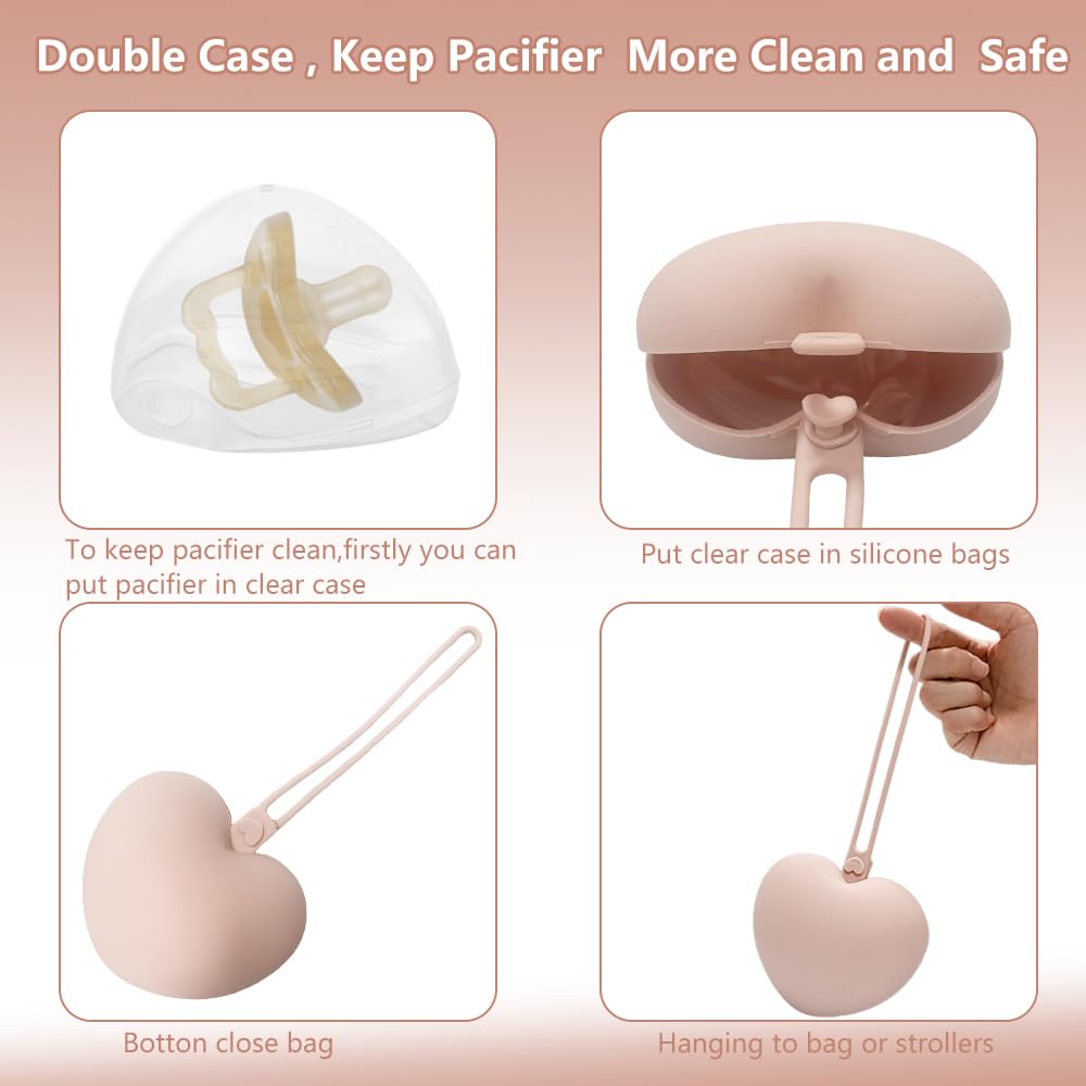 - 【Double Case Set,Widely Application】:The transparent pacifier case holder boxes create a clean and dry environment for your baby's pacifier, shielding it from dust, dirt, debris, and germs. The silicone holder case can store up to 2 pacifiers or 3 pacifier clips, teether toys or even small essentials like earbuds, lip balm, and keys.