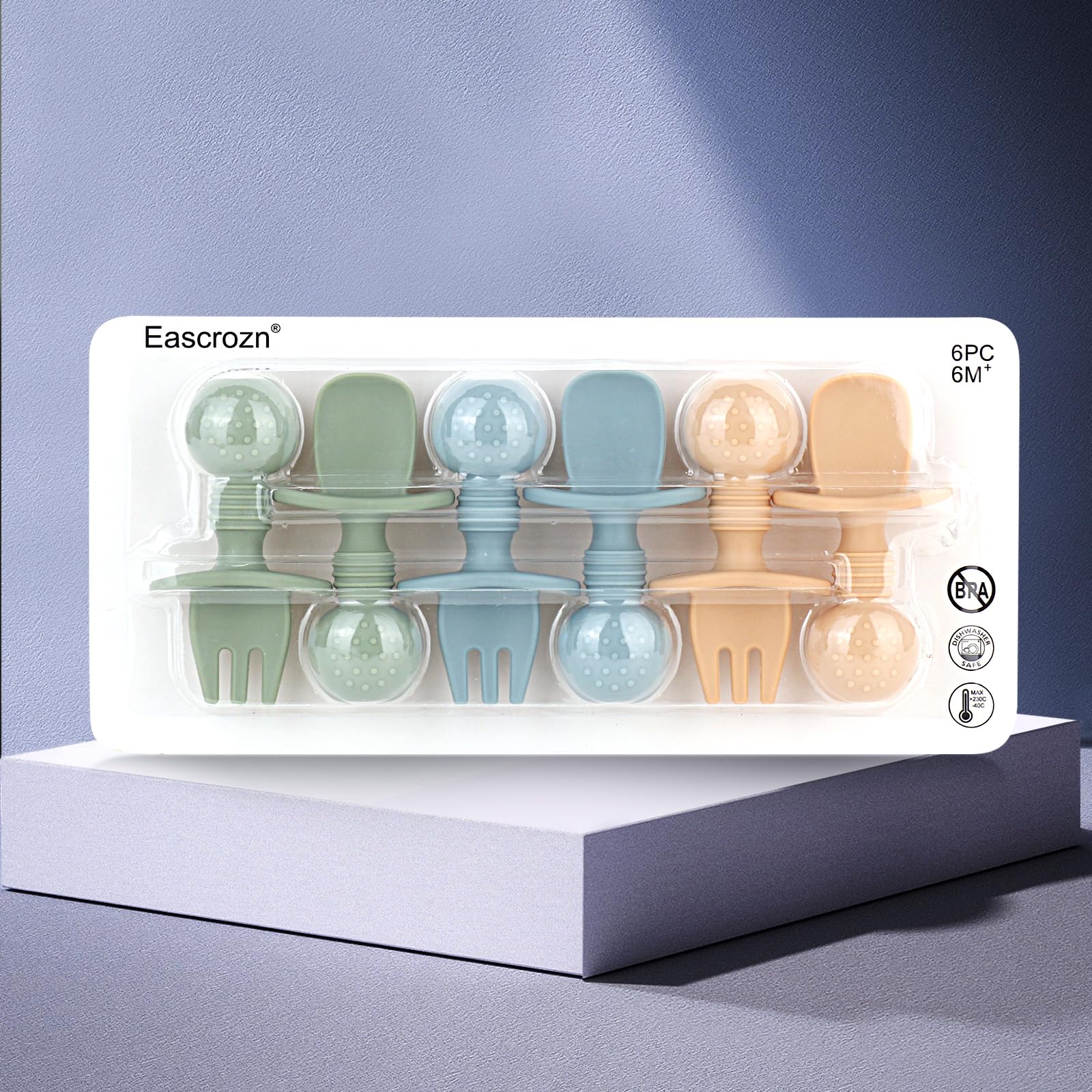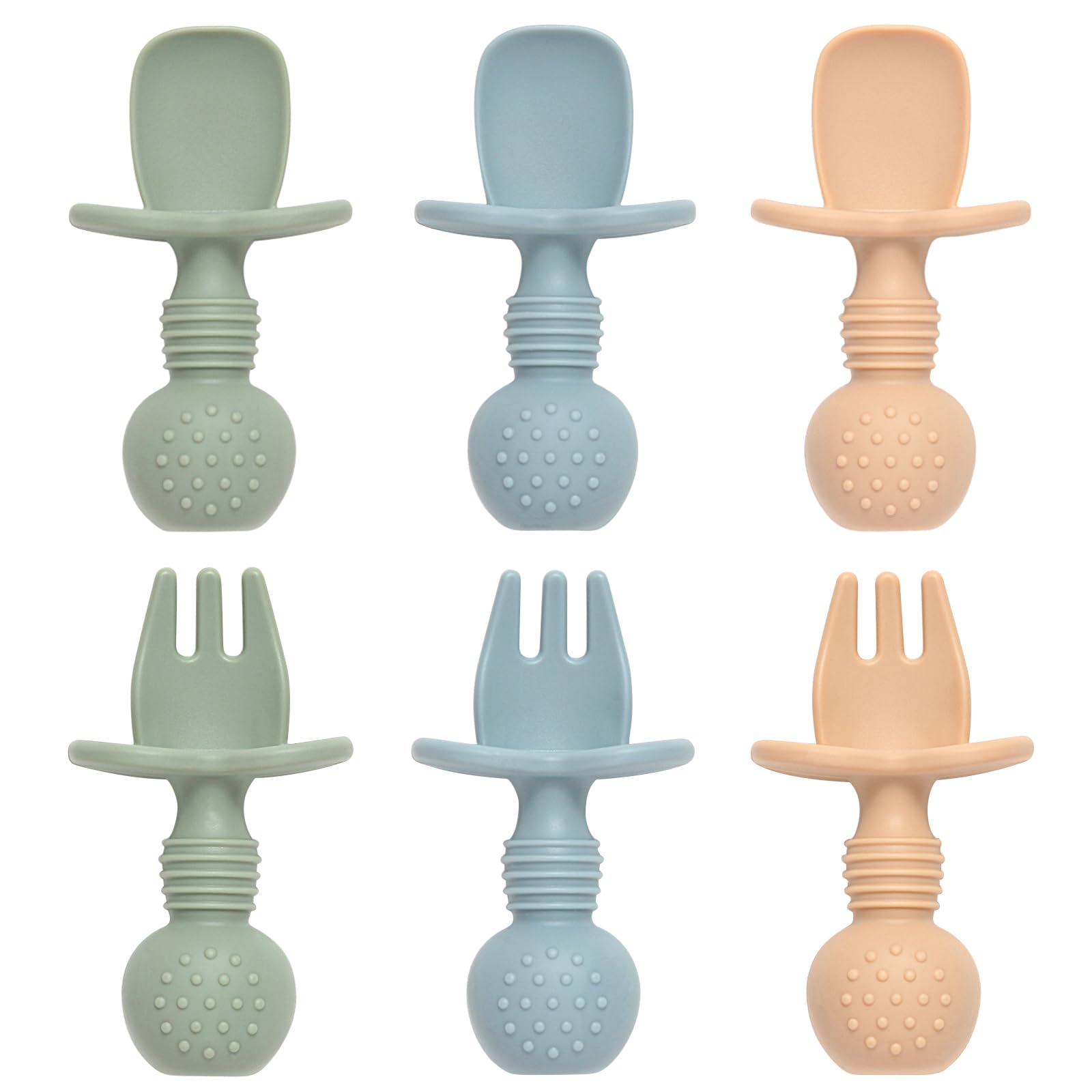 - Silicone Baby Feeding Set: Each set of baby utensils includes 3 spoons and 3 forks, these spoon and fork set will make it easy for your baby to master the utensils as he or she transitions to solid foods and self-feeding. Ideal for first-time and toddler babies.