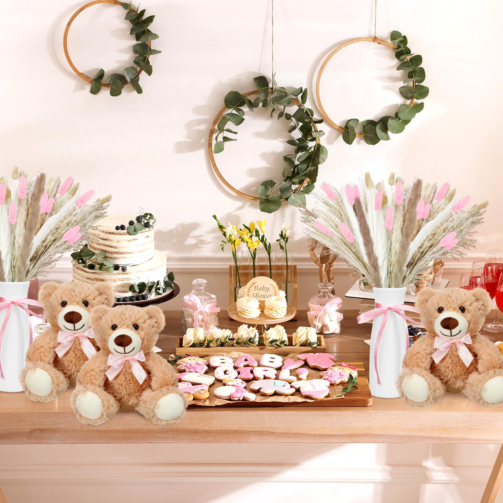 6 Sets 123 Pcs Baby Shower Table Centerpieces Dried Pampas Decor Bear Stuffed Ceramic Look Plastic Vase with Bow for Boho Wedding Bridal Shower Flowers Table Decorations(Brown,Neutral)